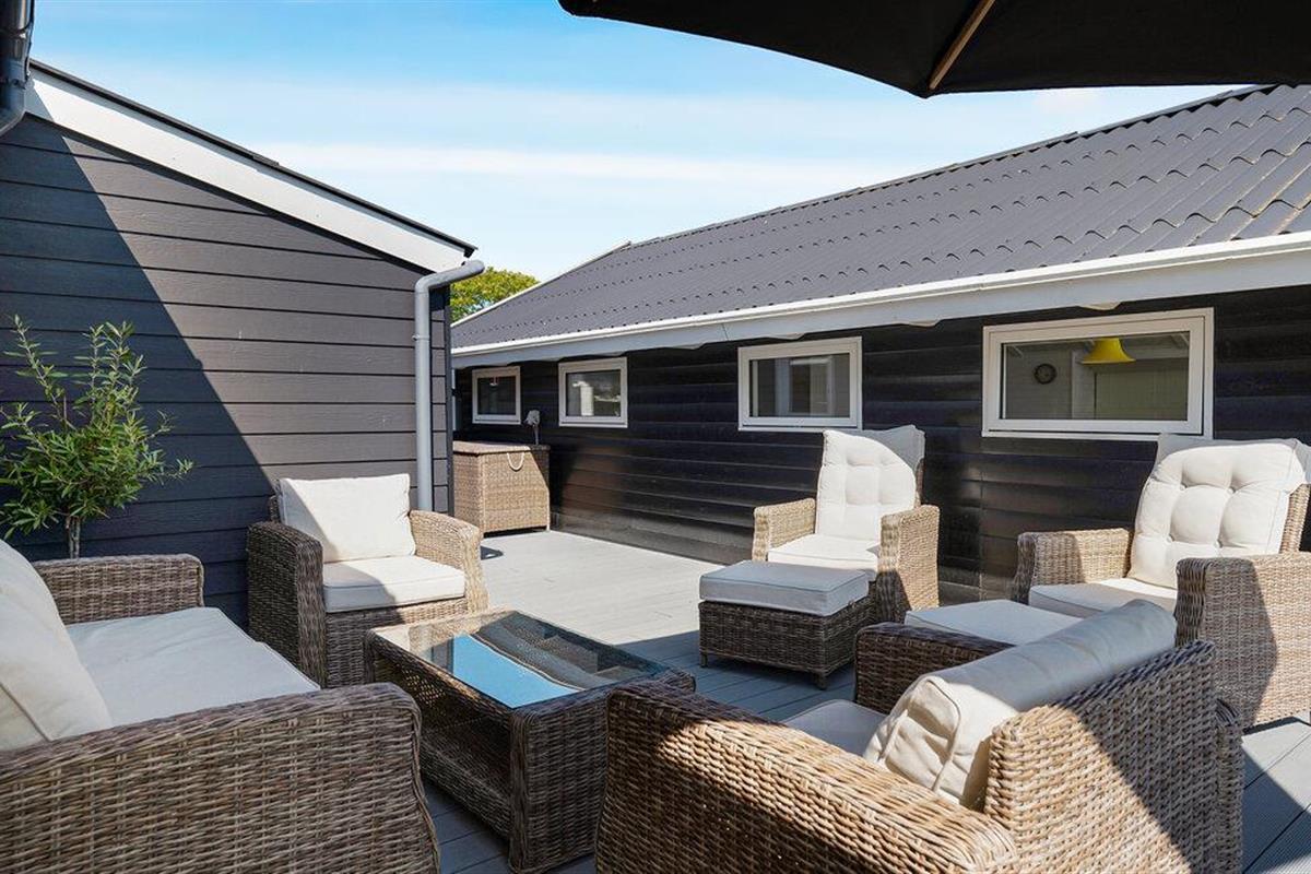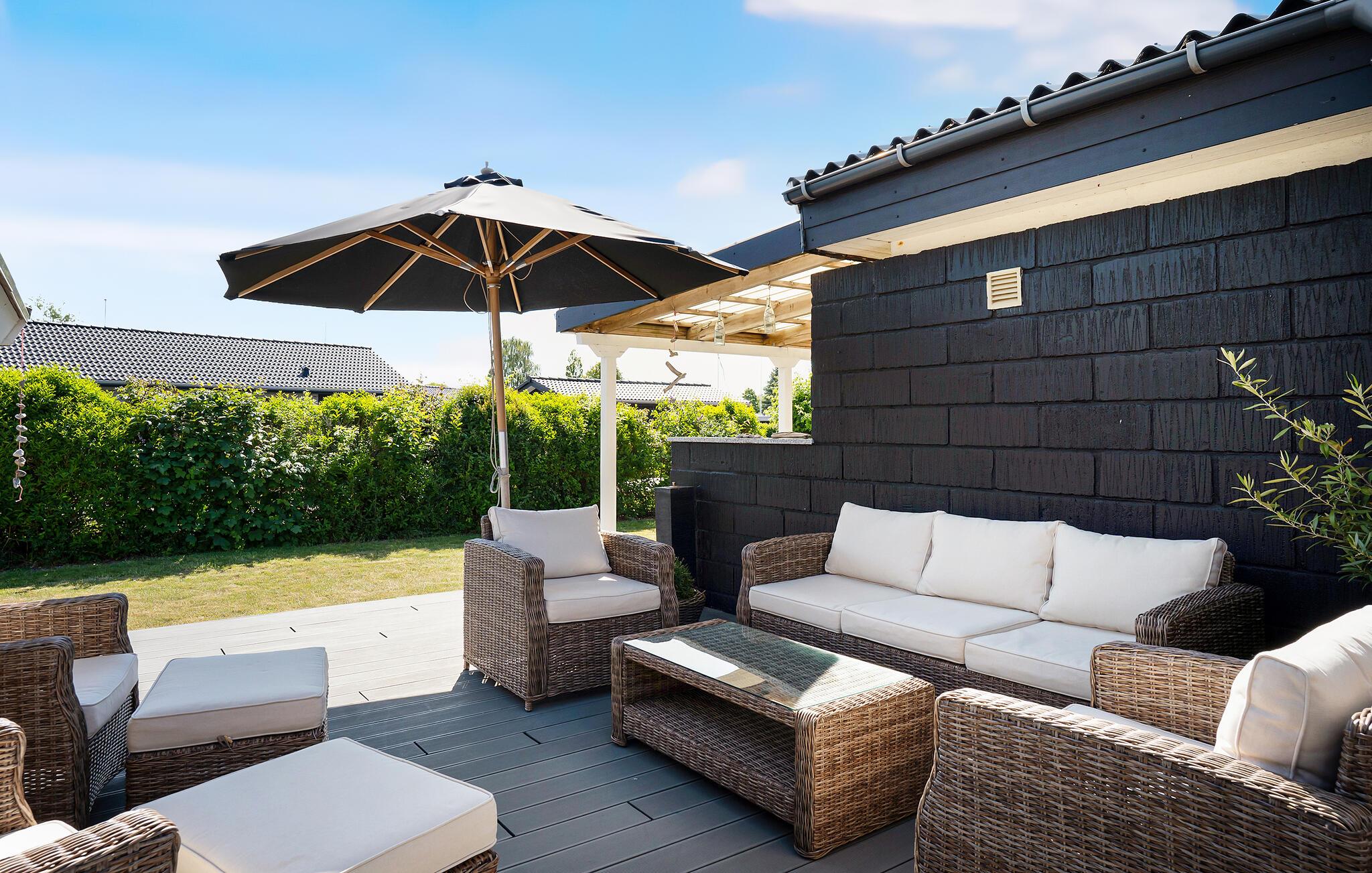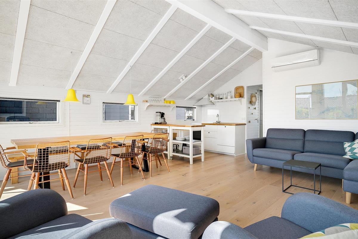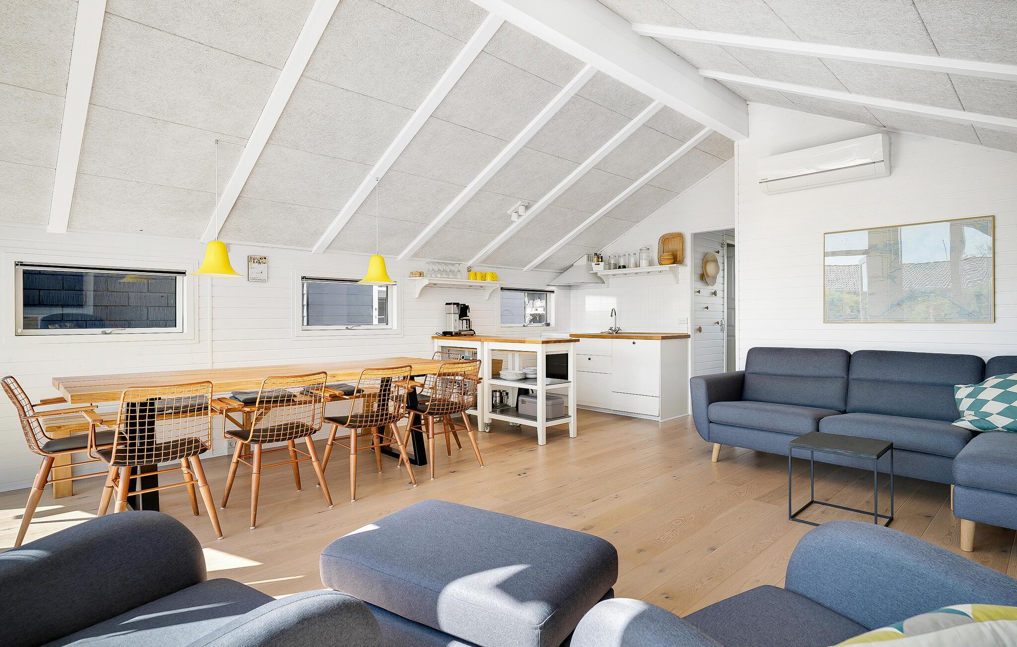 Stap binnen in je vakantiehuis, dat uit twee gebouwen bestaat, en voel meteen de zorgeloze en ontspannen sfeer op slechts een paar stappen van het strand. De open keuken nodigt je uit om samen te koken en te genieten van stimulerende gesprekken bij een kopje koffie. Gebruik de comfortabele stoelen in de woonkamer om te ontspannen en een goede familiefilm te kijken of verdiep je in een spannend boek. Ook buiten zijn er volop mogelijkheden voor ontspanning en vrijetijdsbesteding. Het ruime terras is de ideale plek om te genieten van de frisse lucht, overdekt, onder de parasol of gewoon in de buitenlucht. Speel voetbal op het grasveld met je kinderen en maak uitstapjes naar het strand.