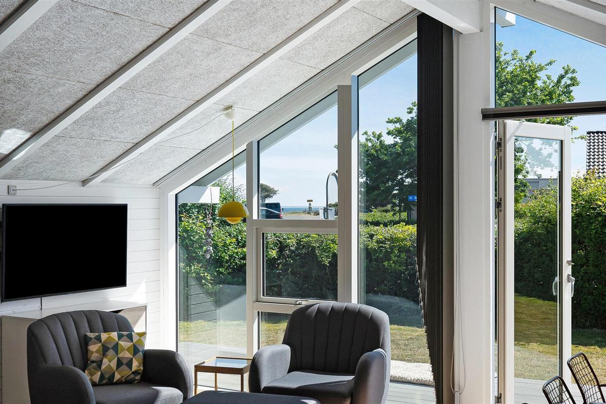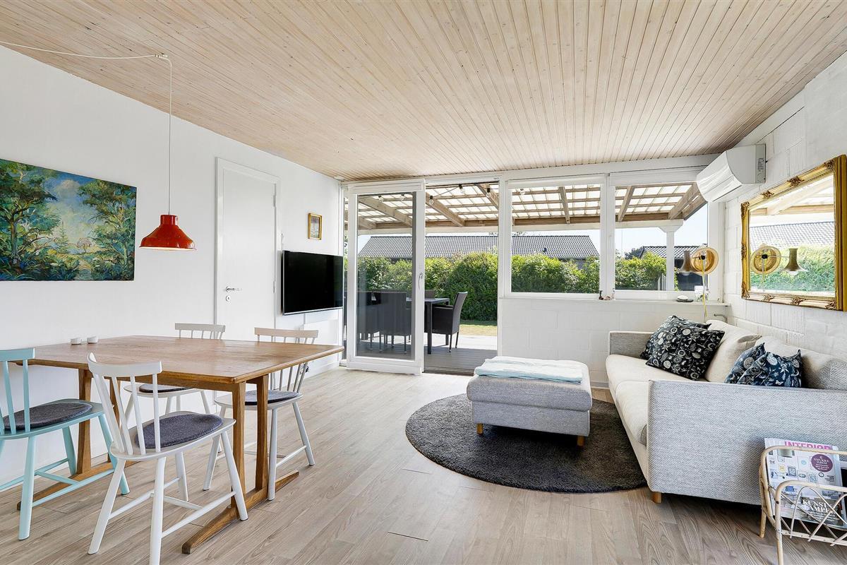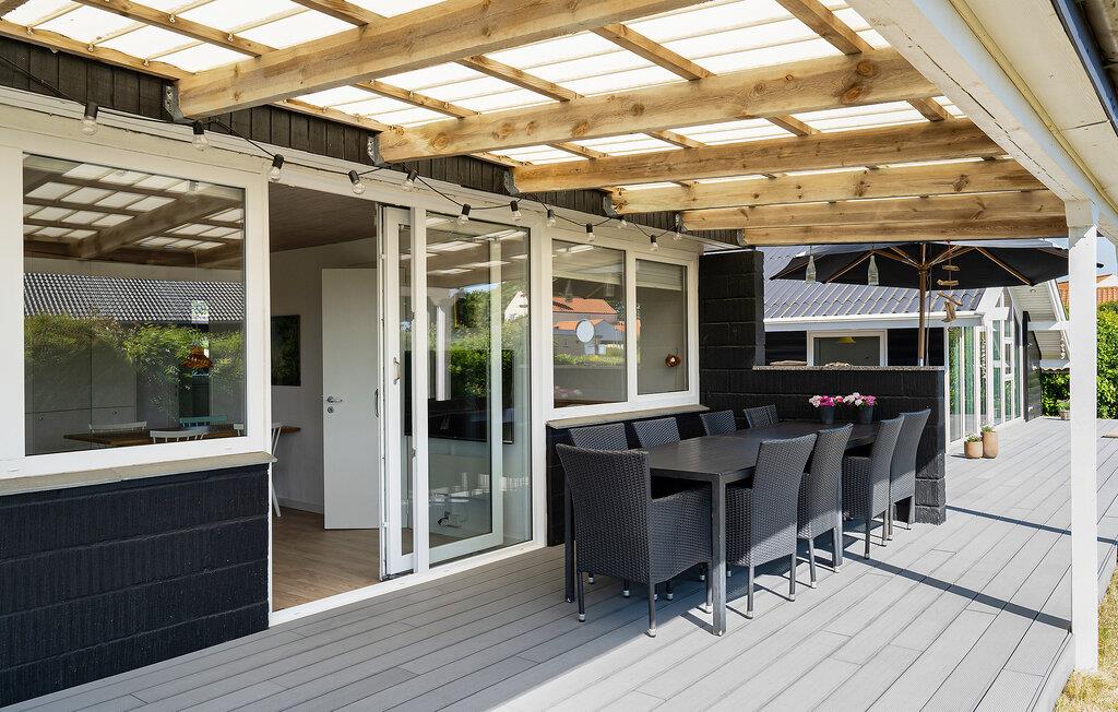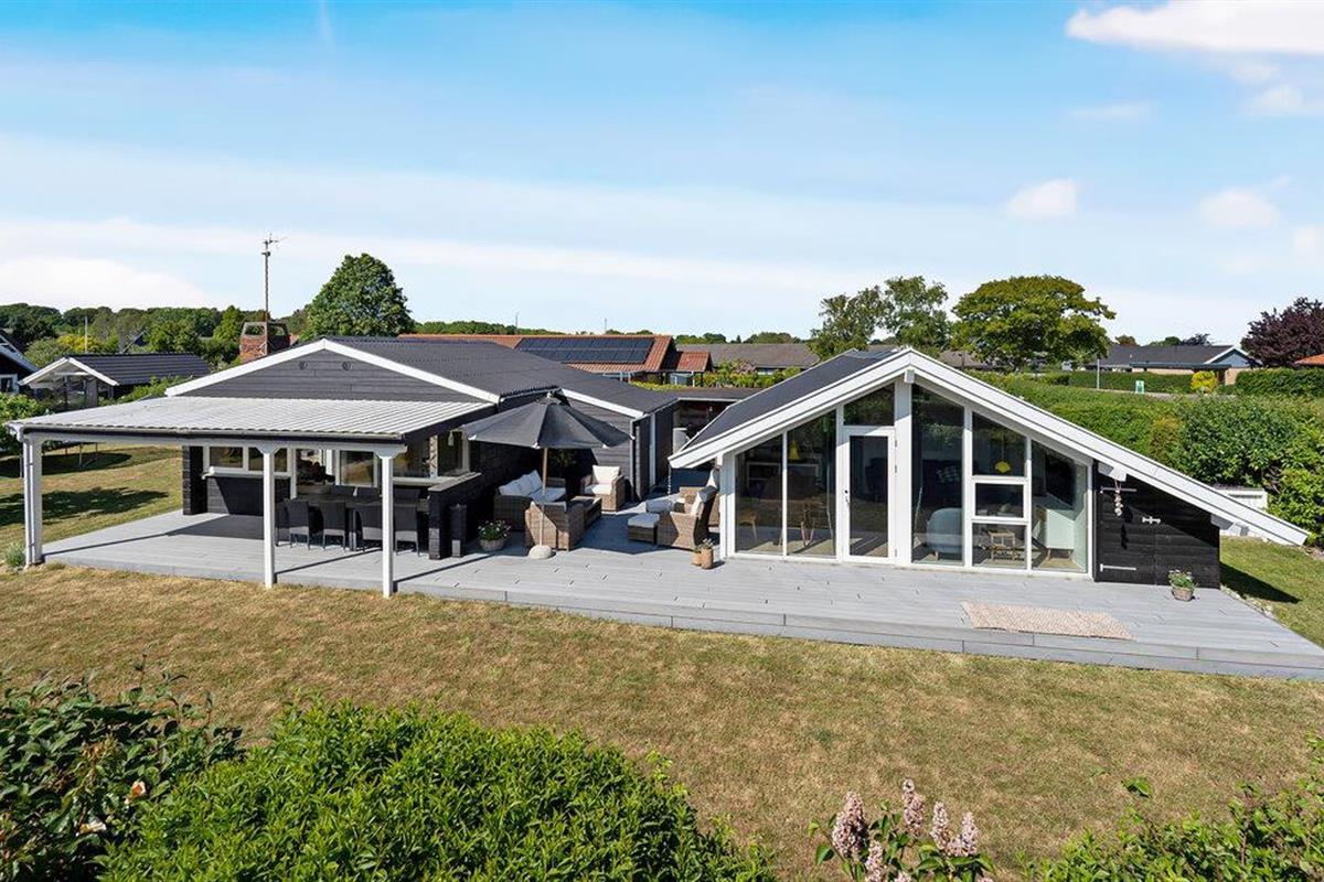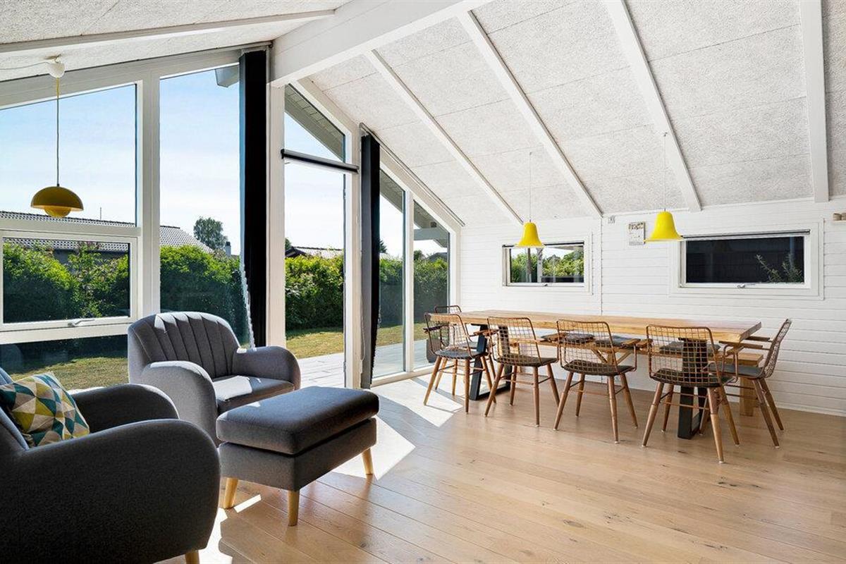 Stap binnen in je vakantiehuis, dat uit twee gebouwen bestaat, en voel meteen de zorgeloze en ontspannen sfeer op slechts een paar stappen van het strand. De open keuken nodigt je uit om samen te koken en te genieten van stimulerende gesprekken bij een kopje koffie. Gebruik de comfortabele stoelen in de woonkamer om te ontspannen en een goede familiefilm te kijken of verdiep je in een spannend boek. Ook buiten zijn er volop mogelijkheden voor ontspanning en vrijetijdsbesteding. Het ruime terras is de ideale plek om te genieten van de frisse lucht, overdekt, onder de parasol of gewoon in de buitenlucht. Speel voetbal op het grasveld met je kinderen en maak uitstapjes naar het strand.