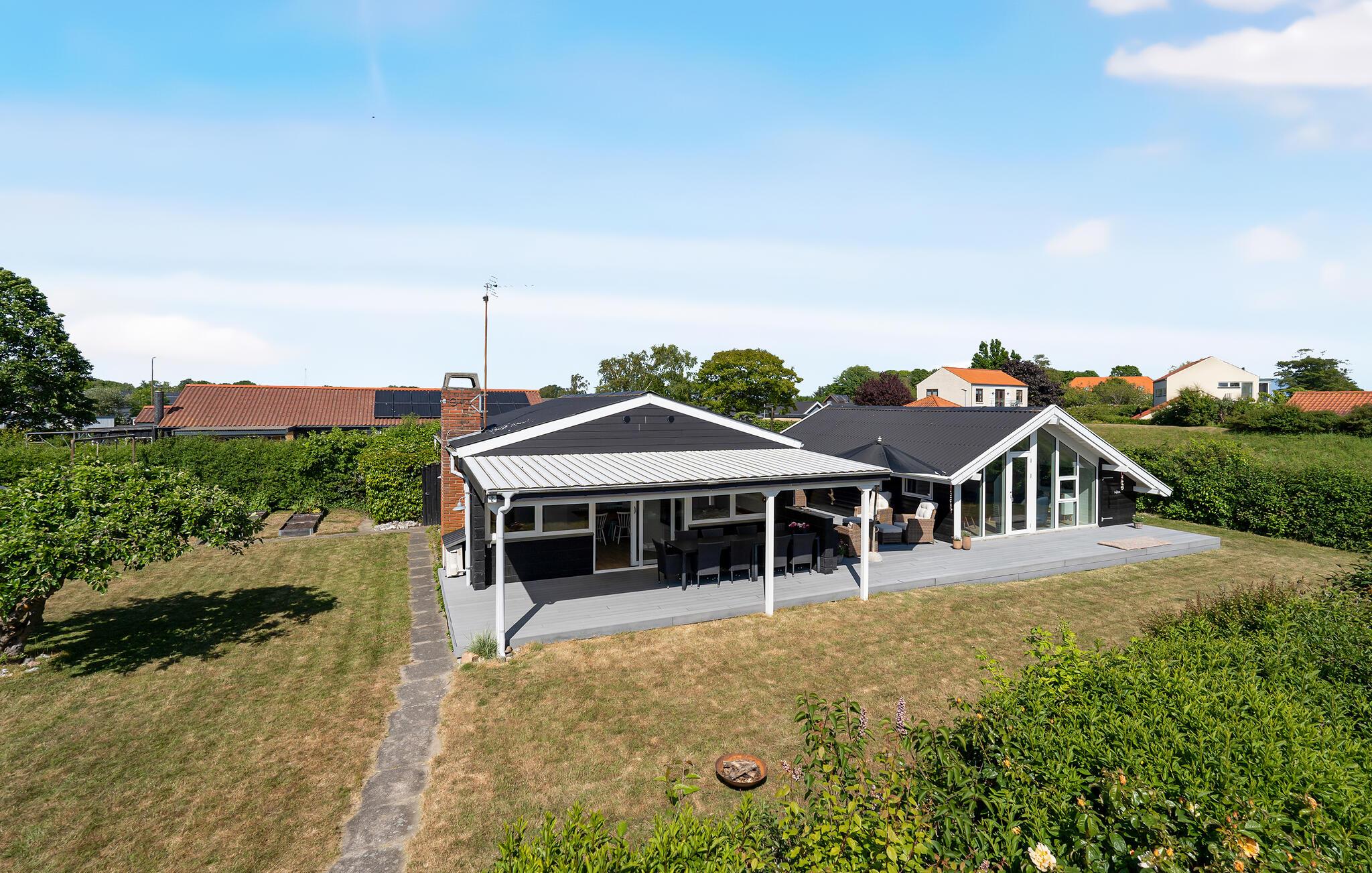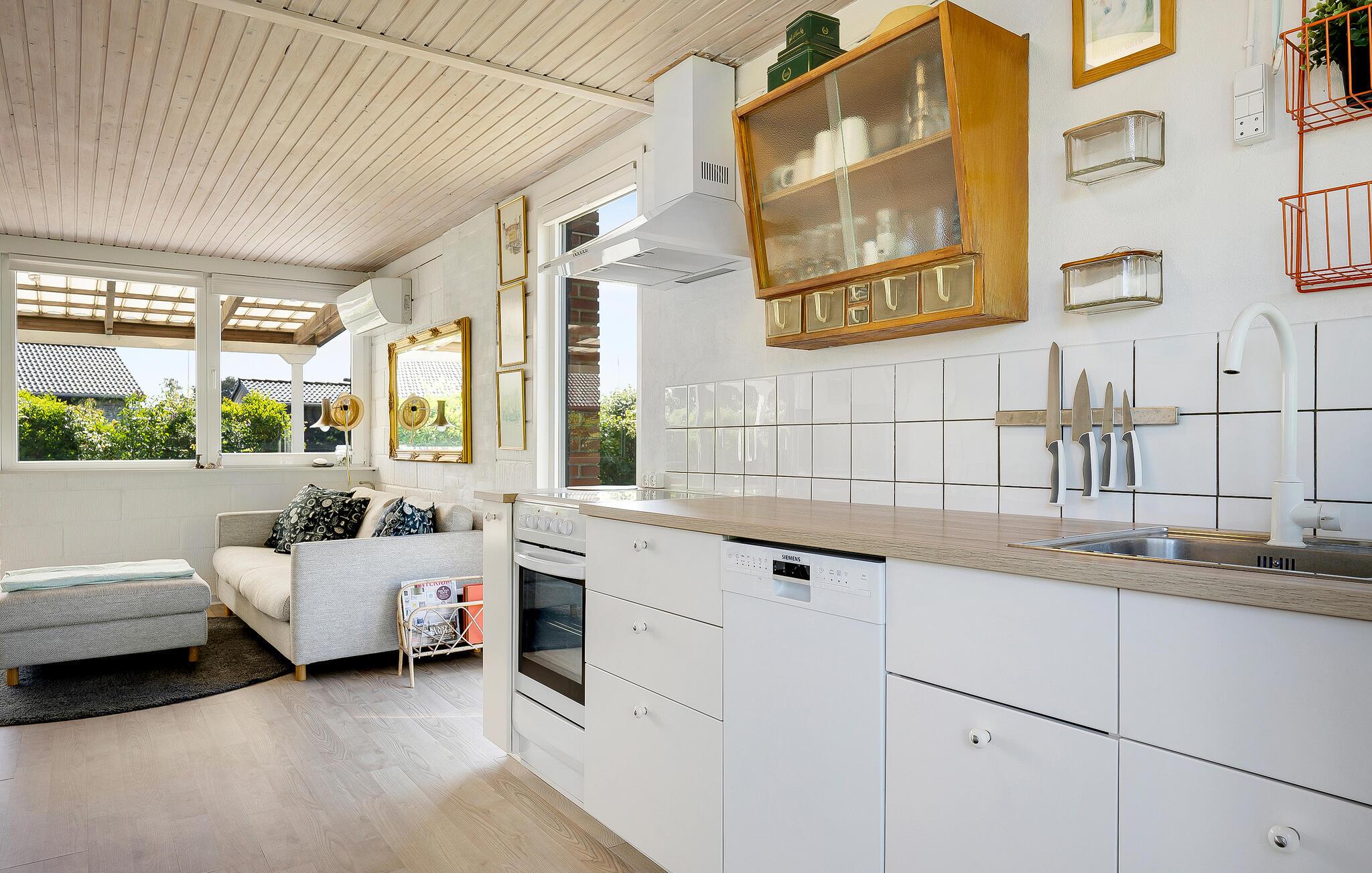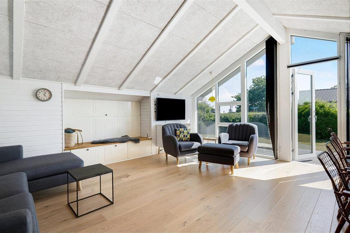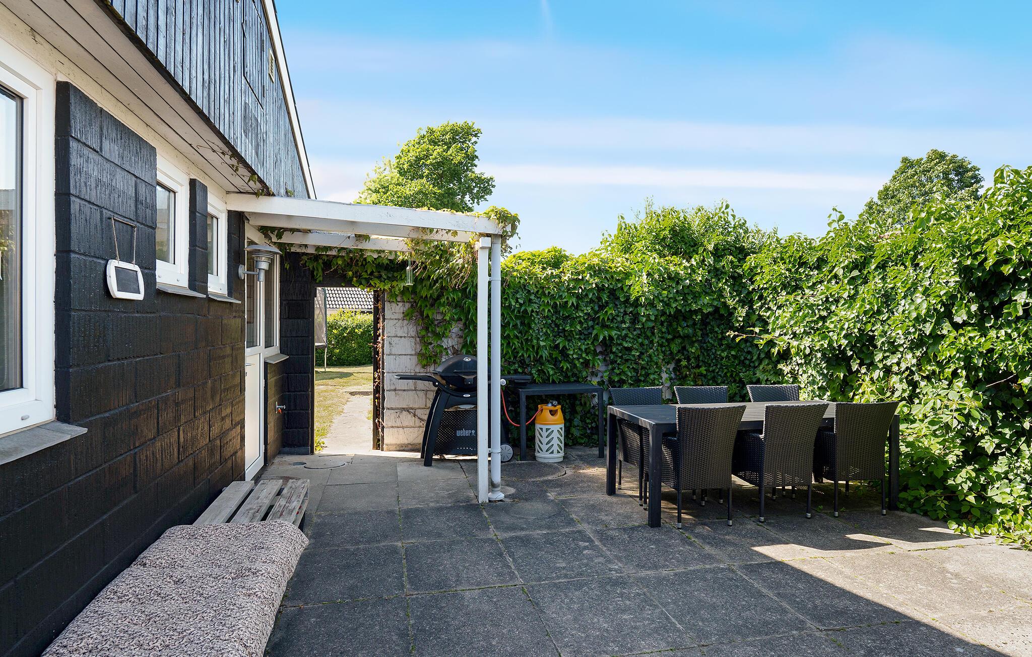 Stap binnen in je vakantiehuis, dat uit twee gebouwen bestaat, en voel meteen de zorgeloze en ontspannen sfeer op slechts een paar stappen van het strand. De open keuken nodigt je uit om samen te koken en te genieten van stimulerende gesprekken bij een kopje koffie. Gebruik de comfortabele stoelen in de woonkamer om te ontspannen en een goede familiefilm te kijken of verdiep je in een spannend boek. Ook buiten zijn er volop mogelijkheden voor ontspanning en vrijetijdsbesteding. Het ruime terras is de ideale plek om te genieten van de frisse lucht, overdekt, onder de parasol of gewoon in de buitenlucht. Speel voetbal op het grasveld met je kinderen en maak uitstapjes naar het strand.