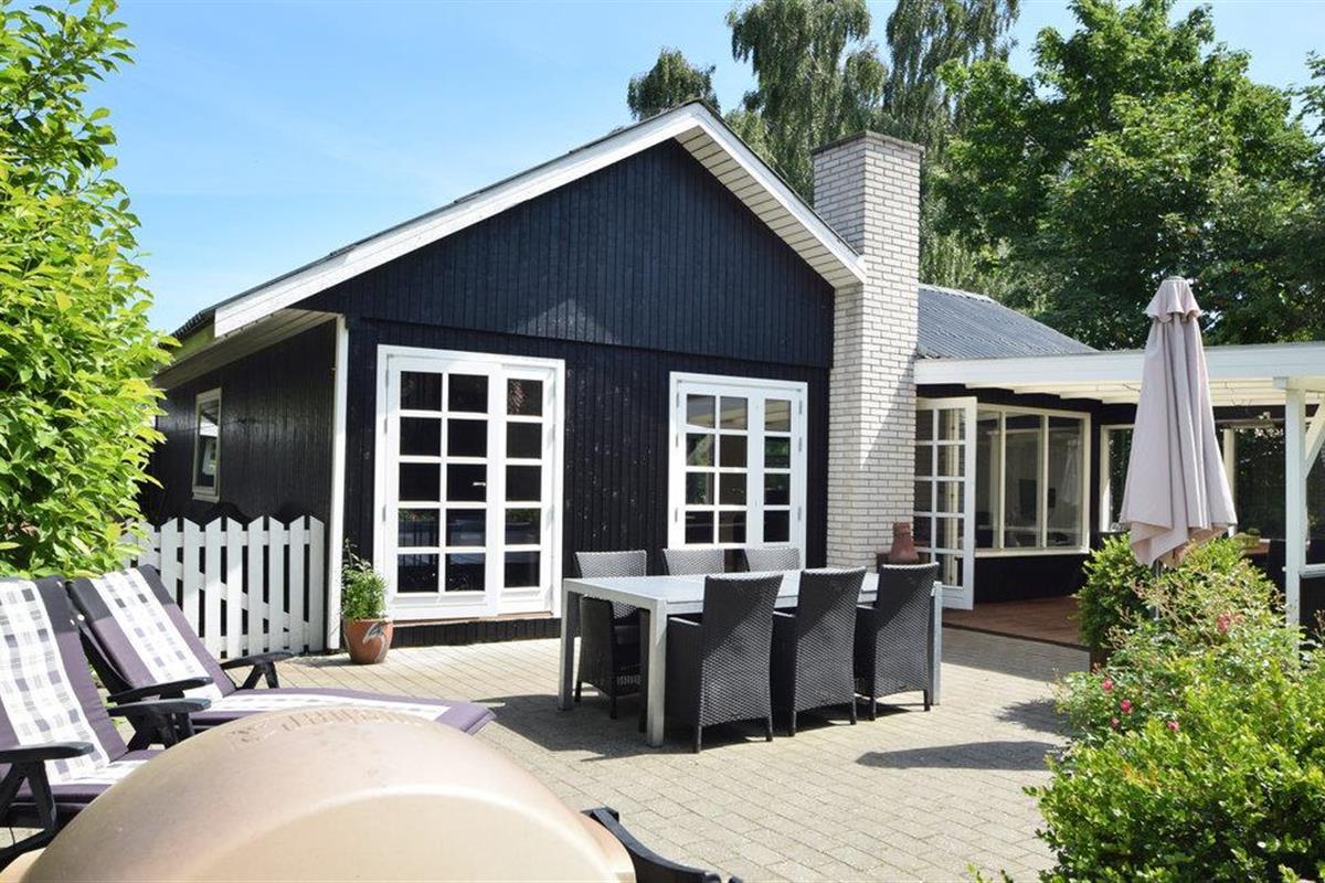 Gezellig vakantiehuis met grote tuin en overdekt terras nabij het strand in Juelsminde, perfect voor een ontspannen gezinsvakantie.