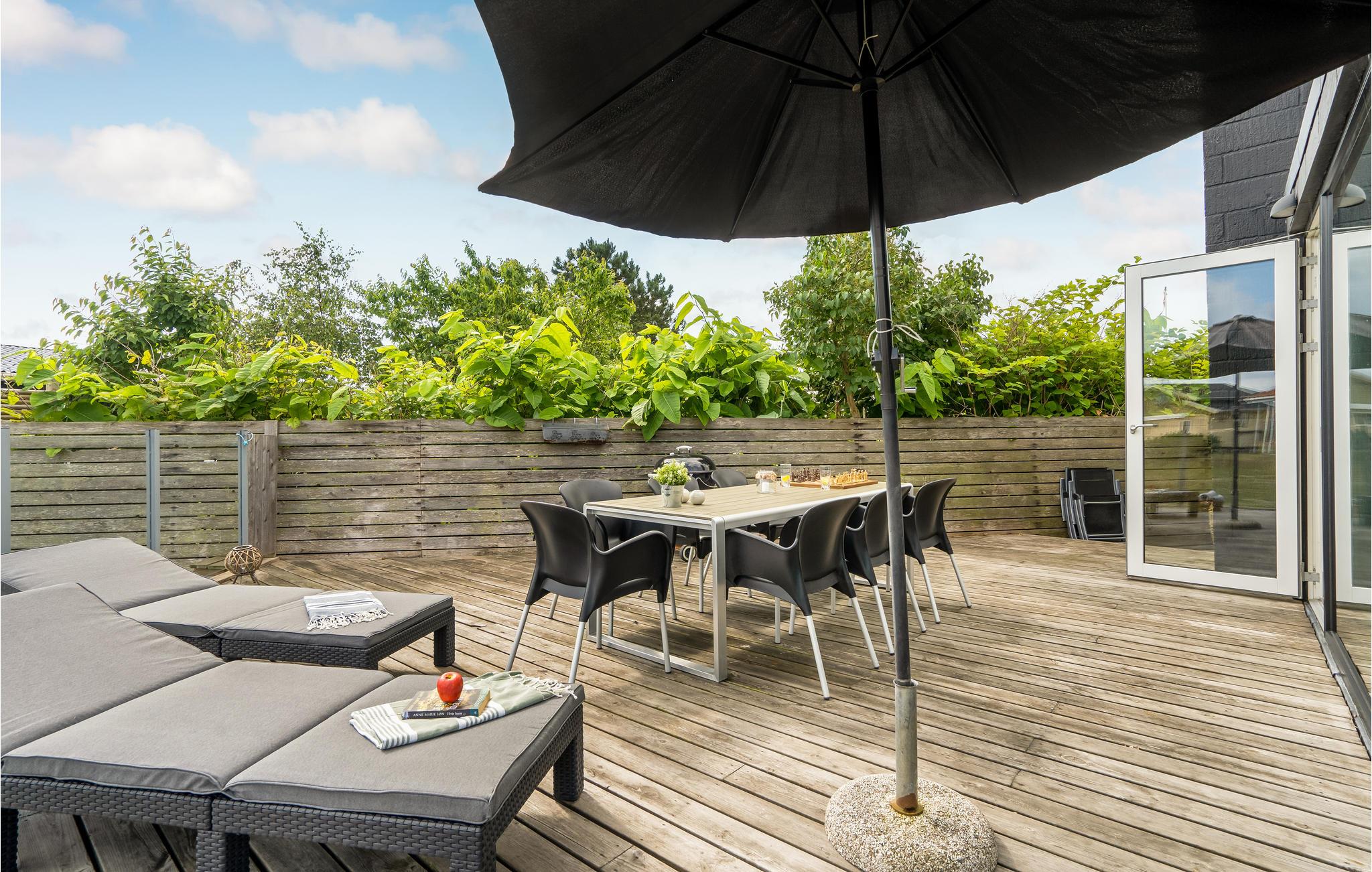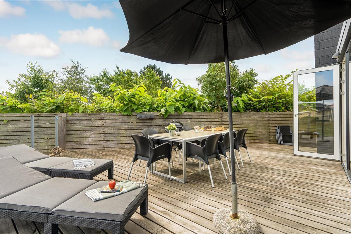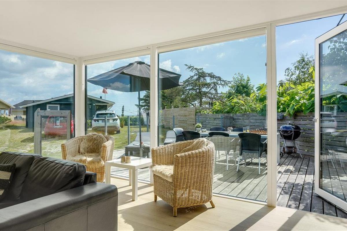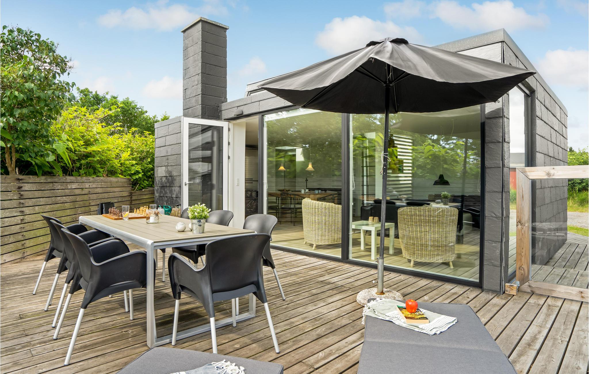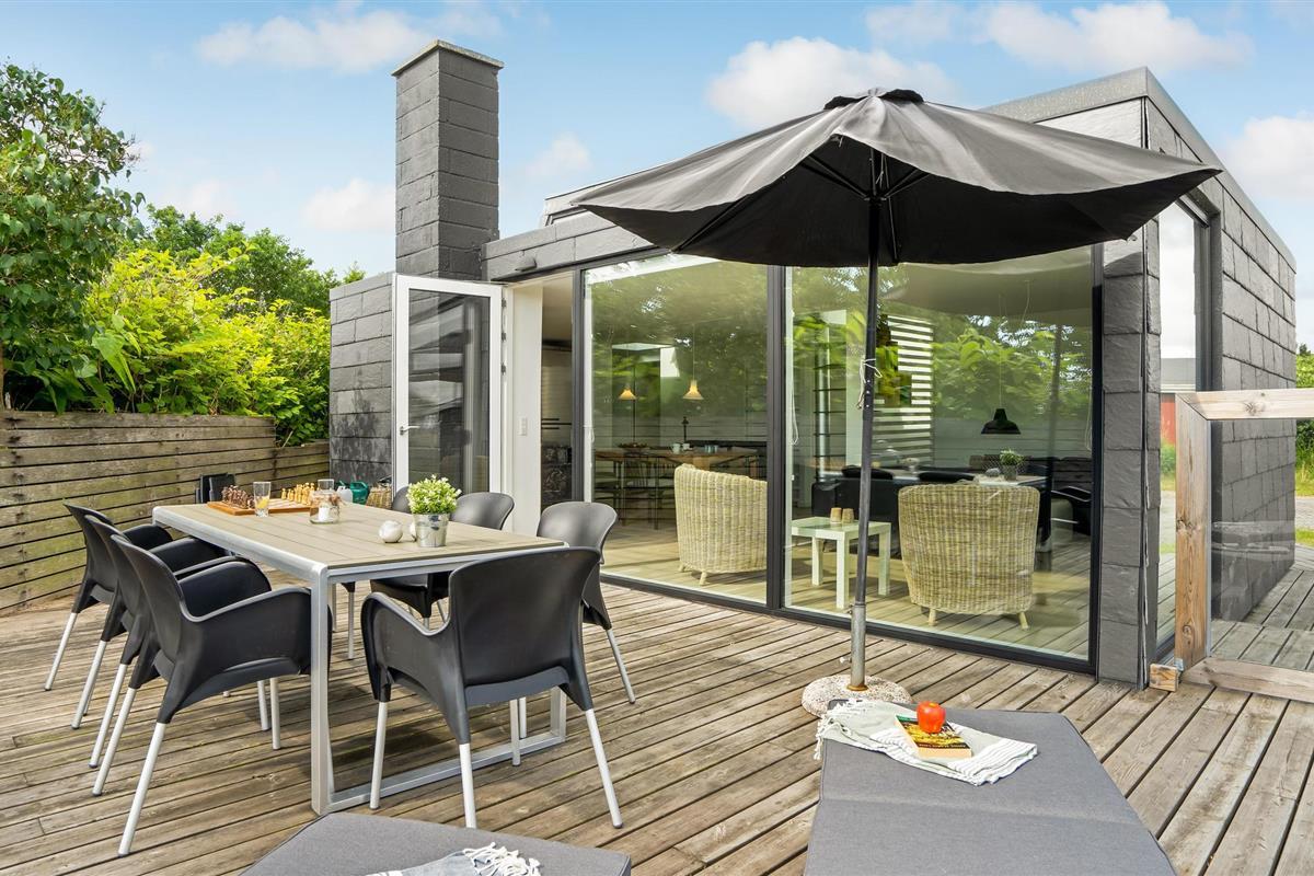 Vanuit de woonkamer heeft u toegang tot de afgesloten terrassen met tuinmeubilair. Hier vindt u verschillende hoekjes waar u zich kunt vermaken met gezelschapsspelletjes of uw favoriete boek. Steek 's avonds de barbecue aan en bereid een heerlijke zomerse maaltijd voor de andere gasten - hier kunt u volop genieten van de lange, heldere avonden.