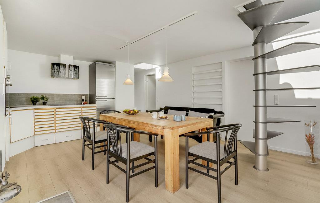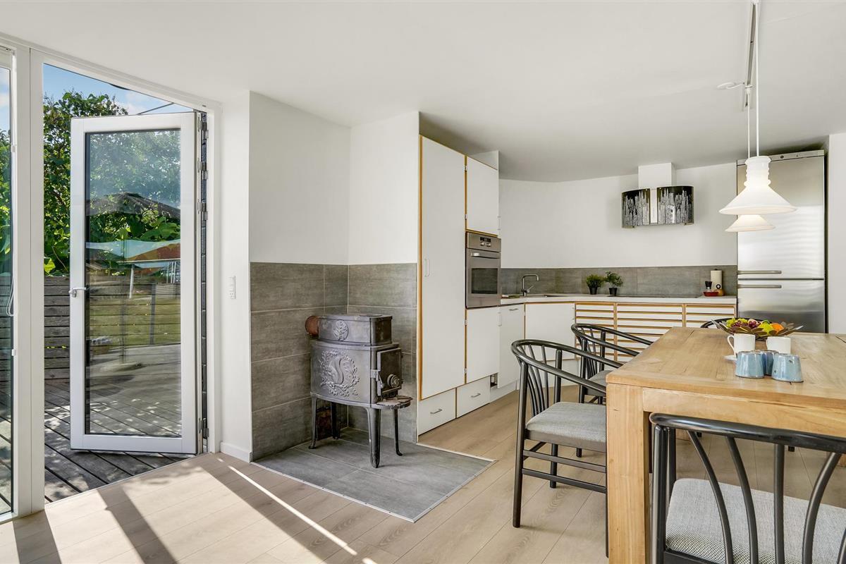 Een paar stappen van het water vindt u dit mooie en originele leistenen huis in Juelsminde. Het dateert uit 1937, maar ziet er goed onderhouden en zeer modern uit. Zelfs op bewolkte dagen laten de ramen veel licht binnen in de licht ingerichte woonkamer, waardoor een zeer aangenaam gevoel van ruimte ontstaat. Op de bovenste verdiepingen nodigt het open dakfront uit om uw blik over de zee te laten dwalen en op een heldere dag de sterrenhemel te observeren.