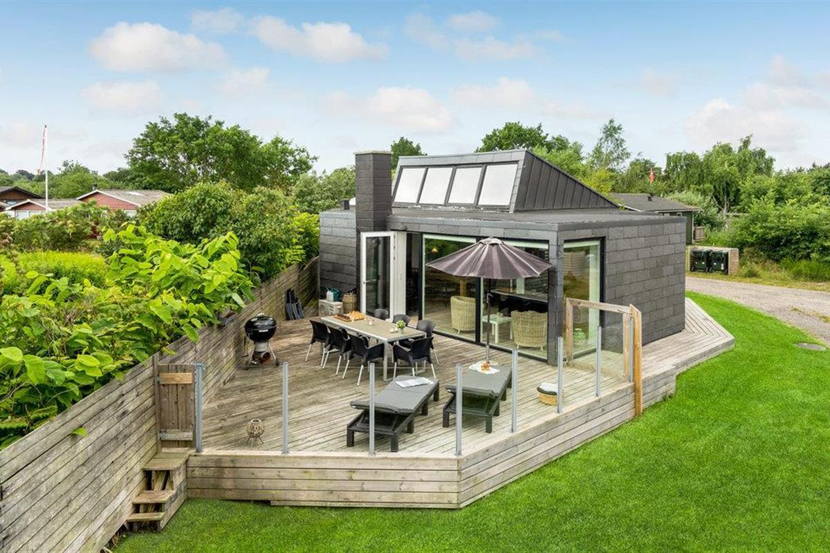 Modern en origineel vakantiehuis met zeezicht, op slechts 80 meter van het zandstrand in Juelsminde.