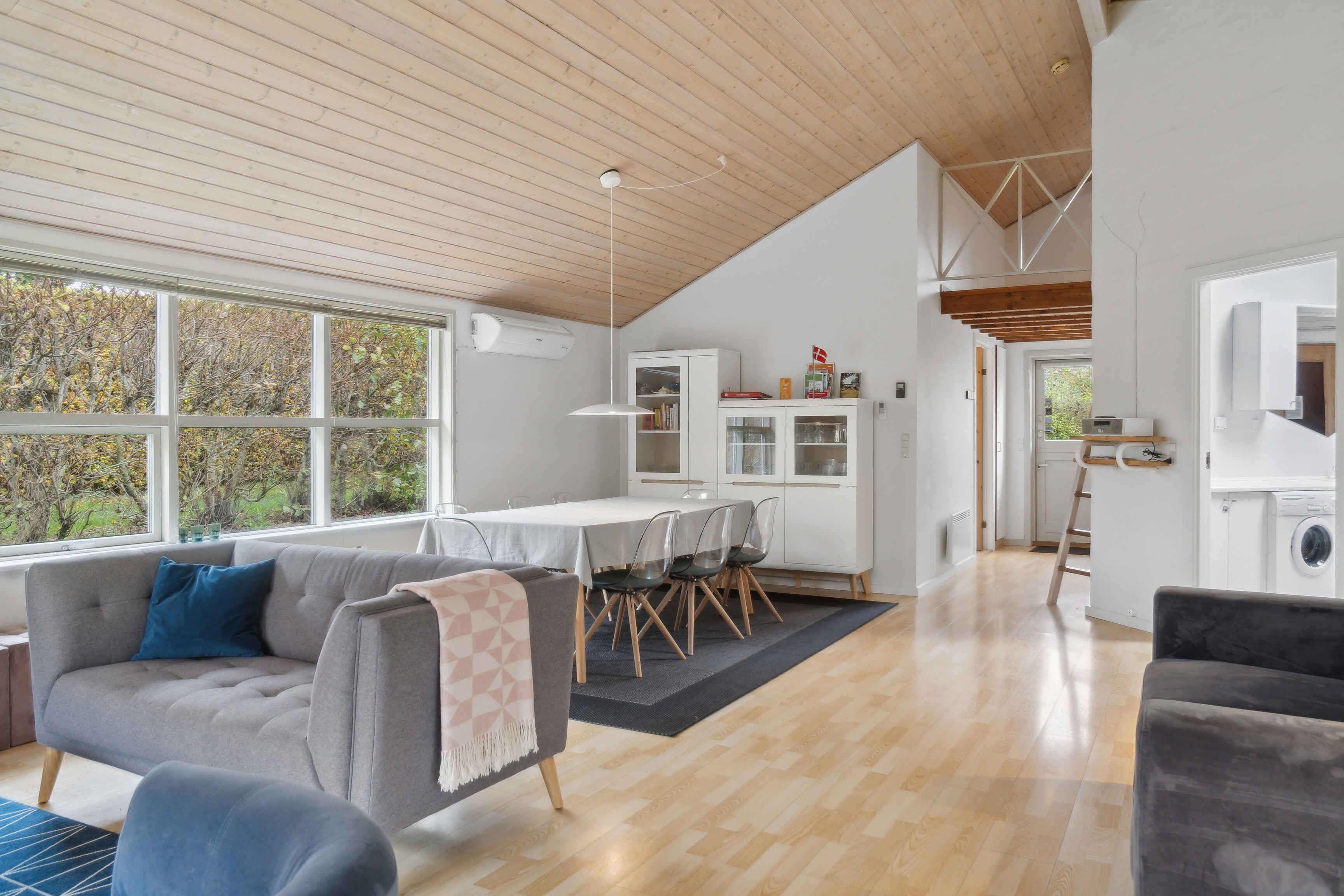 Dit vakantiehuis biedt een ontspannen verblijf in een schilderachtige omgeving, perfect voor een pauze van het dagelijks leven. Met 105 m² biedt het huis comfortabel plaats aan zes personen, verdeeld over drie slaapkamers. Geniet van de rust en gezelligheid bij de houtkachel, terwijl de warmtepomp het hele jaar door zorgt voor een aangename temperatuur. Met internettoegang kun je ontspannen met films of werken onderweg. Het huis heeft prachtig lichtinval dankzij de grote ramen. Op slechts 300 meter van het huis vind je een prachtig strand. Hier kun je lange dagen doorbrengen in het water of op het strand met het gezin. In de zomer kun je genieten van het gedeeltelijk overdekte terras op het zuiden. Ontspanning in de zon is gegarandeerd, en wat is er beter dan de barbecue aansteken en genieten van een Deense zomeravond? Voor de kinderen is er voldoende ruimte om te spelen in de grote tuin. Ook kun je profiteren van het strand van de vakantiekolonie met een zwemsteiger en grote groene gemeenschappelijke ruimtes, of een wandeling maken in het bos. Ervaar de charmante, maritieme sfeer in Juelsminde, met cafés, winkels en gezellige havens. Maak ook een uitstapje naar Hjarnø, een kleine parel in de omgeving. Deze woning en de omliggende bezienswaardigheden garanderen een vakantie waarin zowel kinderen als volwassenen van natuur en ontspanning kunnen genieten. Tijdens je vakantie raden we ook een bezoek aan Juelsminde aan, waar je de maritieme sfeer kunt ervaren die door de hele stad voelbaar is. Hier kun je lekker eten, elkaar uitdagen op de midgetgolfbaan en genieten van een groot ijsje terwijl je naar de boten kijkt. Een bezoek aan het natuurpark is ook van harte aan te bevelen. Voor je boodschappen kun je terecht in Juelsminde, bij de lokale supermarkt in As Vig of in het dorpje Glud. Het eiland Hjarnø, dat met een korte boottocht te bereiken is, is zeker ook een bezoek waard Let op: Niet te huur voor commercieel gebruik.