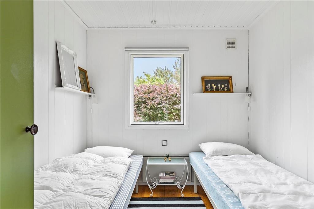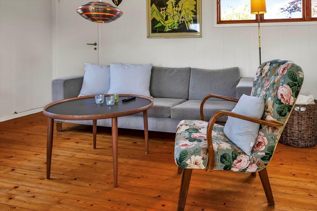 Dieses ältere Ferienhaus liegt hoch in der Landschaft. Von Teilen deines Grundstücks blickst du auf die Sejerøbucht. In der teilweise offenen Küche bereitest du die Mahlzeiten zu und kannst dich, während das Essen auf dem Herd gart, auf dem Diwan niederlassen. Die Mahlzeiten genießt du mit deinen Lieben am mitten im Wohnraum platzierten Esstisch, von dem du durch die großen Terrassenfenster hinaus in Freie blickst. Stimmungsvoll und gemütlich geht es auf dem Sofa und auf den älteren Sitzmöbeln im hellen Wohnraum zu. Hier genießt du angeregte Gespräche, einen frischen Becher Kaffee und lange Lesestunden mit Blick auf das flackernde Feuer im eingebauten Kaminofen.