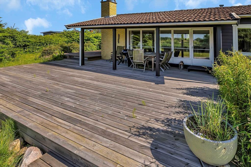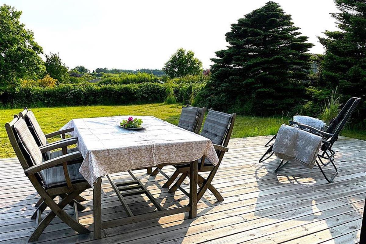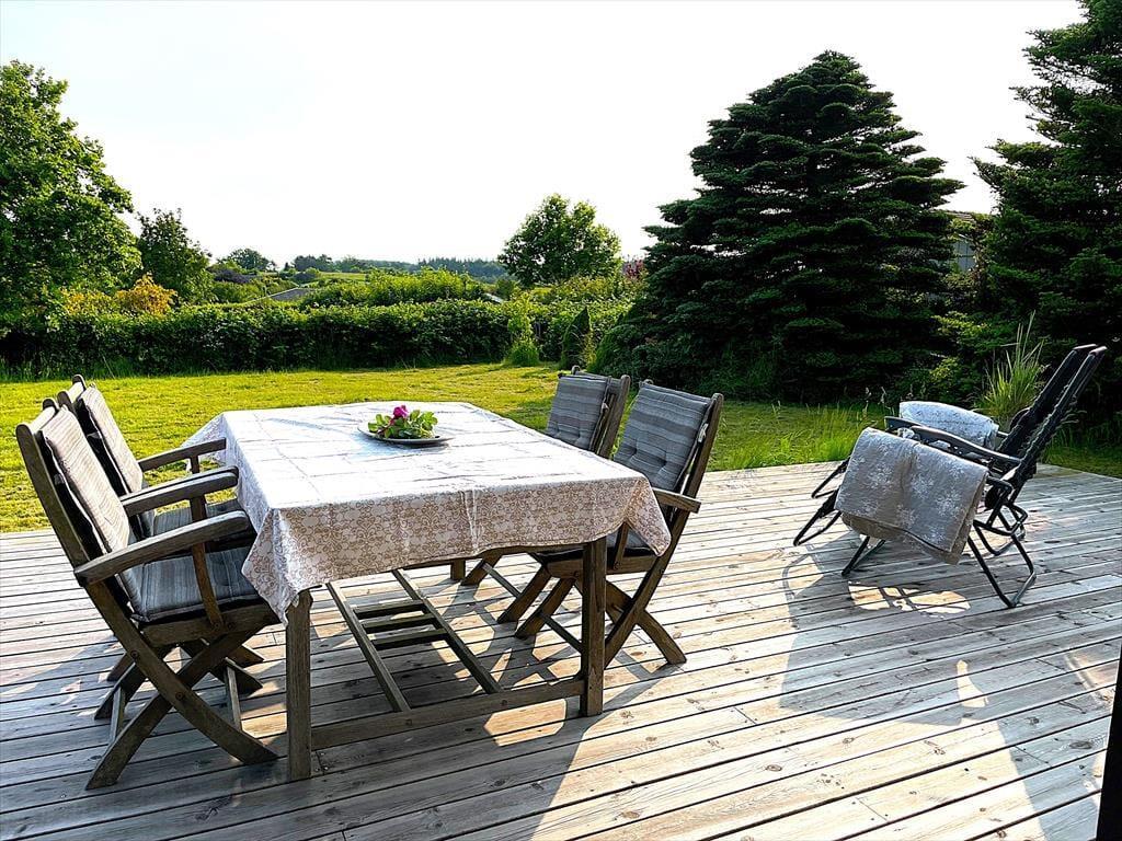 Dein hoch gelegenes Ferienhaus befindet sich auf einem ungestörten Grundstück, das mit einem ansprechenden Bewuchs und einer guten Aussicht zu glänzen weiß. Du kannst es dir je nach Wind und Wetter auf einer der beiden Terrassen gemütlich machen. Dein Ferienhausgebiet liegt nah an offenen, unbebauten Flächen mit guten Wanderpfaden, Grabhügeln und Picknickbänken. Über Pfade erreichst du den Weg, der in das Dorf Ordrup führt. Insbesondere am Morgen und in der Abenddämmerung stehen deine Chancen gut, Rehe, Hasen und andere heimische Wildtiere auf deinem Grundstück zu beobachten.