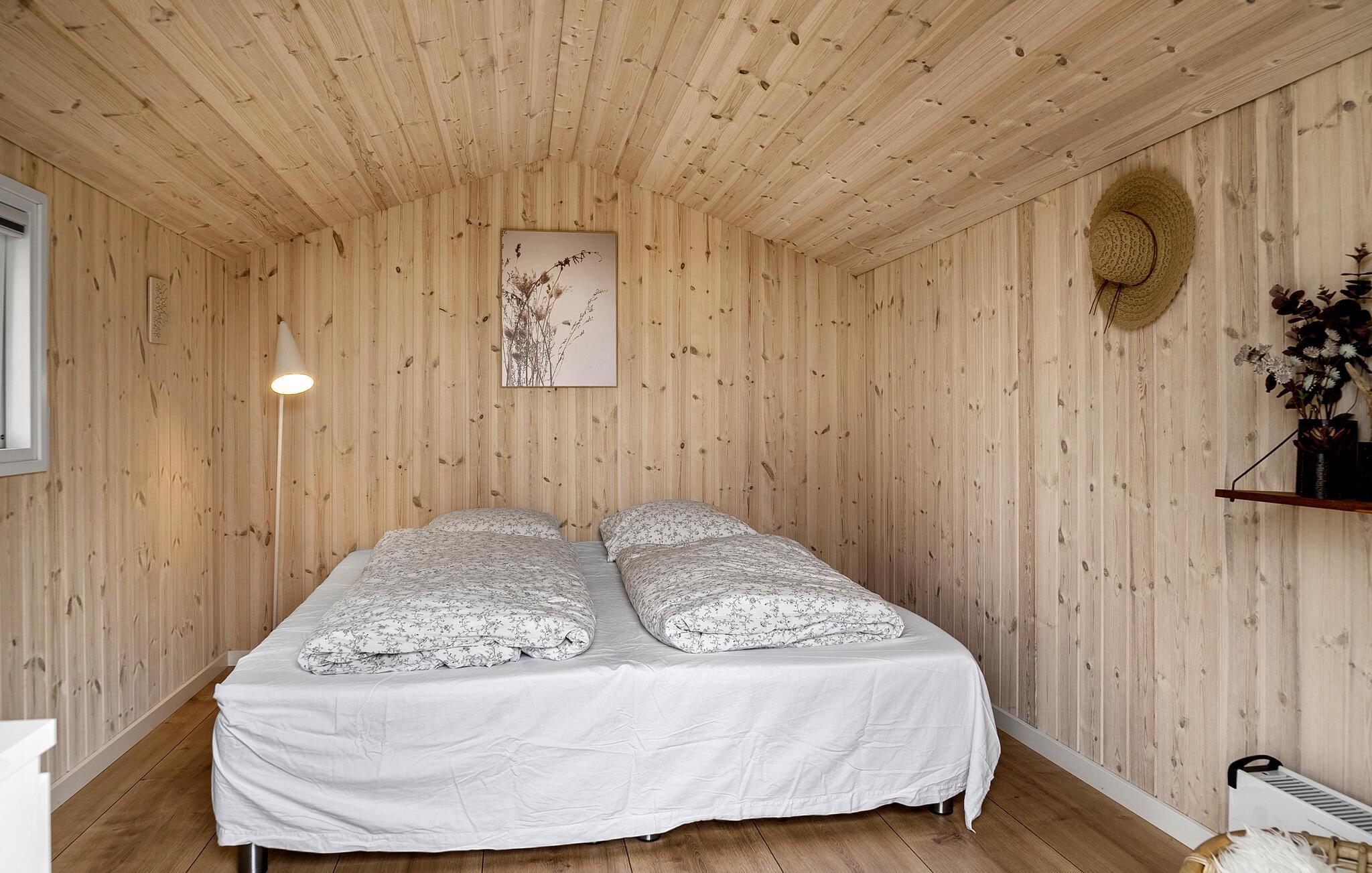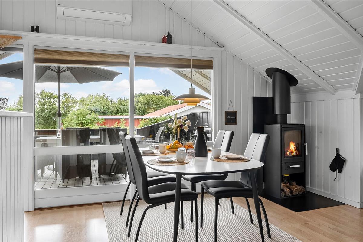 Ontdek dit energiezuinige vakantiehuis met open keuken en houtkachel nabij Krik Vig in Denemarken.