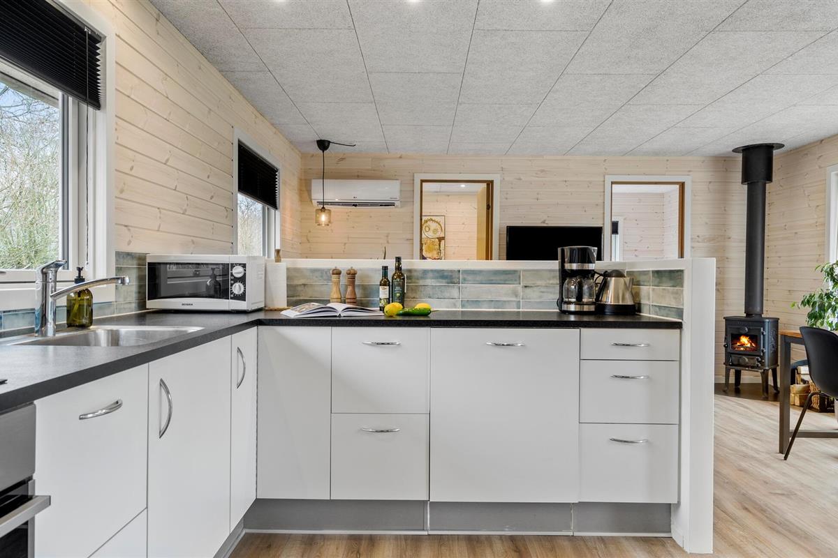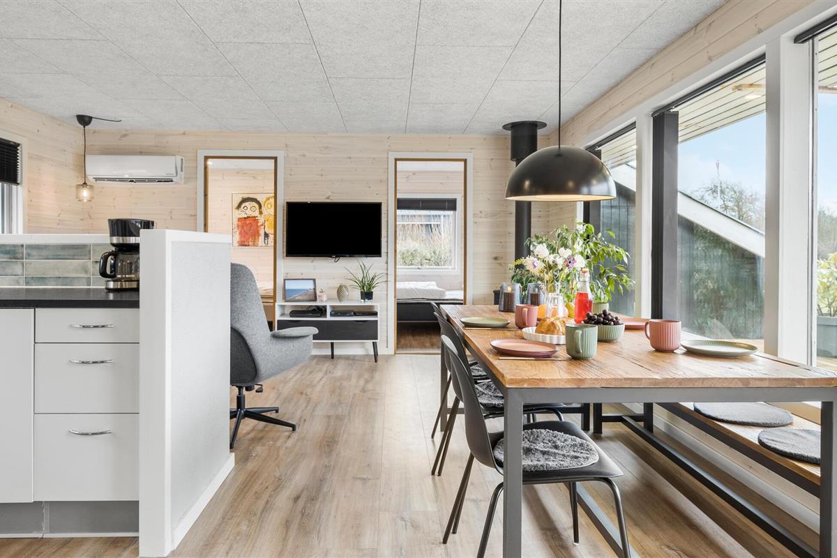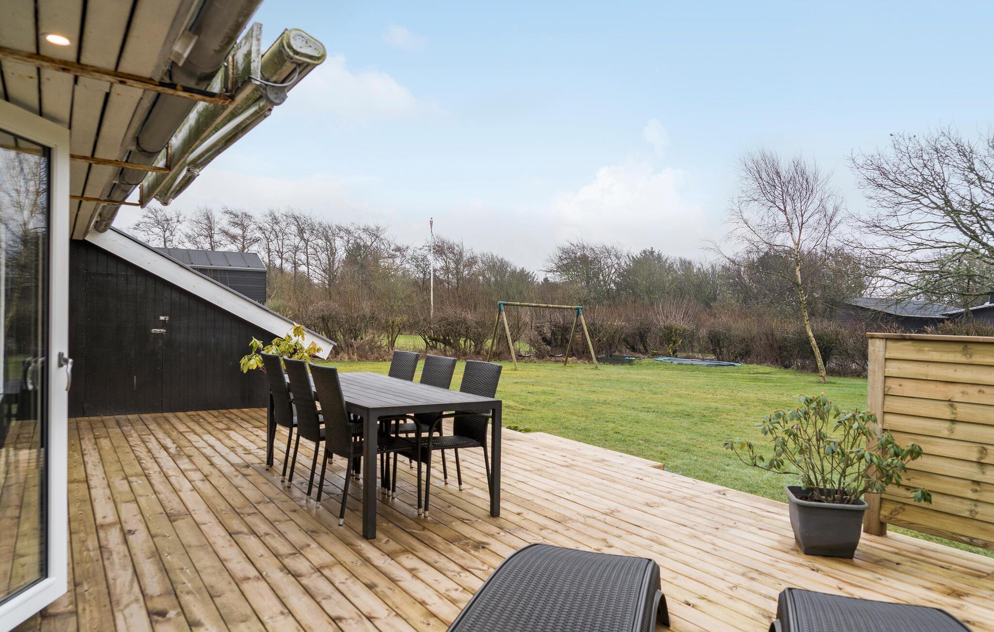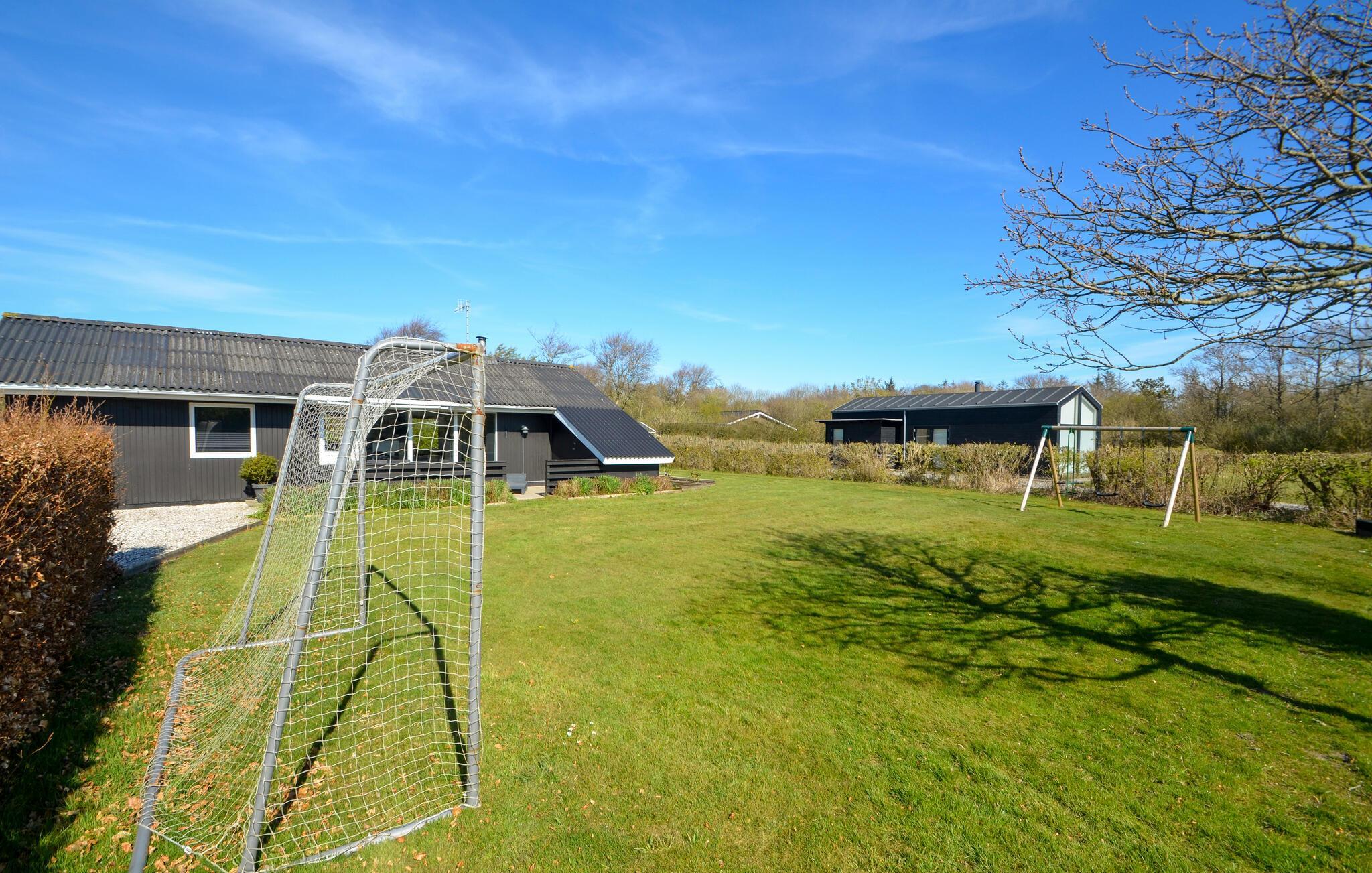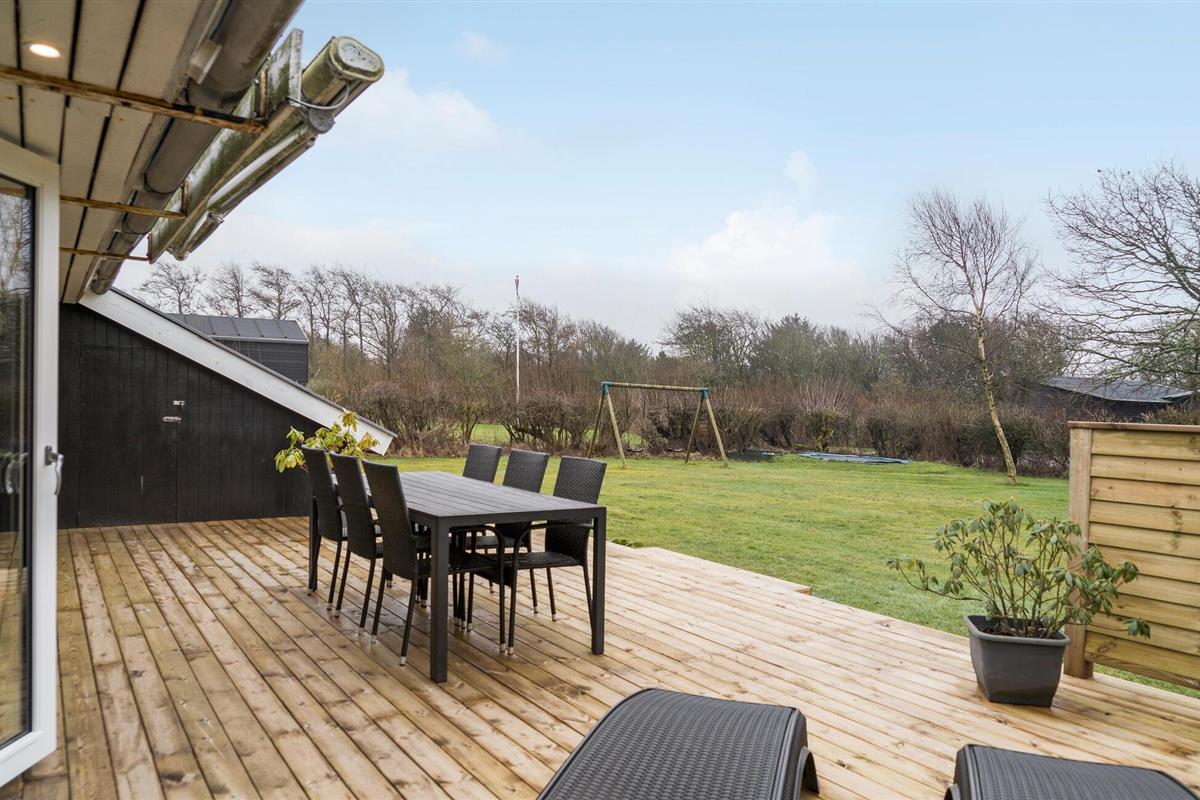 Gezellig vakantiehuis met lichte en moderne inrichting. Mooie keuken en aangename badkamer. Het huis ligt aan een rustig vakantiehuispad met ruime groenstroken. Het gedeeltelijk beschutte terras geniet van vele uren zon. Rondom het huis zijn er gezellige hoekjes in de tuin. U vindt bijna altijd een plekje in de zon en windschaduw. Maak uitstapjes naar het Zeeoorlogsmuseum, Jyllandsakvariet en Kystcenter in Thyborøn - hier zijn veel belevenissen voor het gezin.