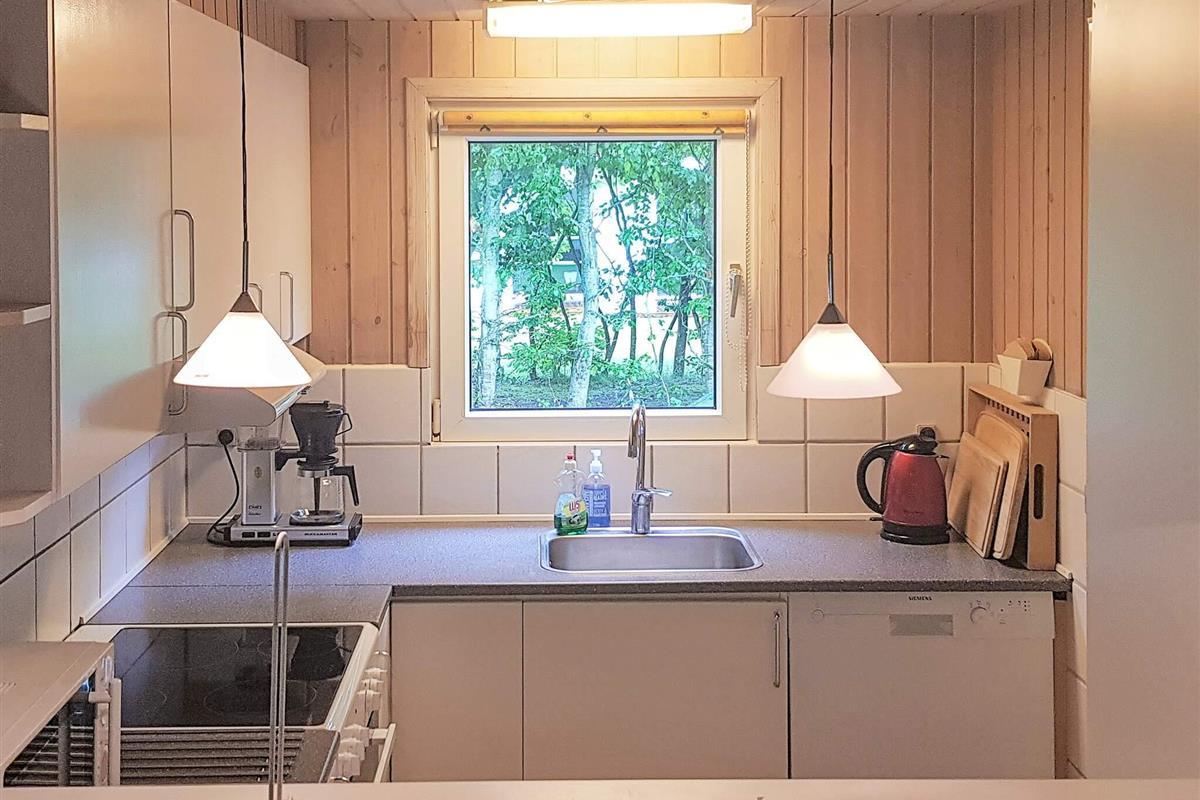 Sie wohnen hier umgeben von wunderschöner Natur und nur ca. 200 m von einem schönen Strandufer entfernt. Es gibt diverse Aktivitätsmöglichkeiten sowohl ringsum in der Natur als auch im Ferienhaus selbst. Die fünf Schlafzimmer mit guten Betten und die beiden Bäder bieten ausreichend Platz für einen Mehrfamilienurlaub.
