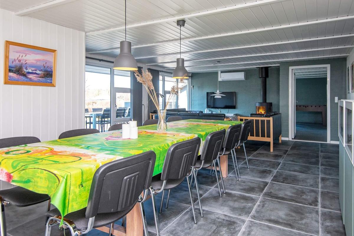 Über das Ferienhaus Über das Ferienhaus In Købingsmark finden Sie dieses Ferienhaus mit einem großen Aktivitätsraum für Freizeitspaß und verschiedenen Wellnessangeboten. Nach einem aktiven Tag können Sie im Whirlpool oder in der Sauna des Hauses entspannen. Ab der Saison 2022 gibt es auch einen Whirlpool auf der Terrasse des Hauses. Das Haus wurde für die Saison 2022 weiter modernisiert, beispielsweise durch einen neuen großen Hauswirtschaftsraum mit viel Stauraum, beispielsweise für einen Kinderwagen. Die Küche wurde renoviert und große Fenster sorgen für noch mehr Tageslicht. Im geräumigen Haus gibt es einen separaten Aktivitätsraum, in dem Sie stundenlang Billard spielen können. Ein zusätzlicher Fernseher bietet außerdem die Möglichkeit, DVDs zu schauen. Die insgesamt 10 Betten verteilen sich auf fünf Schlafzimmer mit jeweils einem Doppelbett. In drei Schlafzimmern können die Doppelbetten zu zwei Einzelbetten zusammengestellt werden. Von der Wohnküche des Hauses gelangt man auf die 50 m² große Terrasse, auf der man im Sommer grillen und ansonsten die schöne Umgebung genießen kann. Für Spiel und Spaß sorgt ein 1.500 m² großes Grundstück mit Rutsche und Schaukel für die Kleinen. Keine Vermietung an Jugendgruppen erwünscht!