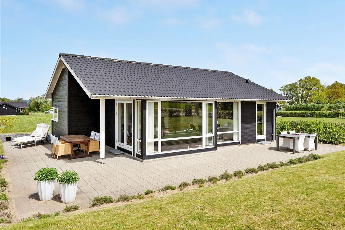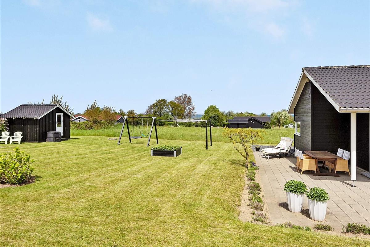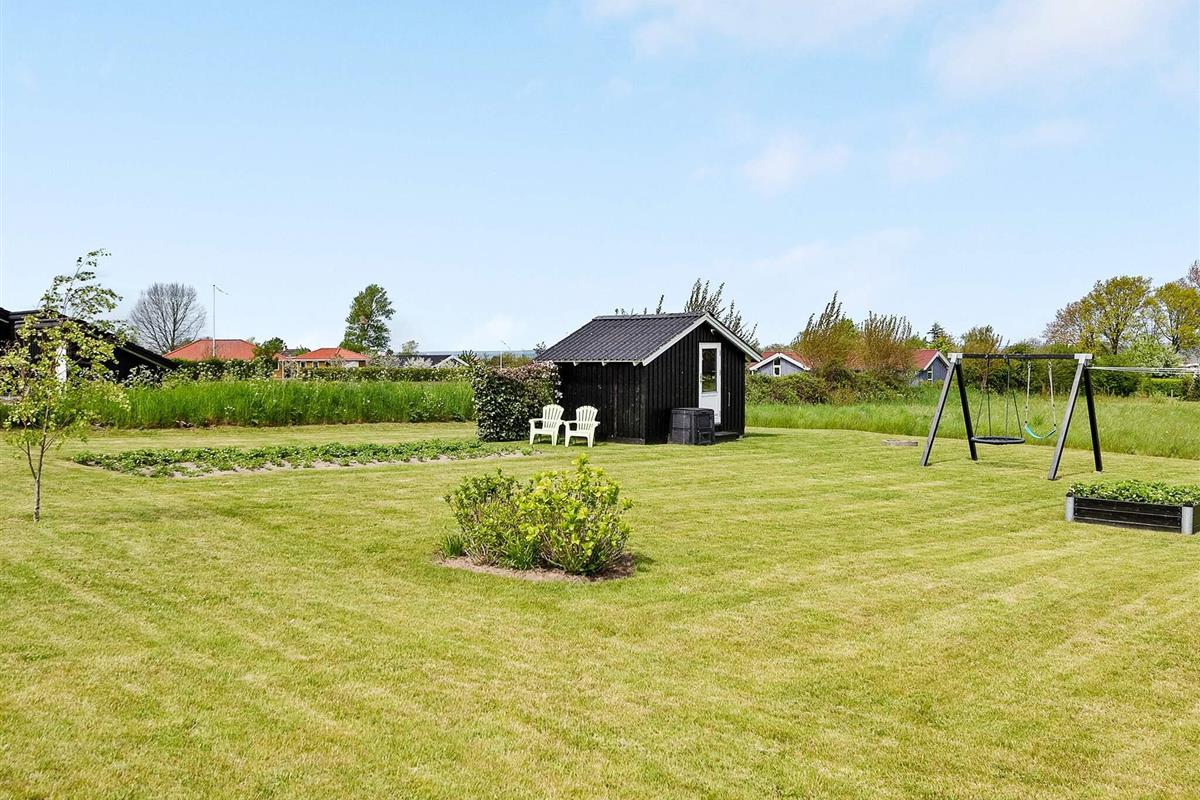 Im Außenbereich erwartet Sie eine beeindruckende 85 m² große Terrasse mit mehreren Sitzbereichen und Sonnenliegen – ideal zum Essen oder einfach zum Entspannen an der frischen Luft. Die großzügige Rasenfläche bietet viel Platz zum Spielen, während Schaukeln und ein Sandkasten für beste Unterhaltung der kleinen Gäste sorgen. Das ruhige, flache Wasser macht Købingsmark zu einem beliebten Familienstrand. Die malerische Küste lädt zu langen Spaziergängen am weichen, weißen Sand ein.