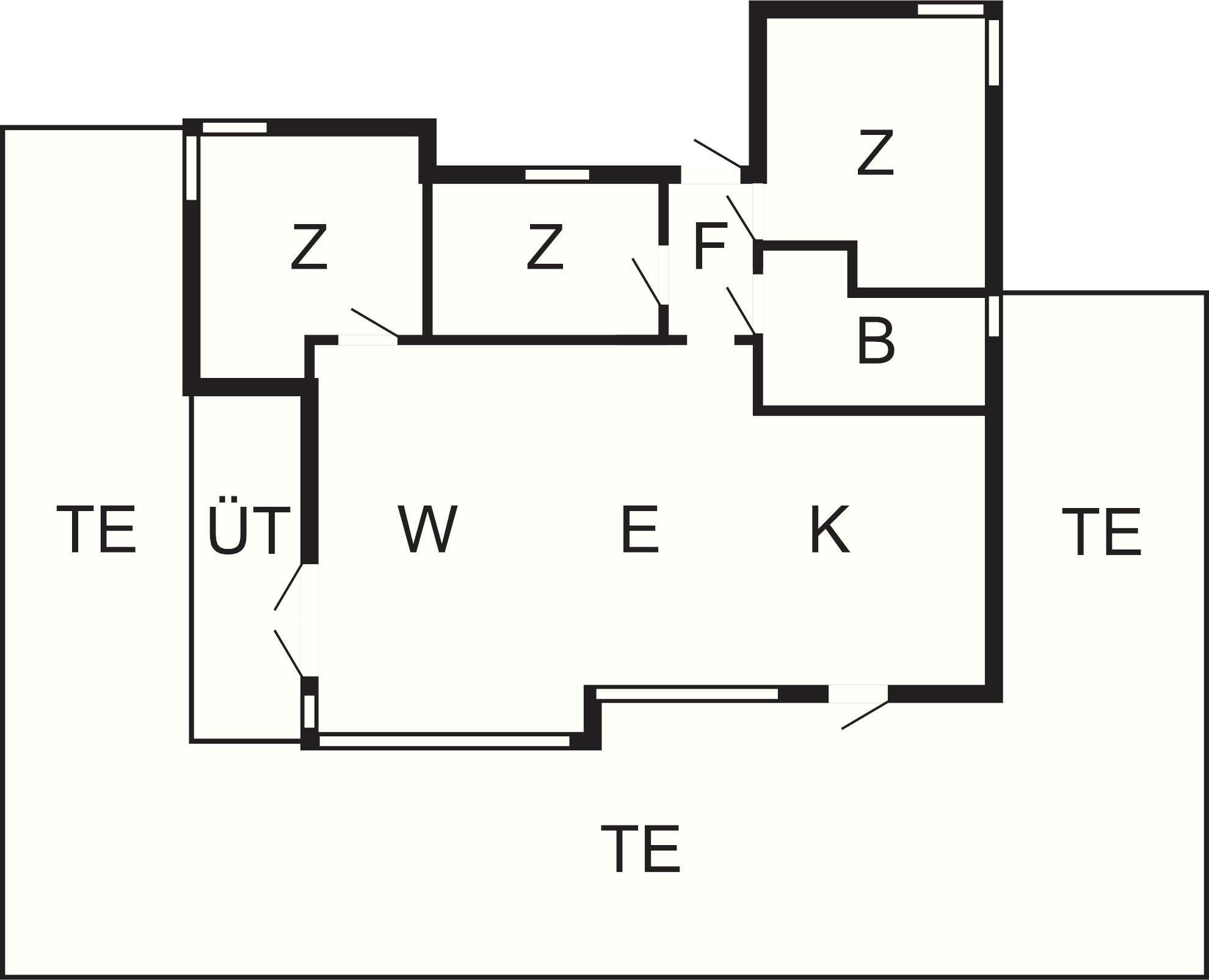 Küche: E-Herd, Ofen, Kühlschr. m. Gefrierfach, Mikrow., Kaffeem., Spülm.