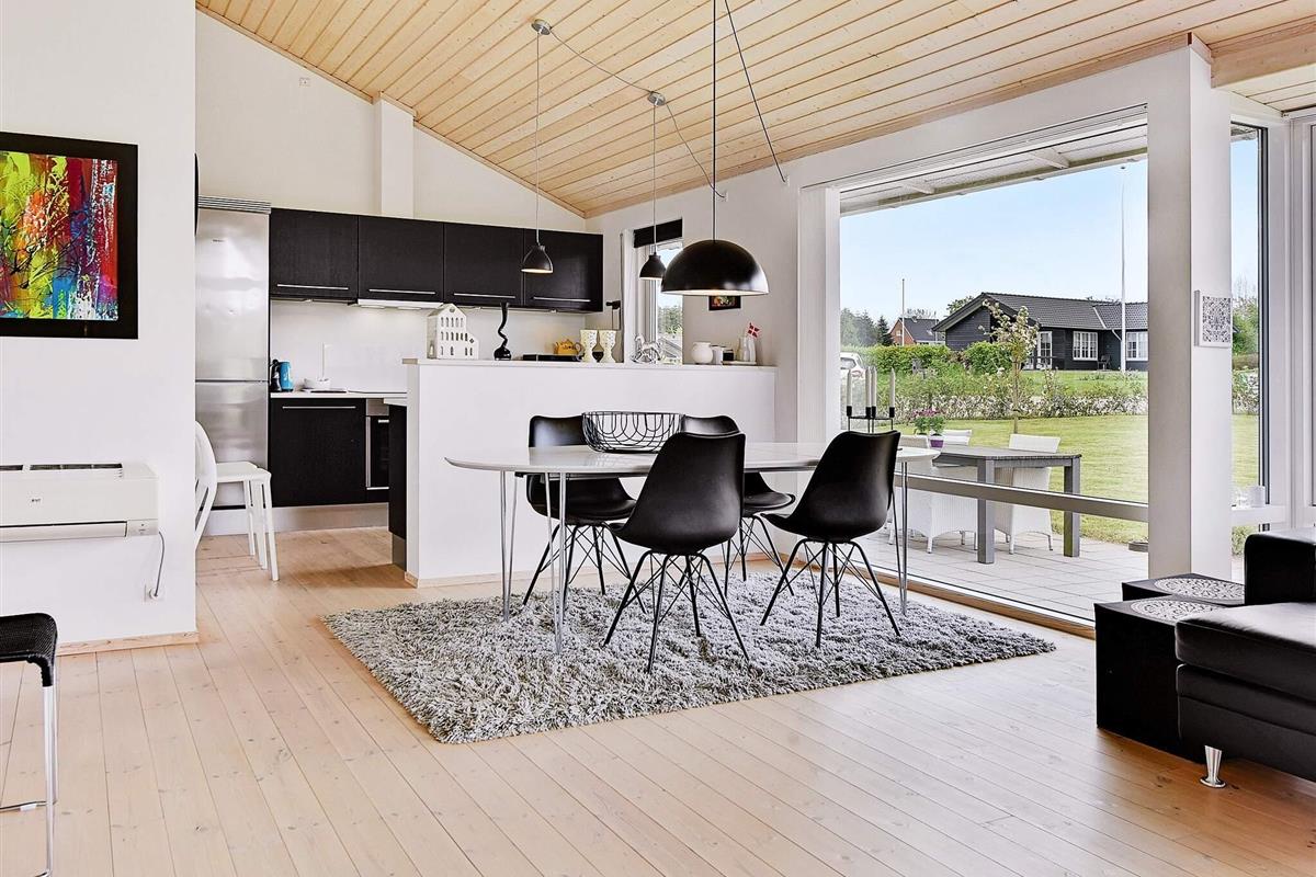 Dieses geräumige Ferienhaus liegt in der Nähe des familienfreundlichen Strandes von Købingsmark und bietet Gästen jeden Alters einen einladenden Rückzugsort. Der helle, offene Küchen- und Wohnbereich bildet das Herzstück des Hauses. Große Fenster sorgen für viel Tageslicht und bieten einen herrlichen Blick auf den umliegenden Garten. Sowohl von der Küche als auch vom Wohnzimmer aus haben Sie direkten Zugang zu einer großen Terrasse, die eine harmonische Verbindung zwischen Innen- und Außenbereich schafft.