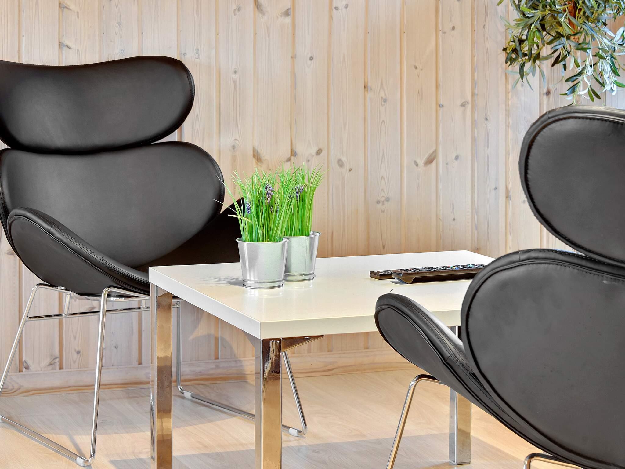 Der Wohnbereich mit Essecke wurde geschmackvoll eingerichtet und technisch mit CD- und DVD-Spieler sowie Flachbildschirm ausgestattet. Damit auch die kleinen Gäste am Tisch Platz nehmen können, steht ein Hochstuhl bereit. Die schöne Sitzecke und der Holzofen laden zum gemütlichen Beisammensein ein.