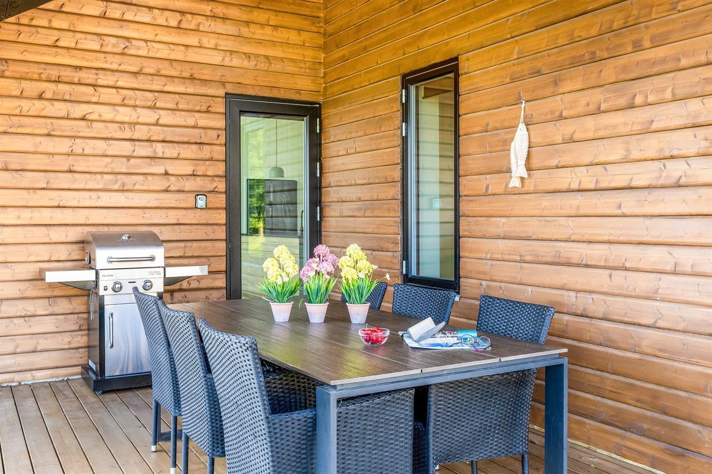 De vakantiewoning is gelegen op een 1200 m² groot aangelegde tuin. Afstand tot de zee 400 m. Dichtstbijzijnde winkel 2000 m. Er is een golfbaan op een afstand van 6000 m. Bij de vakantiewoning hoort terras en 18 m2 overdekt terras. Gereedschapsruimte. Schommel. Zandbak. Buitendouche. Barbecue. Het huis heeft een stopcontact voor het opladen van een elektrische auto. CEE-stekker. Parkeerplaats bij het huis.