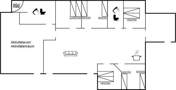Er zijn in totaal 5 slaapkamers. De slaapplaatsen zijn als volgt verdeeld: 4 slaapplaatsen in tweepersoonsbedden. 6 slaapplaatsen in eenpersoonsbedden. Verder is kinderbed ter beschikking.