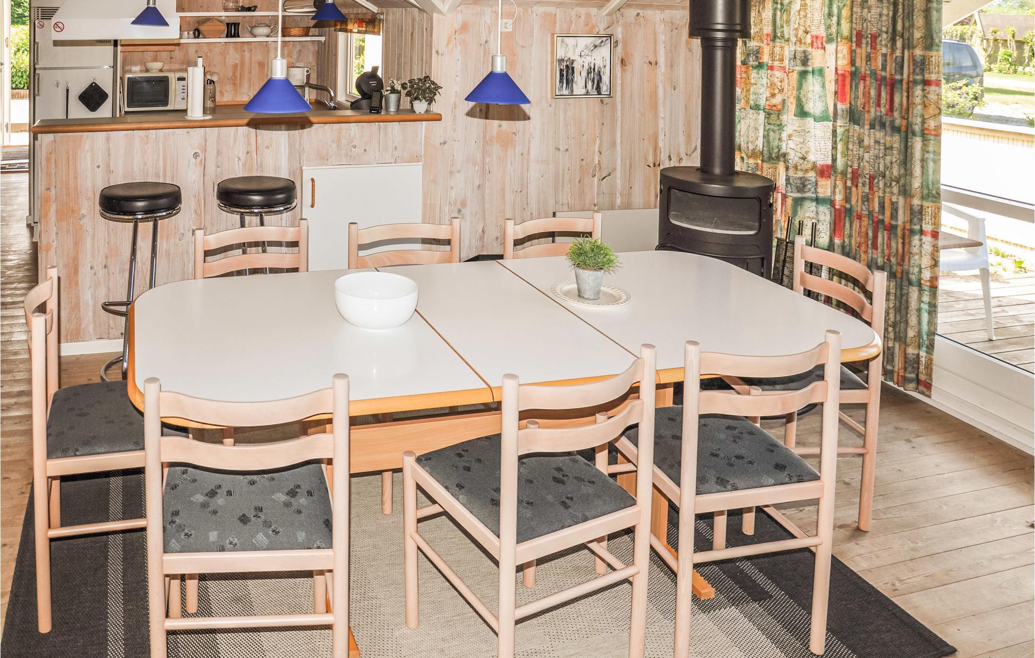 Binnen heeft het overal houten vloeren, wat een gezellige sfeer creëert. Op de zuidelijke en westelijke terrassen kunt u genieten van de zon en het uzelf gemakkelijk maken bij de barbecue. Vanaf hier kunt u ook de zee zien. De keuken is gescheiden van de woonkamer door een toonbank. Neem plaats op de barkrukken en geniet van een drankje terwijl u kookt. De badkamer biedt een whirlpool en sauna, en er is een wasmachine en droger in de gang.