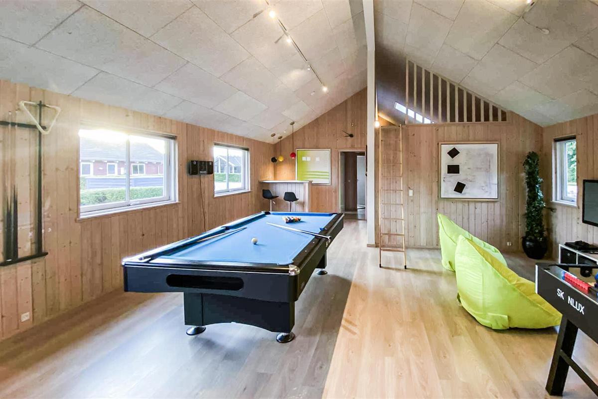 Een prachtig huis met 7 slaapkamers en een vide. Dit huis heeft een kamer waar je elkaar kunt uitdagen voor darts, tafeltennis en biljart. De kamer ligt naast de woonkamer/keuken, die netjes is ingericht. Het huis heeft ook een elegante biljartkamer met een aangrenzende sauna en een ruime whirlpool voor 6 personen. In het huis vind je meubels die je het gevoel geven dat je thuis bent gekomen. Sønderborg is niet ver weg en heeft goede winkelmogelijkheden, een drukke haven met een gezellige sfeer en de historische bezienswaardigheden Dybbøl Mølle en Kasteel Sønderborg. Vlakbij ligt het avonturenpark Universe, waar je je urenlang kunt vermaken met wetenschappelijke en technische fenomenen. Beddengoed, handdoeken, kinderbed en kinderstoel kunnen gehuurd worden tegen 's catalogusprijzen.