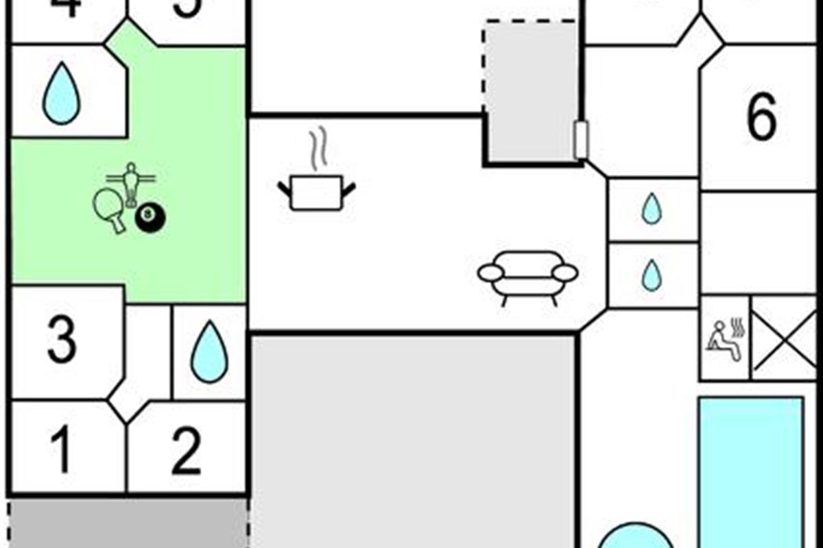 Een gastvrij huis met een verscheidenheid aan faciliteiten voor de veeleisende vakantiegast. Een activiteitenruimte met biljart, tafeltennis en darts is beschikbaar. De ruimte bevindt zich naast de grote woonkamer met directe toegang tot de keuken. De zwembadkamer heeft zowel een zwembad, een 6-persoons whirlpool als een sauna. Het huis is ingericht met comfortabel meubilair waardoor u zich thuis zult voelen. Er zijn 8 slaapkamers en een open slaapzolder die jongere gasten zal aanspreken.