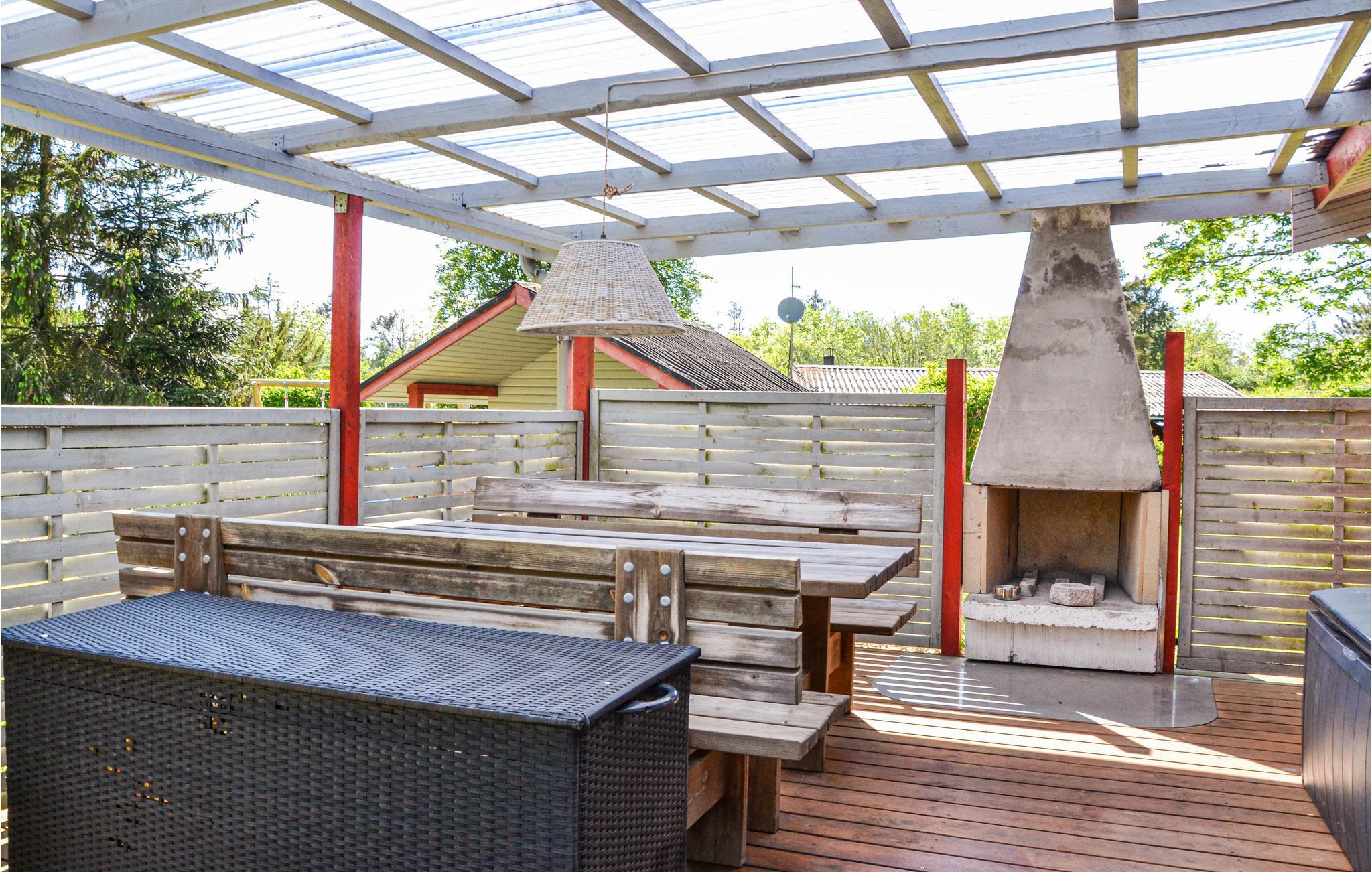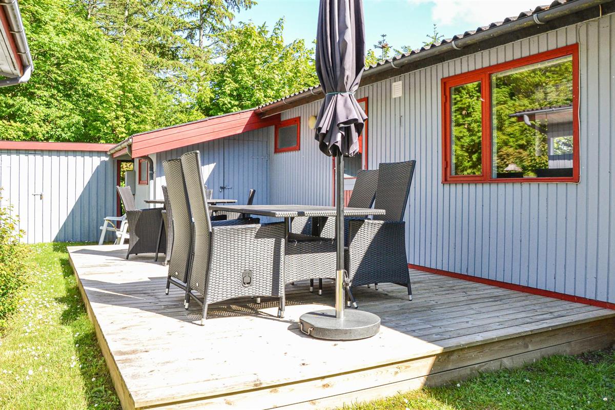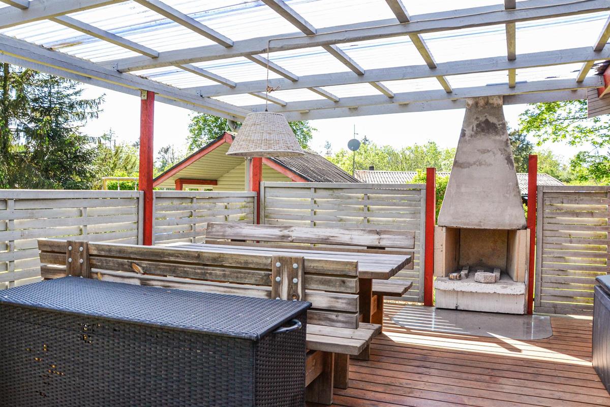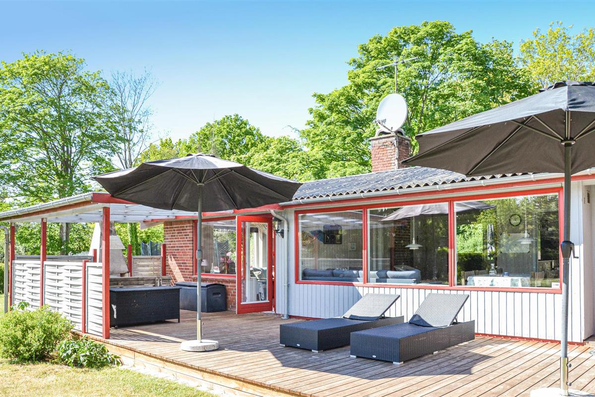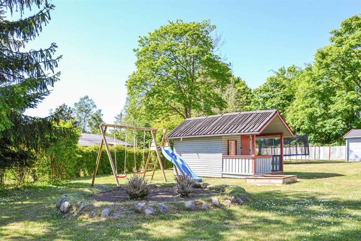 Bij het huisje vindt u heerlijke terrasjes om te zonnen en te barbecueën. s Avonds kunt u zelfs buiten de open haard aansteken en genieten van het comfort van de buitenlucht. Het terrein is 1700 m² groot en voorzien van een zandbak, schommel, speelhuisje, trampoline en een croquetspel. Om te vissen kunt u naar het put & take meer Løgtvedgård en met een beetje geluk een goede vangst doen.