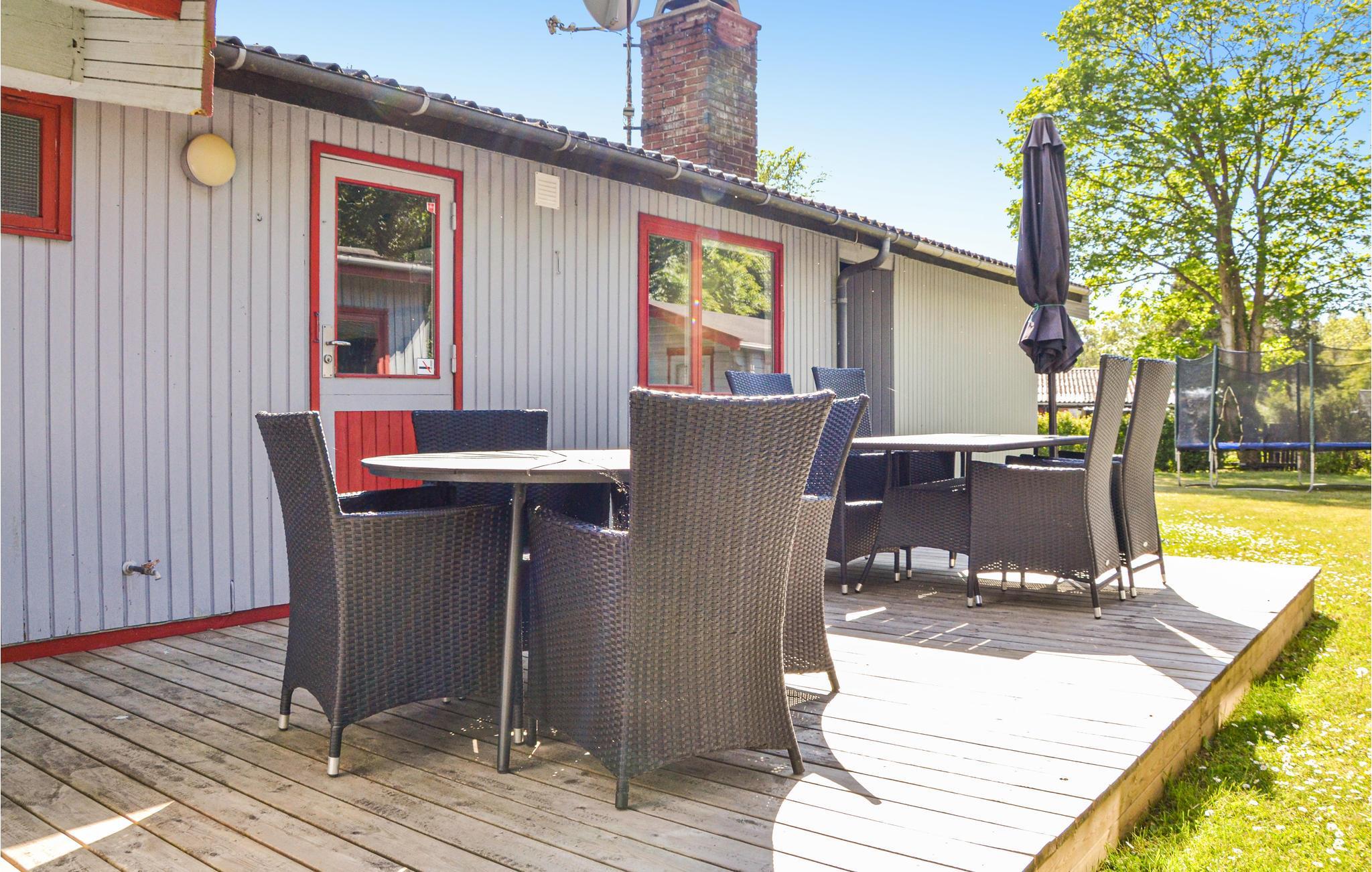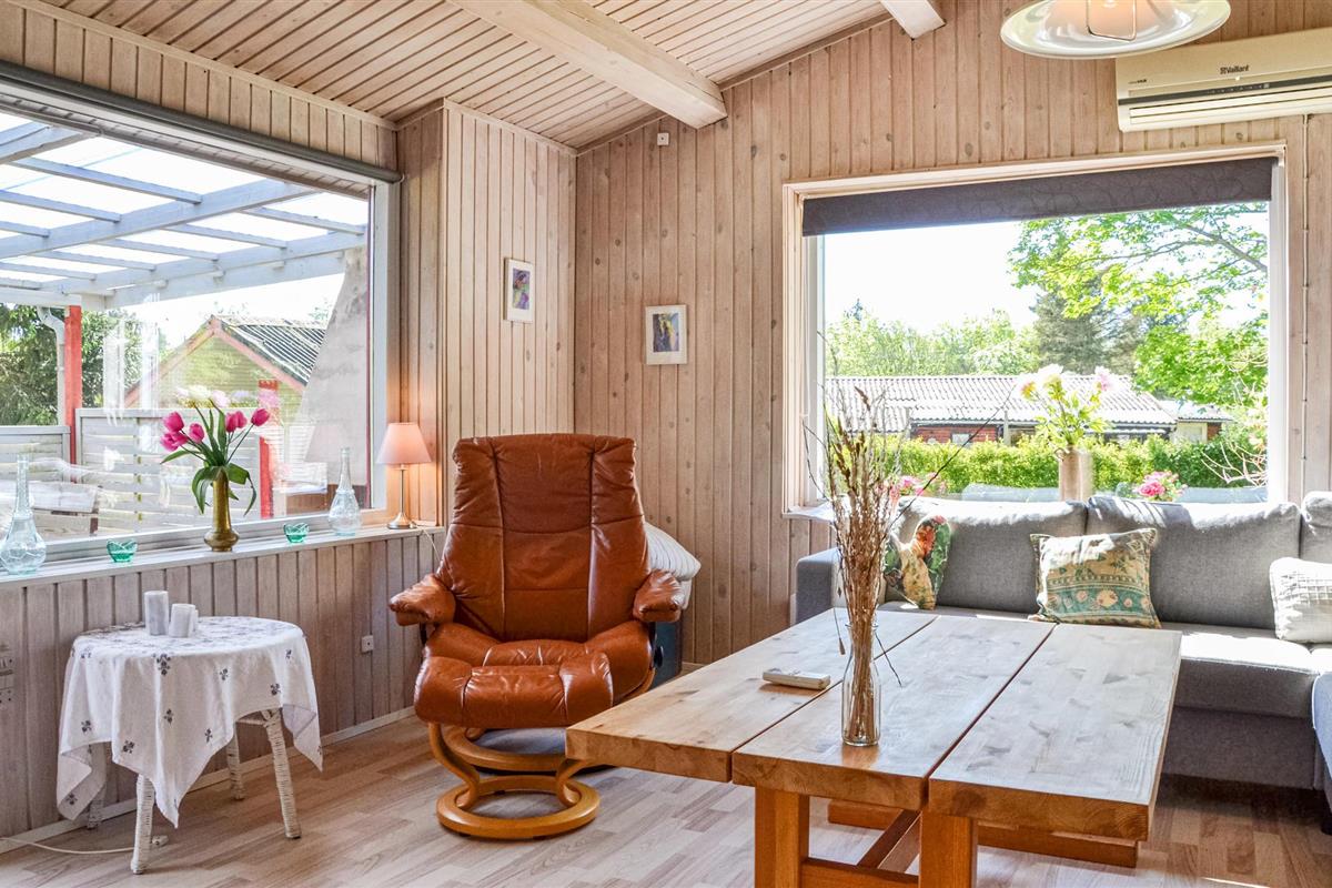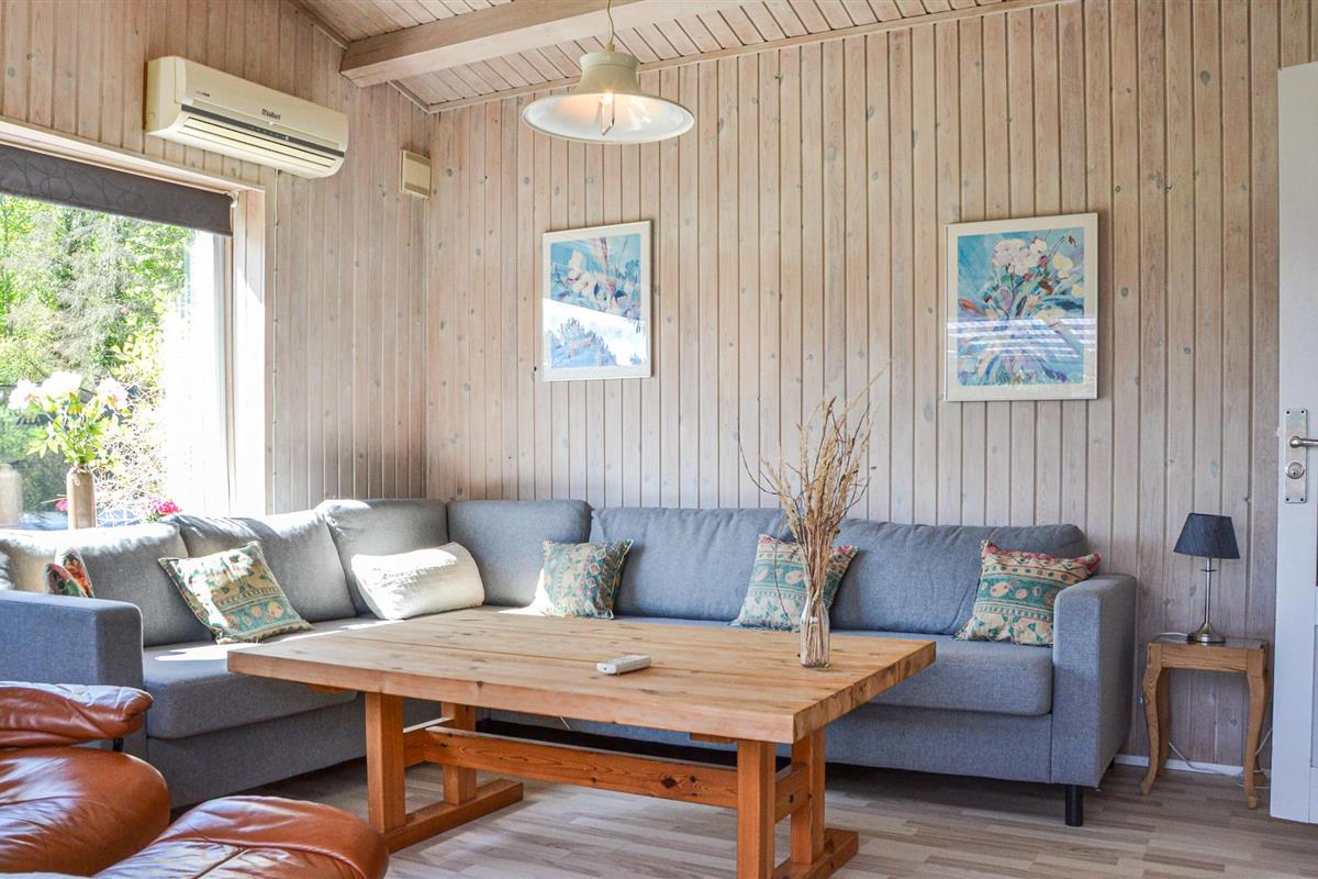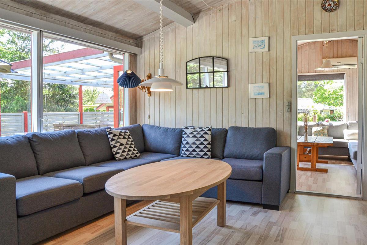 Bij het huisje vindt u heerlijke terrasjes om te zonnen en te barbecueën. s Avonds kunt u zelfs buiten de open haard aansteken en genieten van het comfort van de buitenlucht. Het terrein is 1700 m² groot en voorzien van een zandbak, schommel, speelhuisje, trampoline en een croquetspel. Om te vissen kunt u naar het put & take meer Løgtvedgård en met een beetje geluk een goede vangst doen.