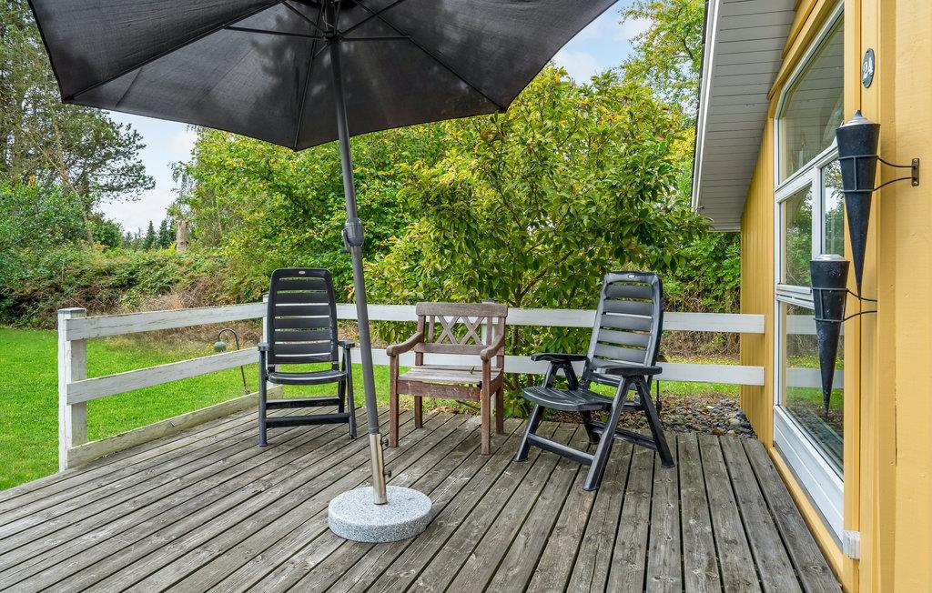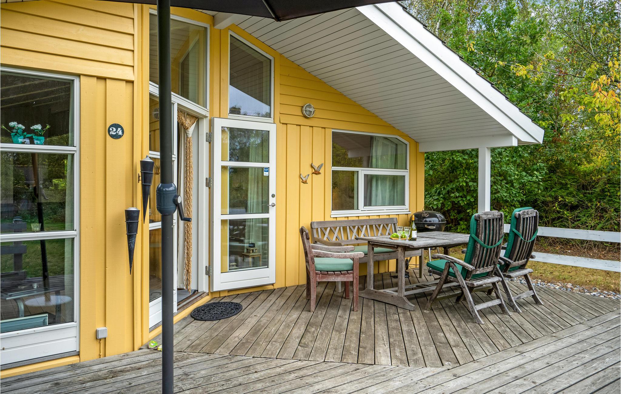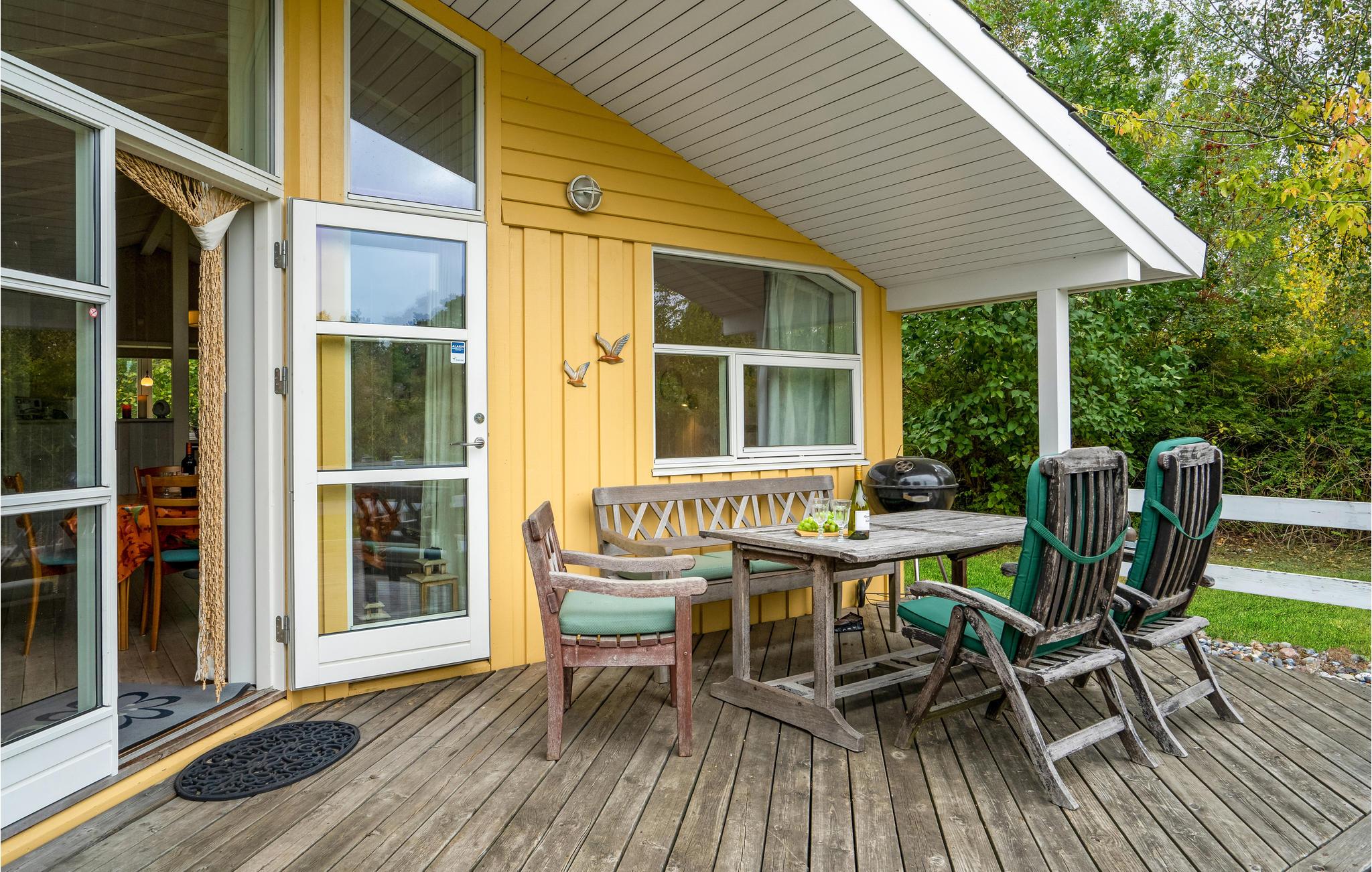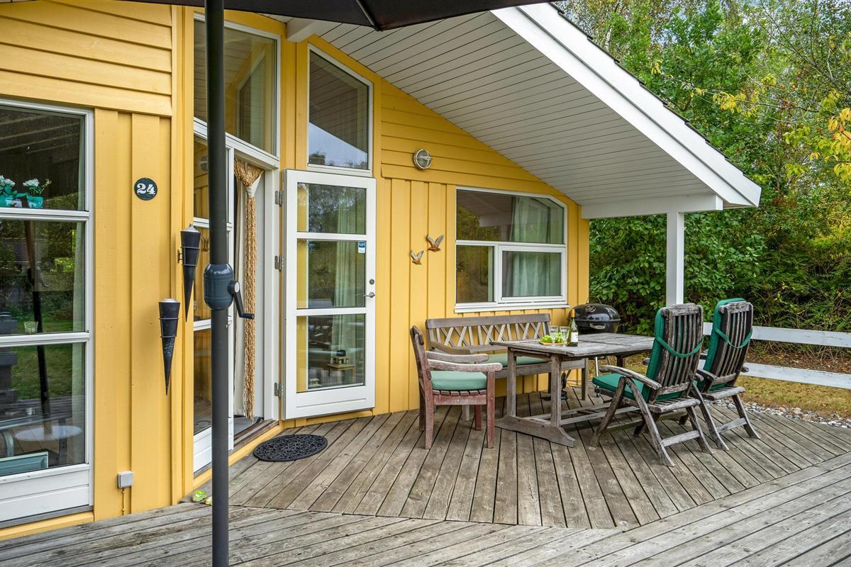 In de woonkamer vindt u de houtkachel en een alkoof. Op het gedeeltelijk overdekte terras geniet u van veel zon en frisse lucht en kunt u 's avonds barbecueën. Het huis ligt op een afgelegen natuurgrondstuk en biedt een rustige sfeer.