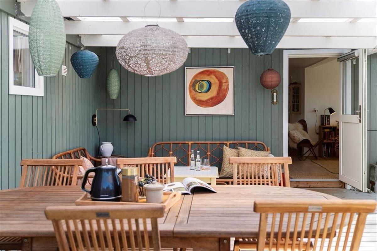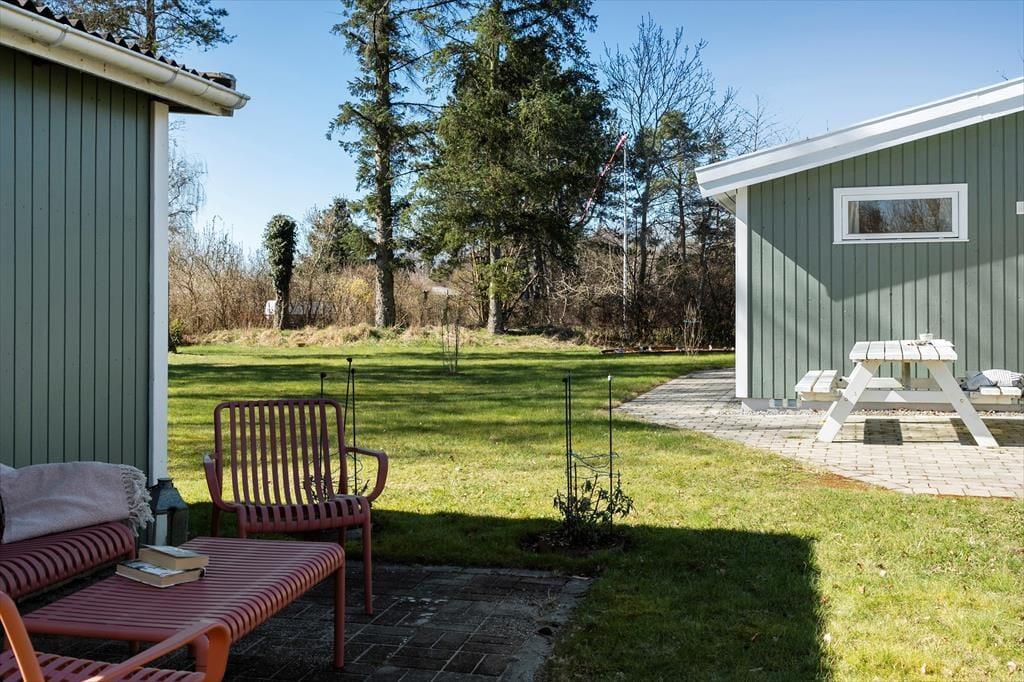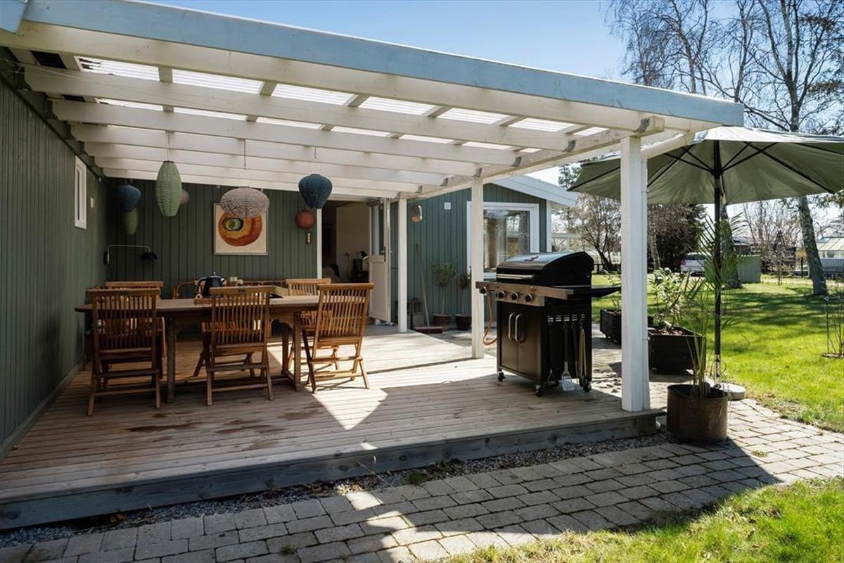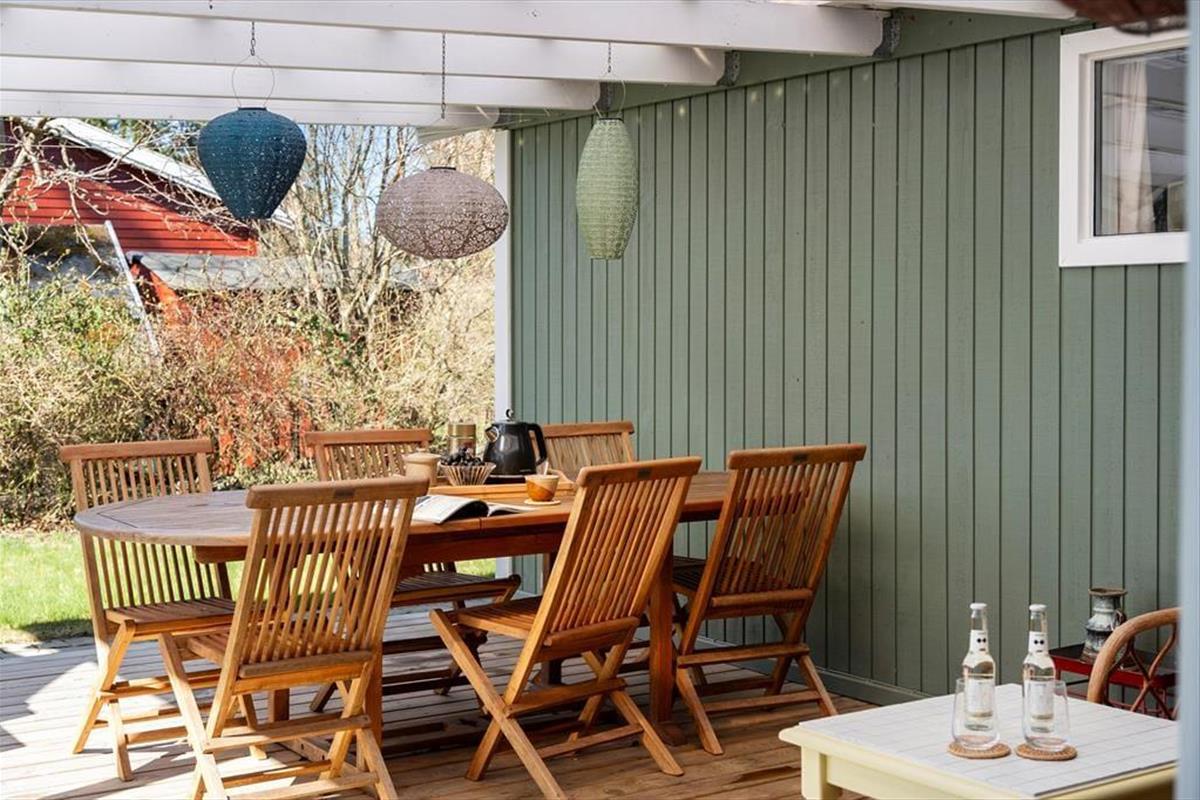 Genieße das Leben im Freien: Das Haus liegt auf einem großen Grundstück am Ende einer ruhigen, geschlossenen Straße in ungestörter Umgebung. Vom Wohnzimmer aus gelangst du auf die gemütliche, überdachte Terrasse, die Schutz vor Wind bietet – ideal für einen entspannten Grillabend mit der Familie. Rund um das Haus gibt es mehrere Sitzgelegenheiten, wo du die umliegende Natur genießen und vollkommen abschalten kannst.