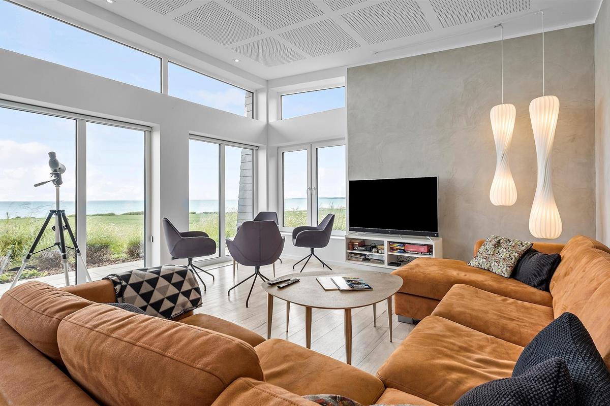 Met een prachtig uitzicht op Jammerland Bay verwelkomt dit moderne vakantiehuis je met geselecteerde luxe.