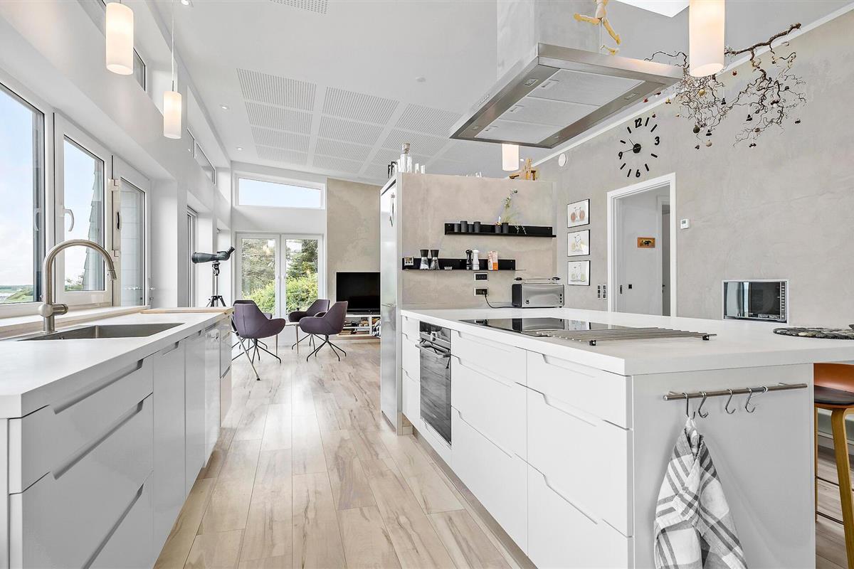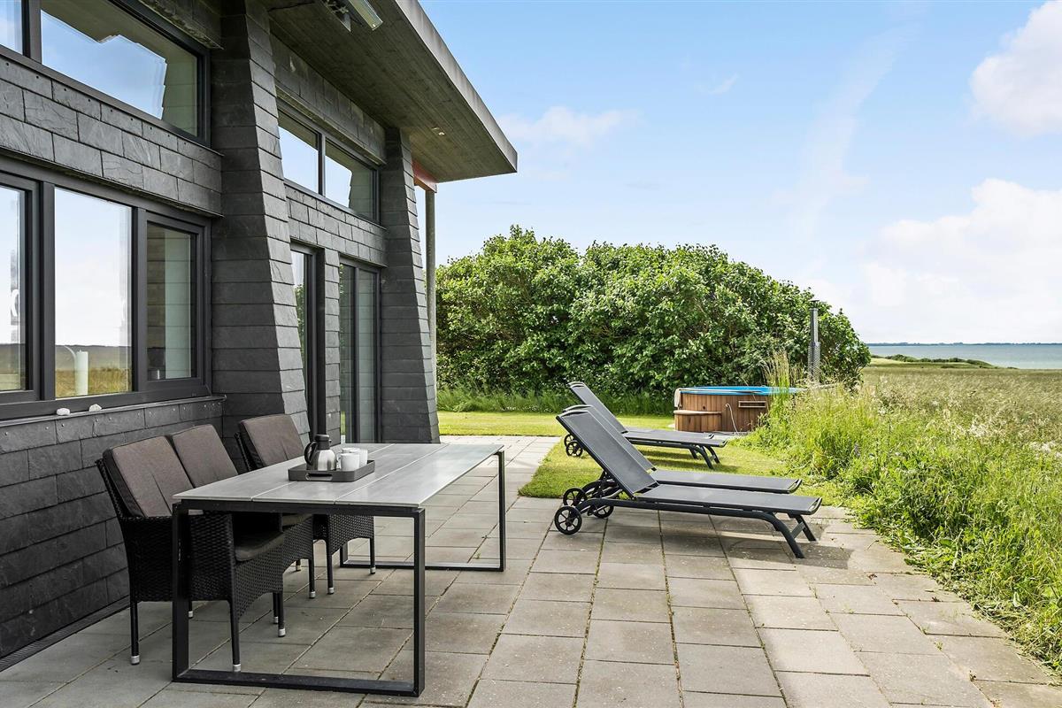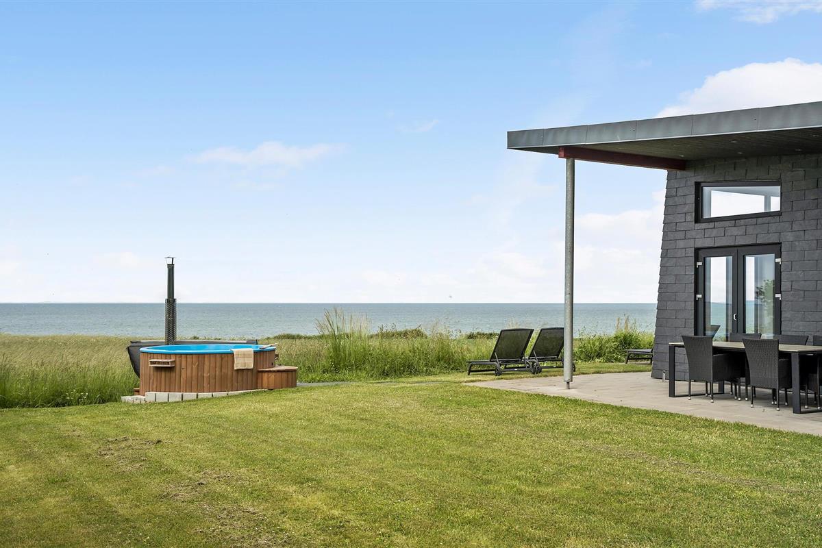 Modern vakantiehuis met panoramisch uitzicht op Jammerland Bay en luxe wellnessfaciliteiten.