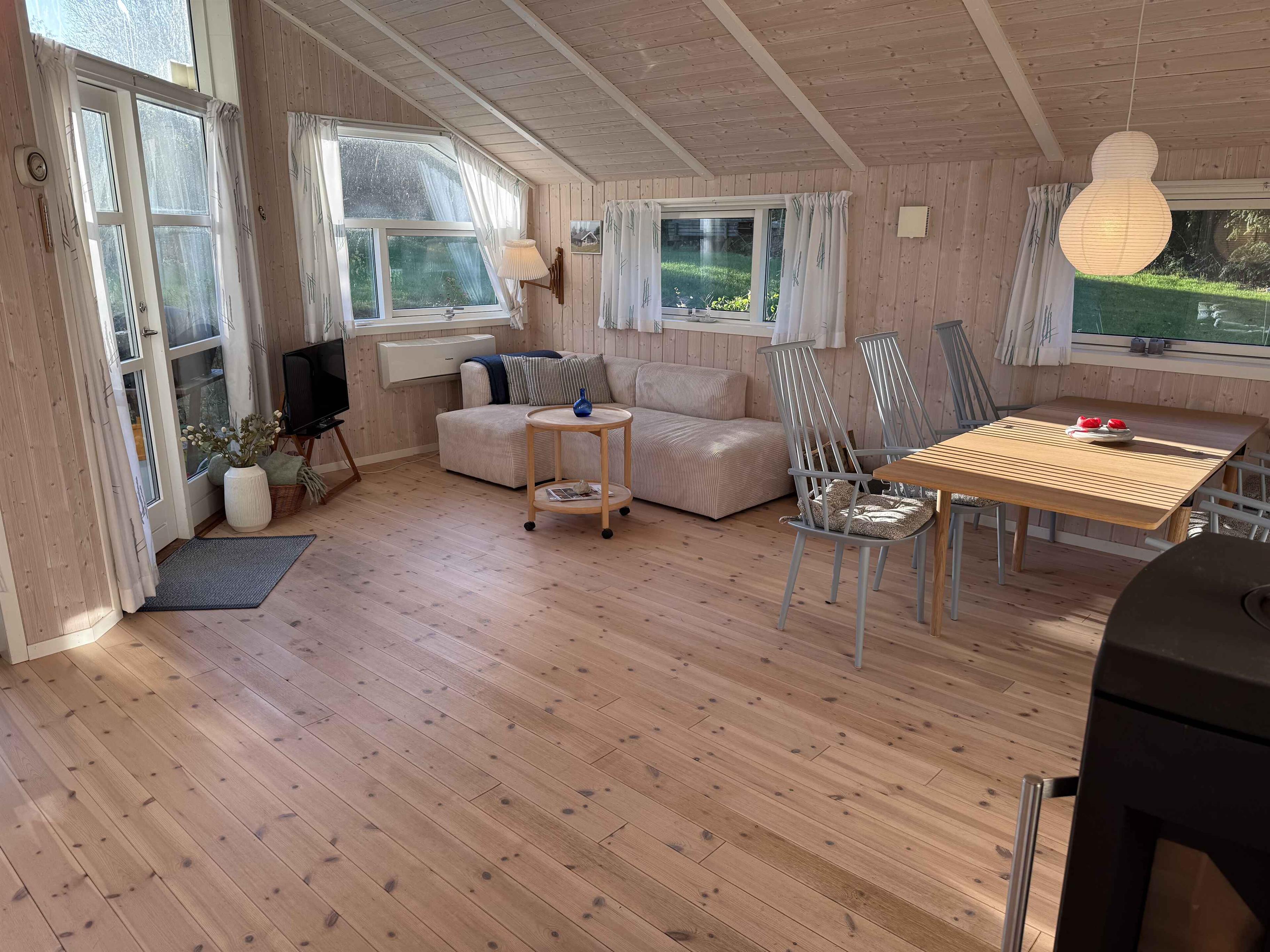 Welcome to our Summer House in Røsnæs ???? The summer house was built in 2003 and is full of charm and coziness. The heart of the house is the bright and spacious living room with vaulted ceilings, large windows, and access to a small loft. There is plenty of room here for both relaxation and shared meals. The living room is furnished with a dining table, sofa, and a comfortable armchair. The house has two bedrooms. One is furnished with a double bed, while the other has two single beds. The kitchen is fully equipped with everything you need for cooking—in addition to plenty of tableware, there is also a dishwasher, a coffee machine, and a stand mixer. Outside, you will find a lovely terrace with both a gas grill and a cozy outdoor dining area with a table and six chairs—perfect for summer evenings with good food and a relaxed atmosphere. During the winter, the furniture is covered by a tarp, as seen in the pictures, but the gas grill can still be used. In the colder months, the wood-burning stove or the fan heater ensures you can easily stay warm and create a cozy atmosphere after a long day out in nature. The Area ?? The summer house is located in Røsnæs Strandpark—a small, quiet holiday home area on the northern side of the peninsula. Here, you are a short distance from nature, water, and pleasant local experiences. There is a Min Købmand (local grocery store) a few minutes' drive from the summer house, and there are also many shopping opportunities in Kalundborg. The summer house is only 350 meters from a charming beach. In the summer, you can swim from the bathing jetty or use the nearby football fields, while the winter offers quiet walks along the water and beautiful viewpoints from the benches along the coast. Røsnæs offers many experiences: - A short drive from the house is Røsnæs Lighthouse, where you can buy an ice cream, climb the tower, and enjoy a breathtaking view of the water and the landscape. - Kalundborg Golf Club has an 18-hole course just a 5-minute drive from the house. - The Røsnæs Rundt hiking route takes you around Røsnæs, and the path runs right near the summer house, making it easy to "step onto" the route. - Røsnæs is home to the 5 largest wineries in Denmark, several of which offer tastings of top-class Danish wine. - Røsnæs is part of Denmark's Nature Canon (Naturkanon) alongside places like Råbjerg Mile and Møns Klint. The justification from the Nature Agency is as follows: "Once you have been here, you know that it is not at all necessary to travel south or north of the country's borders to find your zen in nature. Røsnæs offers overwhelming and quite dramatic nature." - Furthermore, it is possible to experience wild horses, catch sea trout from the coast, and much, much more. About Us ?? We are a couple based in Copenhagen. We love going to the summer house when we need to escape the pace of the city and get out into nature and tranquility. Emil has visited Røsnæs since childhood, so it felt natural for us to find our own place right here. We hope you will take good care of the house and enjoy your time in Røsnæs as much as we do. Kind regards, Alberte and Emil