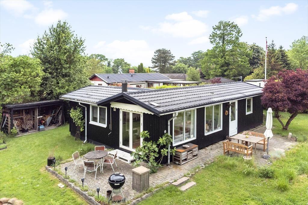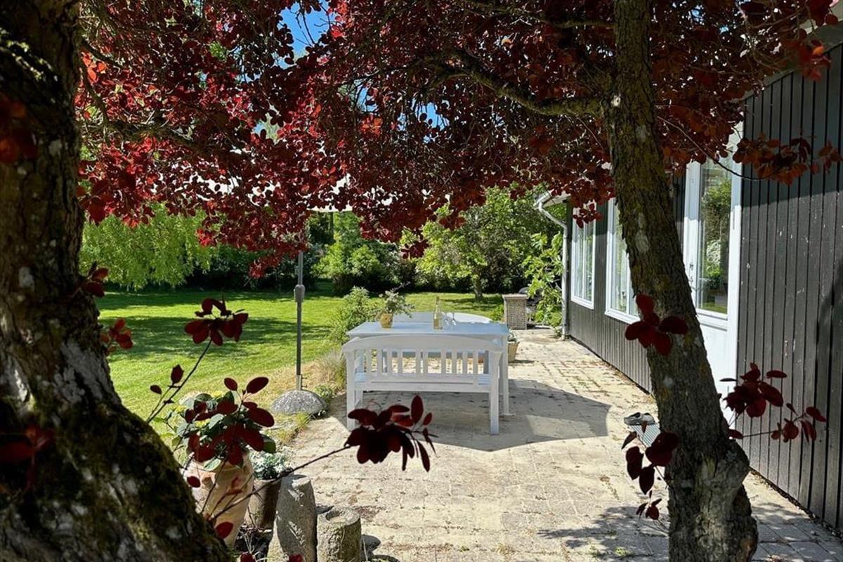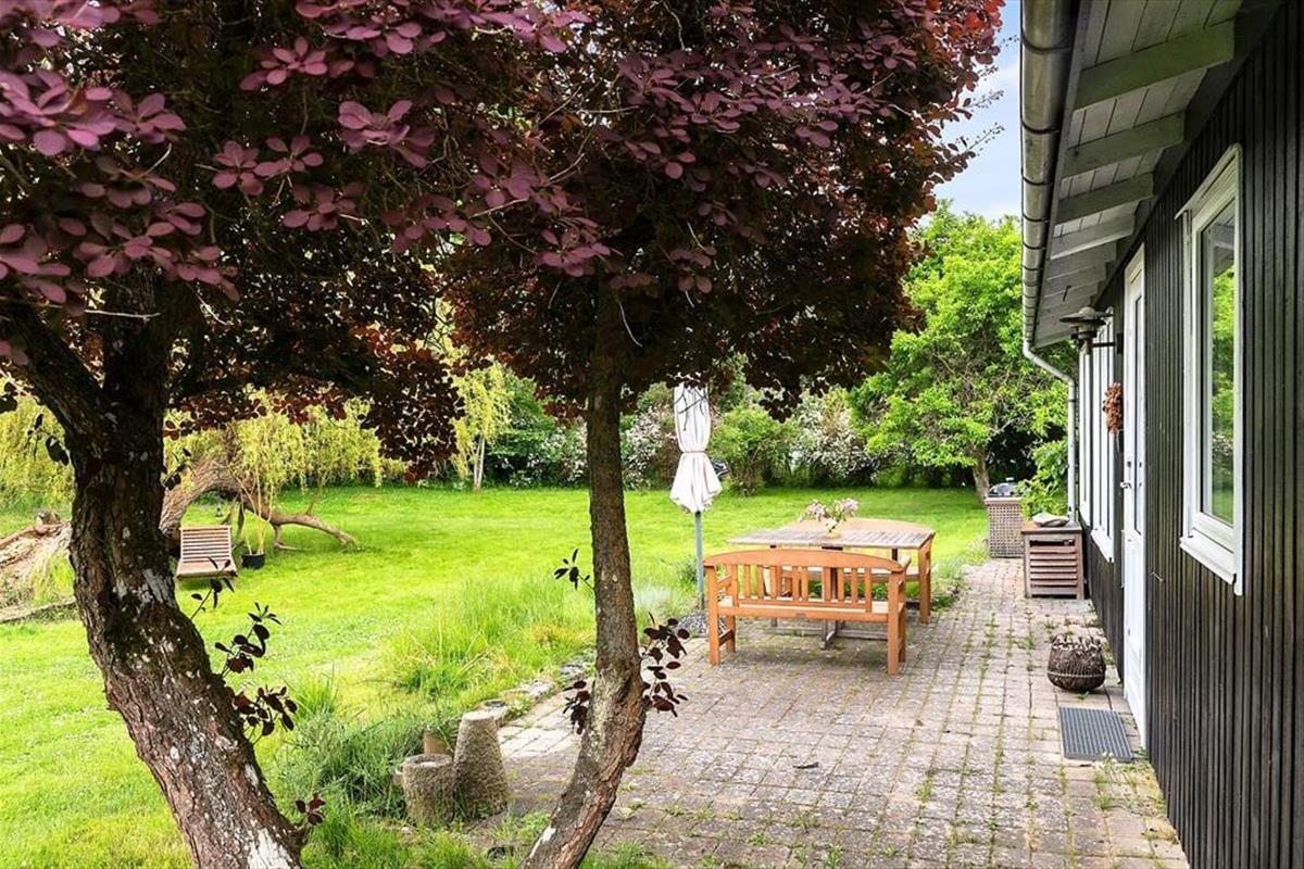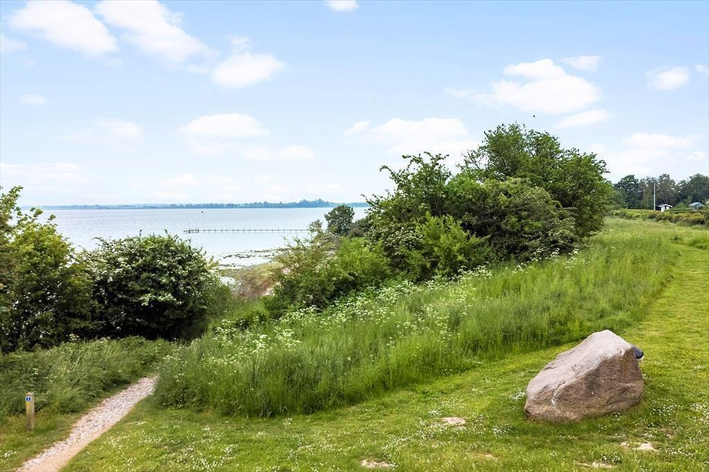 Das Sommerhaus ist von einem schönen großen Garten mit Bäumen umgeben und verfügt über mehrere gemütliche Terrassen. Hier können Sie die warmen Tage und Abende genießen. Im Garten kann man schamlos sein und die Zeit des Beisammenseins bei der ersten Mahlzeit des Tages genießen. Hier finden Sie Raum für Gemütlichkeit, Entspannung und Naturerlebnisse und mit etwas Glück erleben Sie vorbeiziehende Rehe im Garten. Vom Haus aus haben Sie nur 130 Meter bis zu einem kleinen Strand, den Sie über eine neue Treppe erreichen.