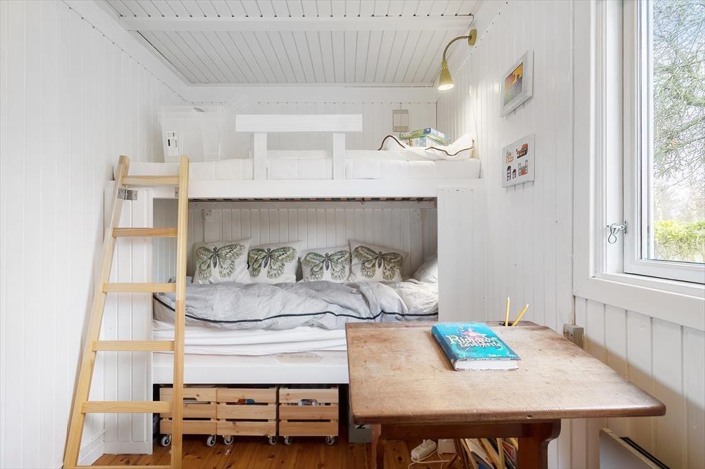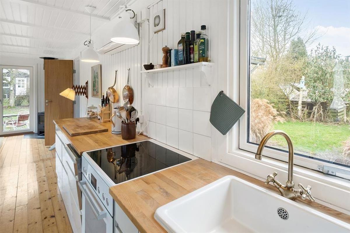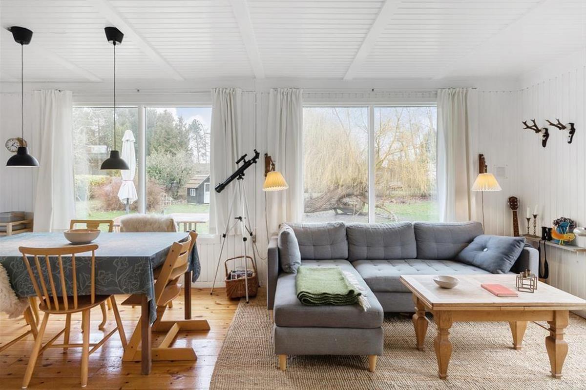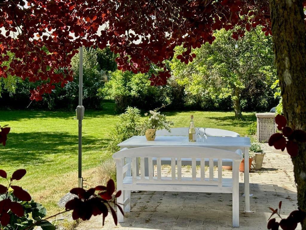 Das Sommerhaus ist von einem schönen großen Garten mit Bäumen umgeben und verfügt über mehrere gemütliche Terrassen. Hier können Sie die warmen Tage und Abende genießen. Im Garten kann man schamlos sein und die Zeit des Beisammenseins bei der ersten Mahlzeit des Tages genießen. Hier finden Sie Raum für Gemütlichkeit, Entspannung und Naturerlebnisse und mit etwas Glück erleben Sie vorbeiziehende Rehe im Garten. Vom Haus aus haben Sie nur 130 Meter bis zu einem kleinen Strand, den Sie über eine neue Treppe erreichen.