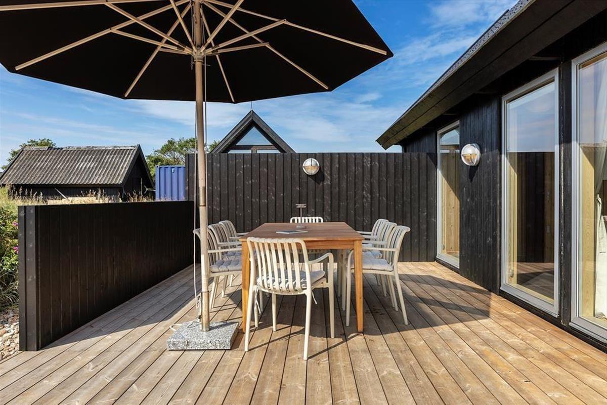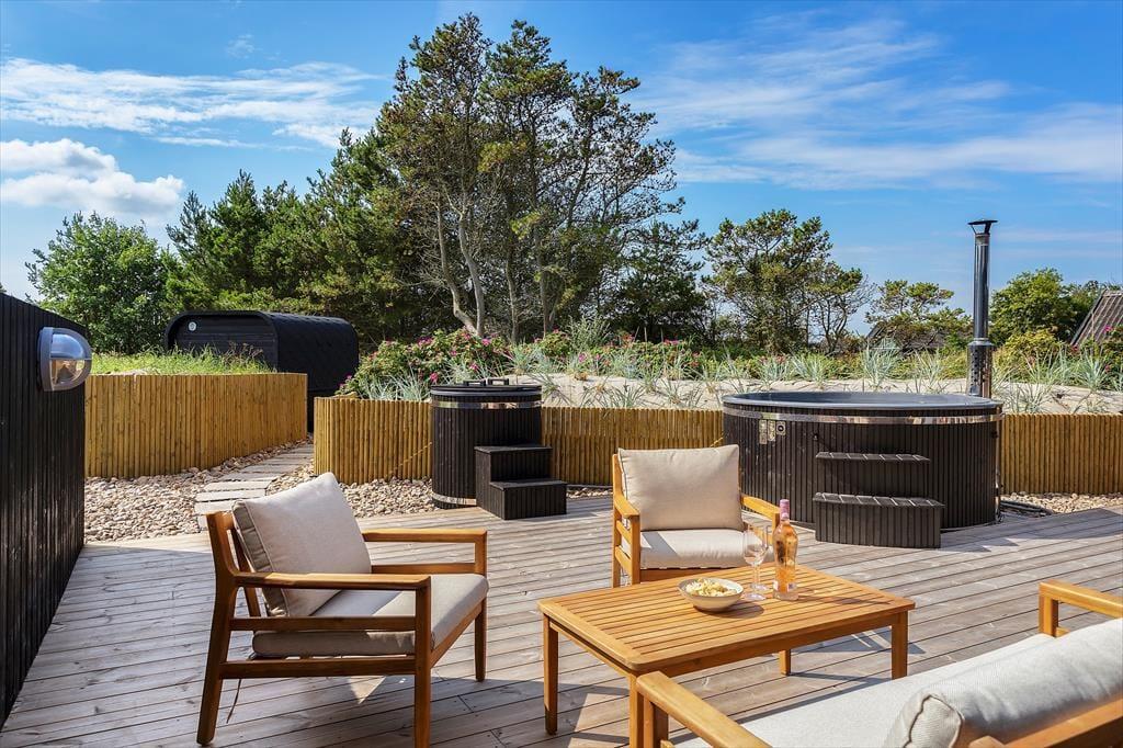 Das Ferienhaus liegt auf einem wunderschönen Naturgrundstück, umgeben von der wilden und unberührten Landschaft, für die Kandestederne bekannt ist. Auf der Terrasse können Sie die Ruhe genießen, den Vögeln lauschen und den Blick über die beeindruckende Natur schweifen lassen. Beginnen Sie den Tag mit einer Tasse Kaffee in der Morgensonne oder grillen Sie das Abendessen, während die Sonne langsam hinter den Dünen verschwindet. Die Umgebung lädt zu langen Spaziergängen durch die hügelige Dünenlandschaft ein, und die nahen Sandstrände bieten ideale Bedingungen für ein erfrischendes Bad.