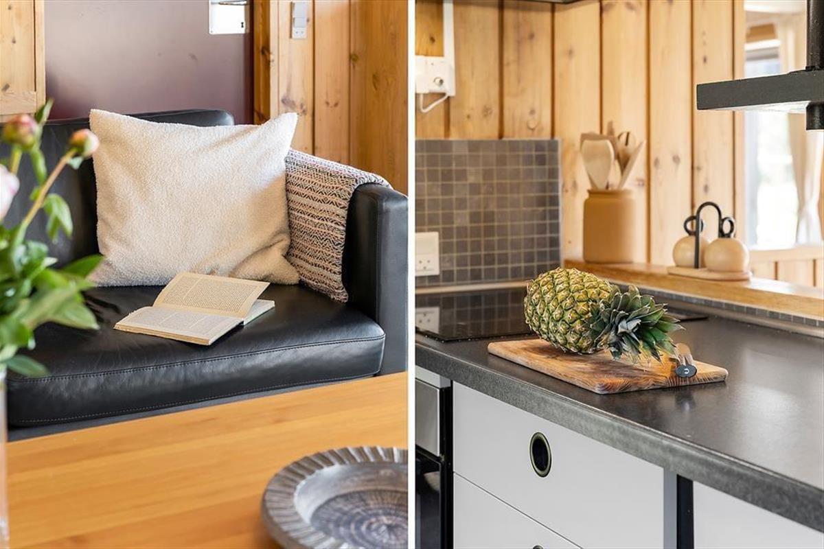 Beim Betreten des Hauses werden Sie von einer hellen und einladenden Atmosphäre empfangen, die mit ihren charmanten Details den perfekten Rahmen für einen erholsamen Urlaub schafft. Der offene Wohnbereich mit hohen Decken und großen Fenstern sorgt für viel Tageslicht und bringt die Farben der umliegenden Natur ins Haus. Im Wohnzimmer können Sie gemütliche Abende am Kamin verbringen oder mit einer heißen Tasse Kaffee und einem guten Buch auf dem Sofa entspannen. Die großzügige und gut ausgestattete Küche lädt dazu ein, köstliche Ferienmahlzeiten zuzubereiten und gemeinsam zu genießen.