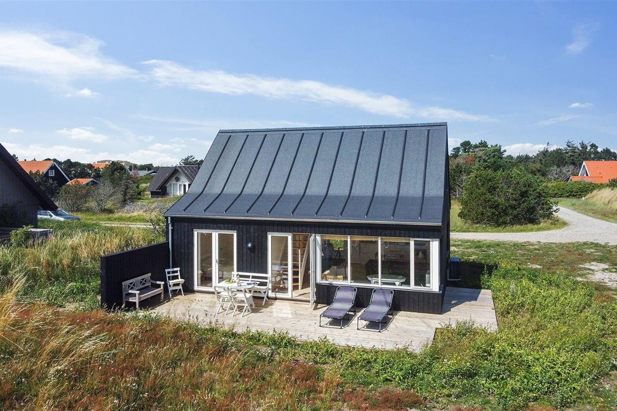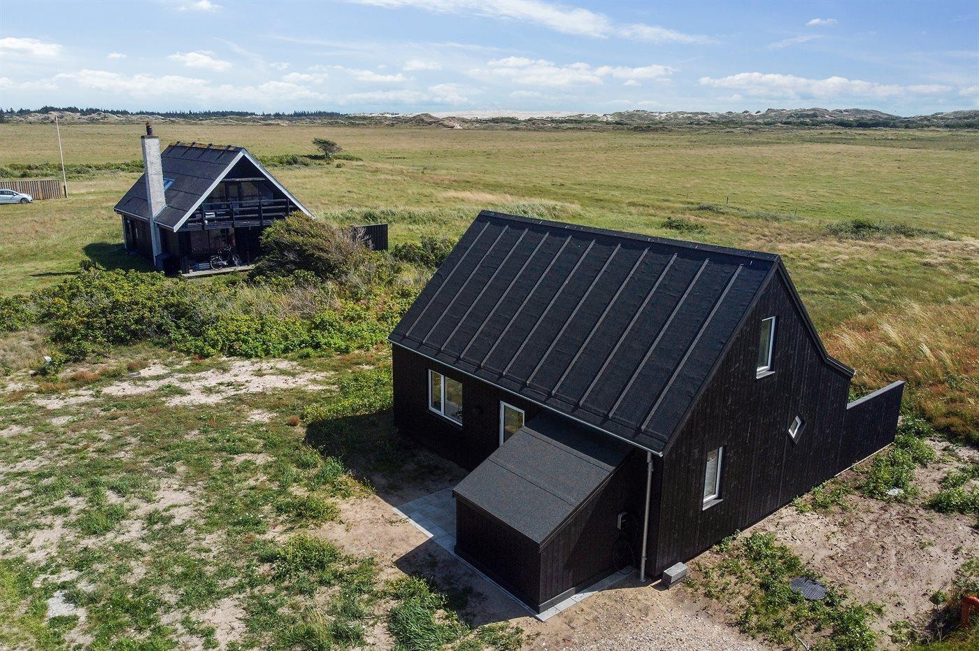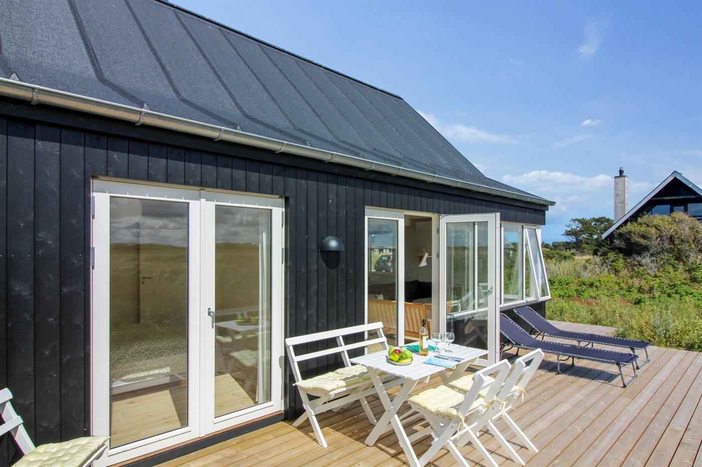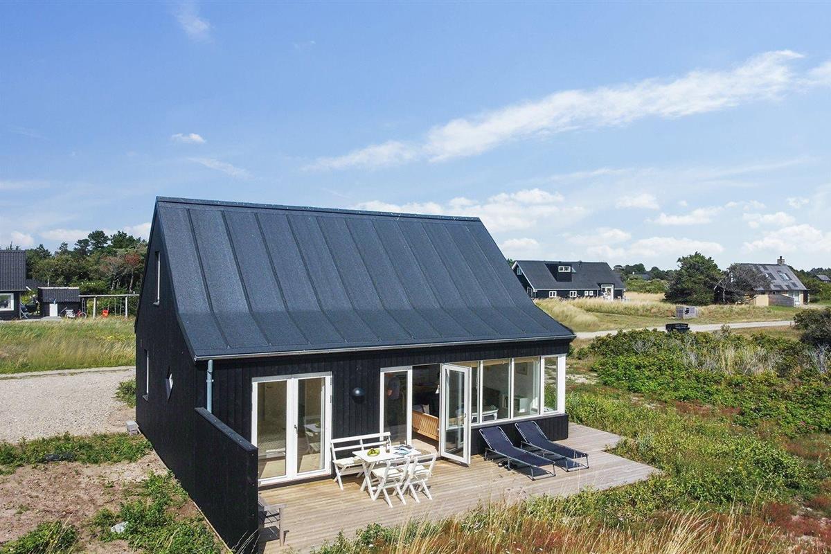 Modern en energiezuinig vakantiehuis in Skagen, vlakbij zee, met terras en laadpaal voor elektrische auto.
