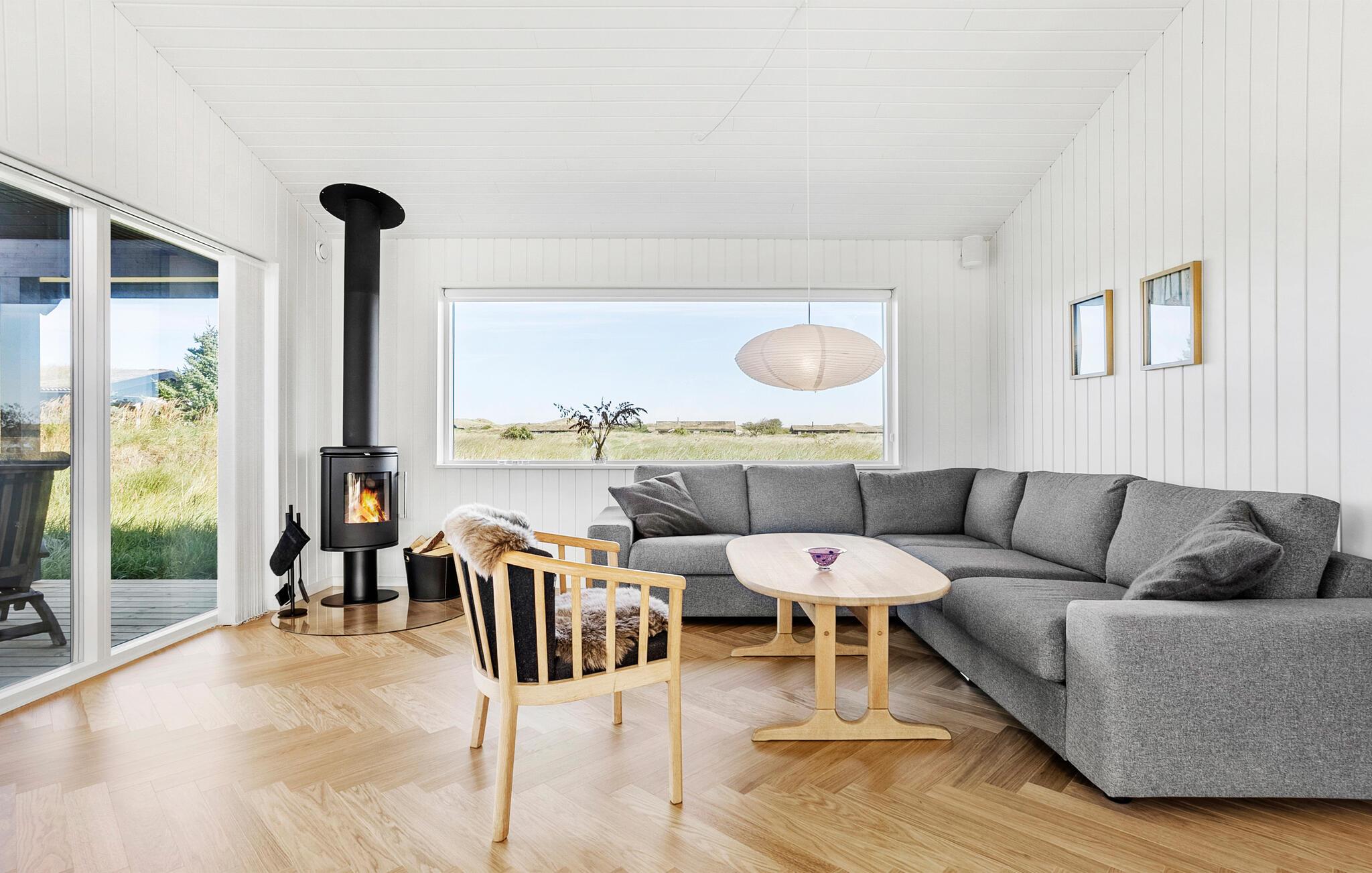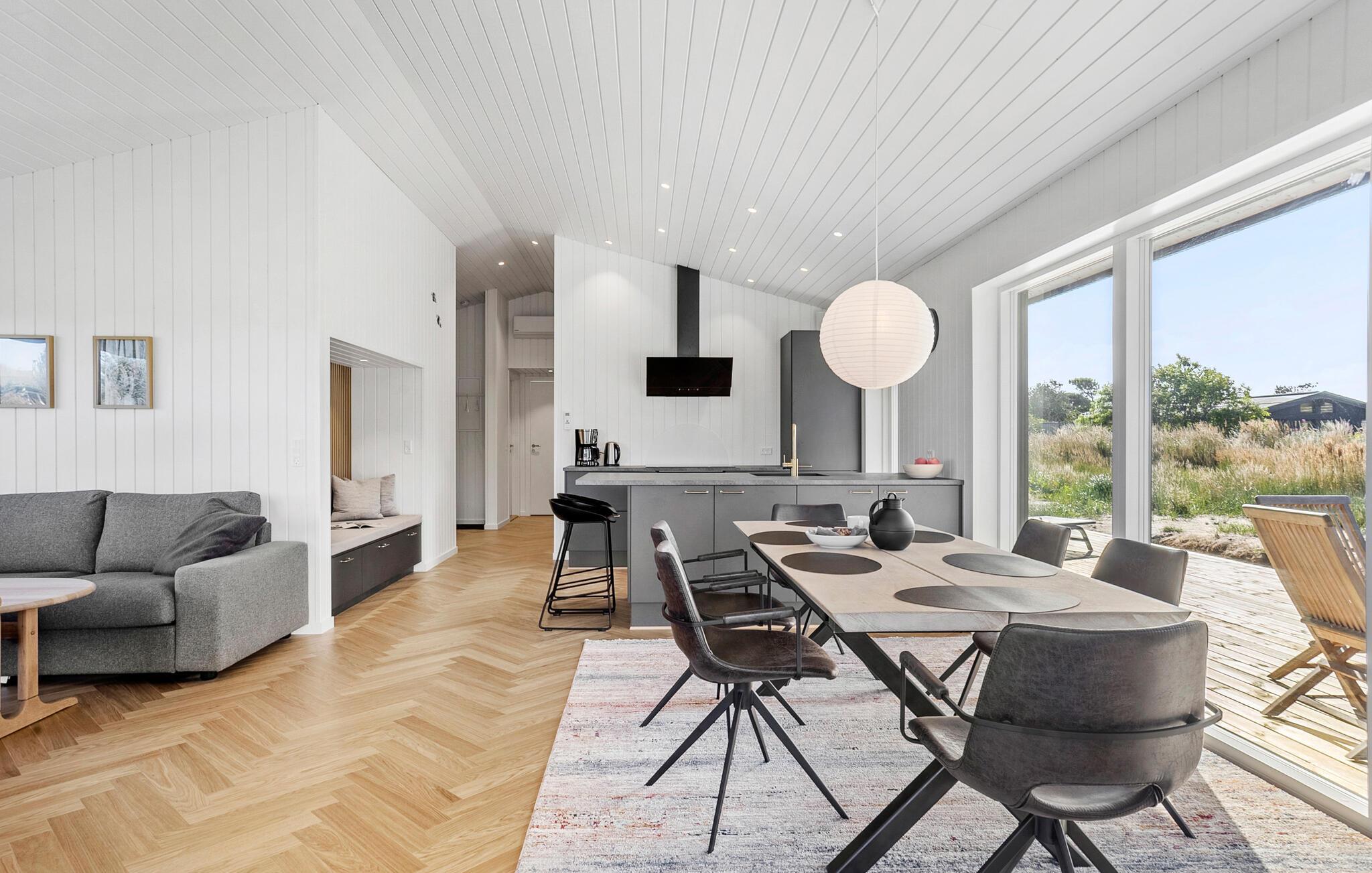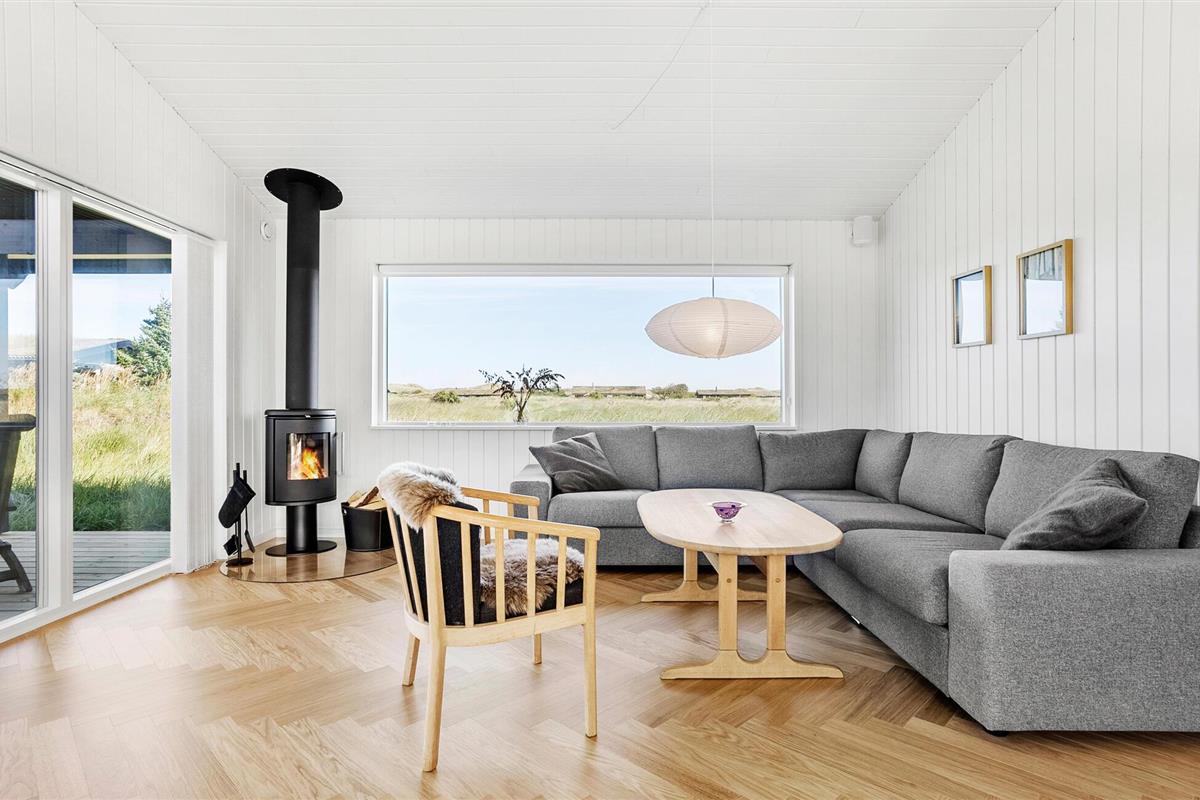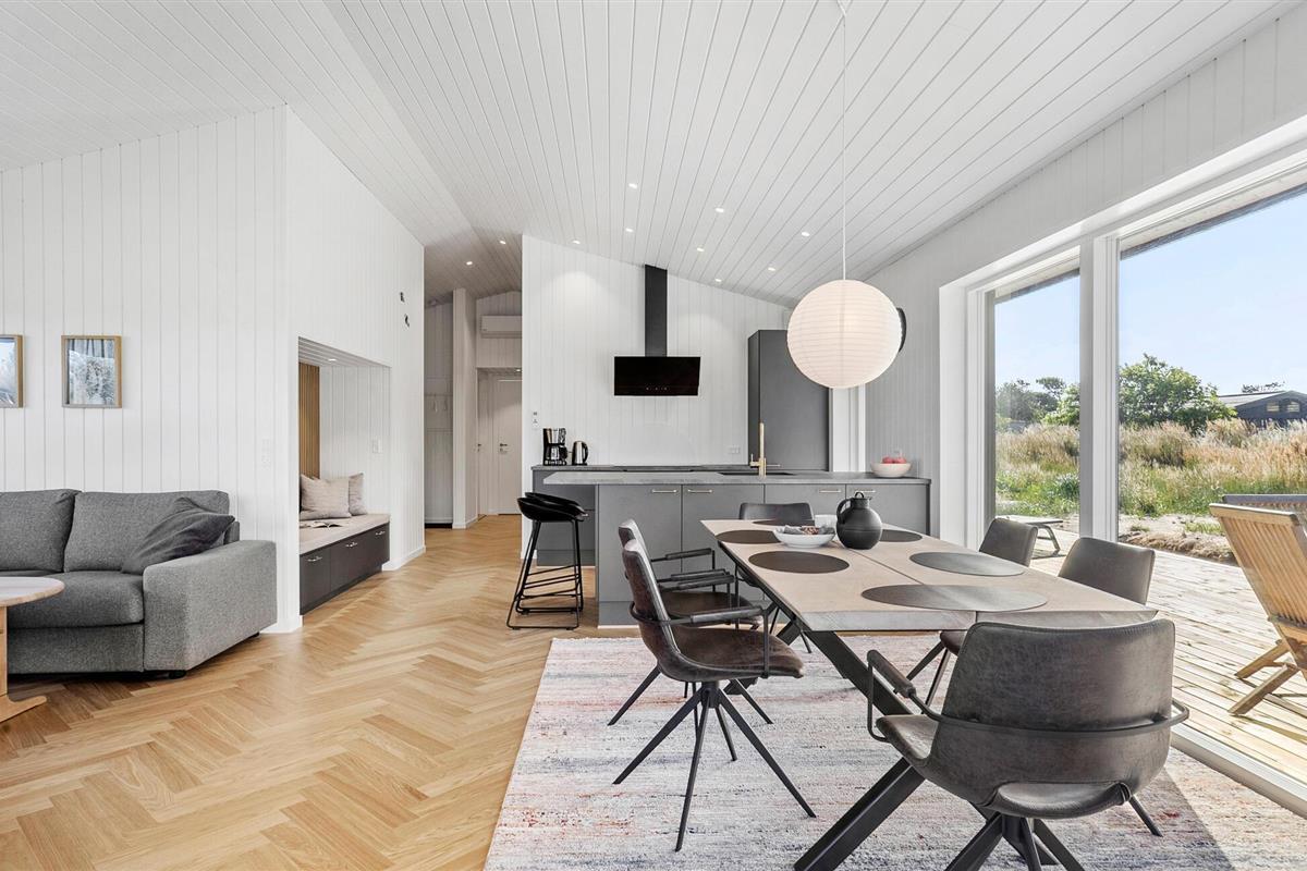 In dit moderne en comfortabele vakantiehuis vind je een licht en stijlvol interieur met veel ruimte voor vrienden of familie. Grote ramen zorgen voor veel natuurlijk licht in de smaakvol ingerichte kamers en bieden een idyllisch uitzicht op het schilderachtige duinlandschap. Geniet van gezellige kookavonden in de open keuken, plan je avonturen aan de uitnodigende eettafel en luister naar het fluiten van de wind terwijl je 's avonds ontspant op de bank en de houtkachel de kamer baadt in een warm licht.