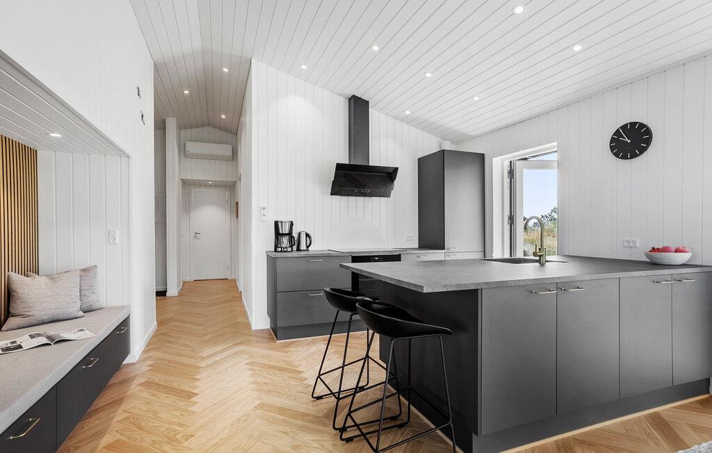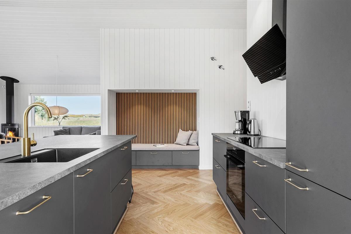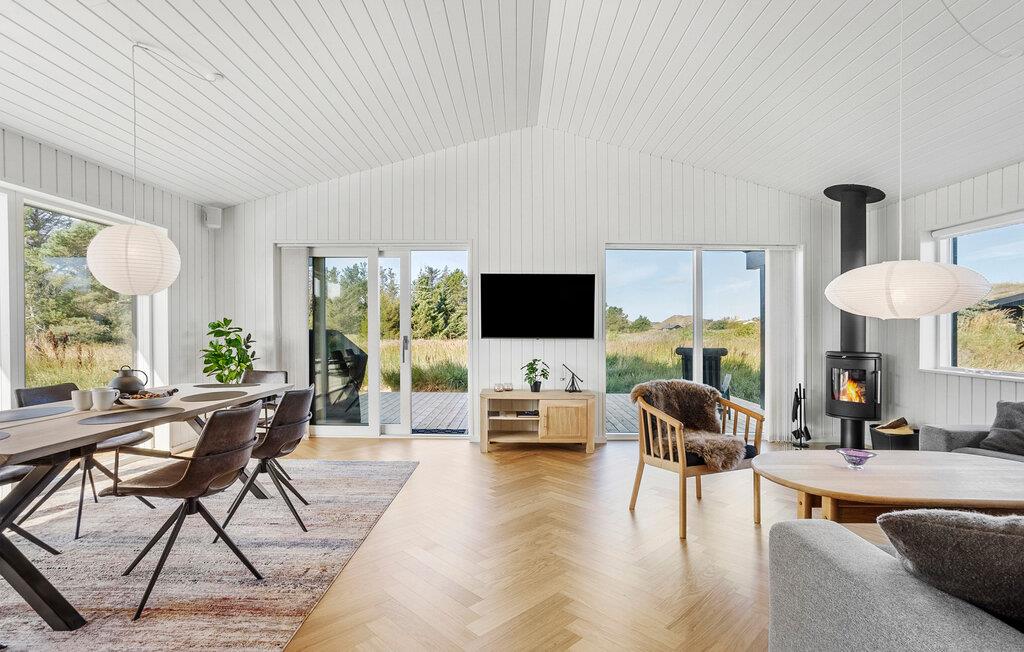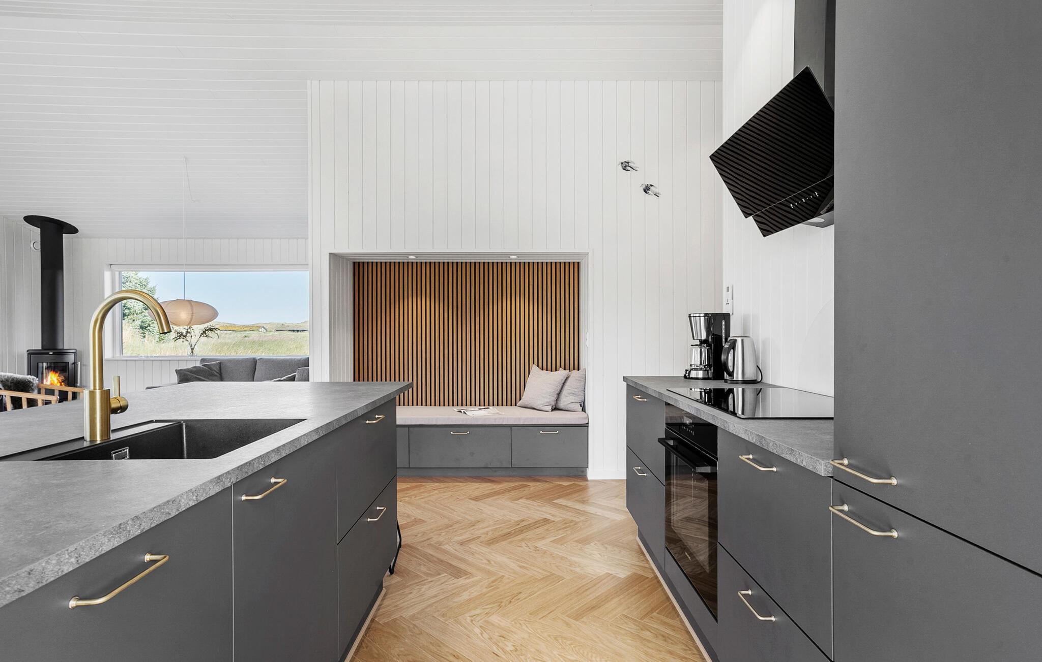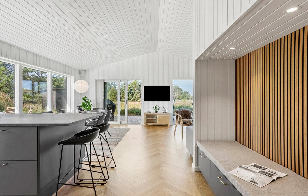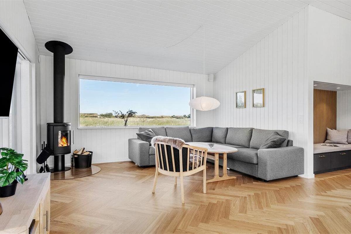 In dit moderne en comfortabele vakantiehuis vind je een licht en stijlvol interieur met veel ruimte voor vrienden of familie. Grote ramen zorgen voor veel natuurlijk licht in de smaakvol ingerichte kamers en bieden een idyllisch uitzicht op het schilderachtige duinlandschap. Geniet van gezellige kookavonden in de open keuken, plan je avonturen aan de uitnodigende eettafel en luister naar het fluiten van de wind terwijl je 's avonds ontspant op de bank en de houtkachel de kamer baadt in een warm licht.