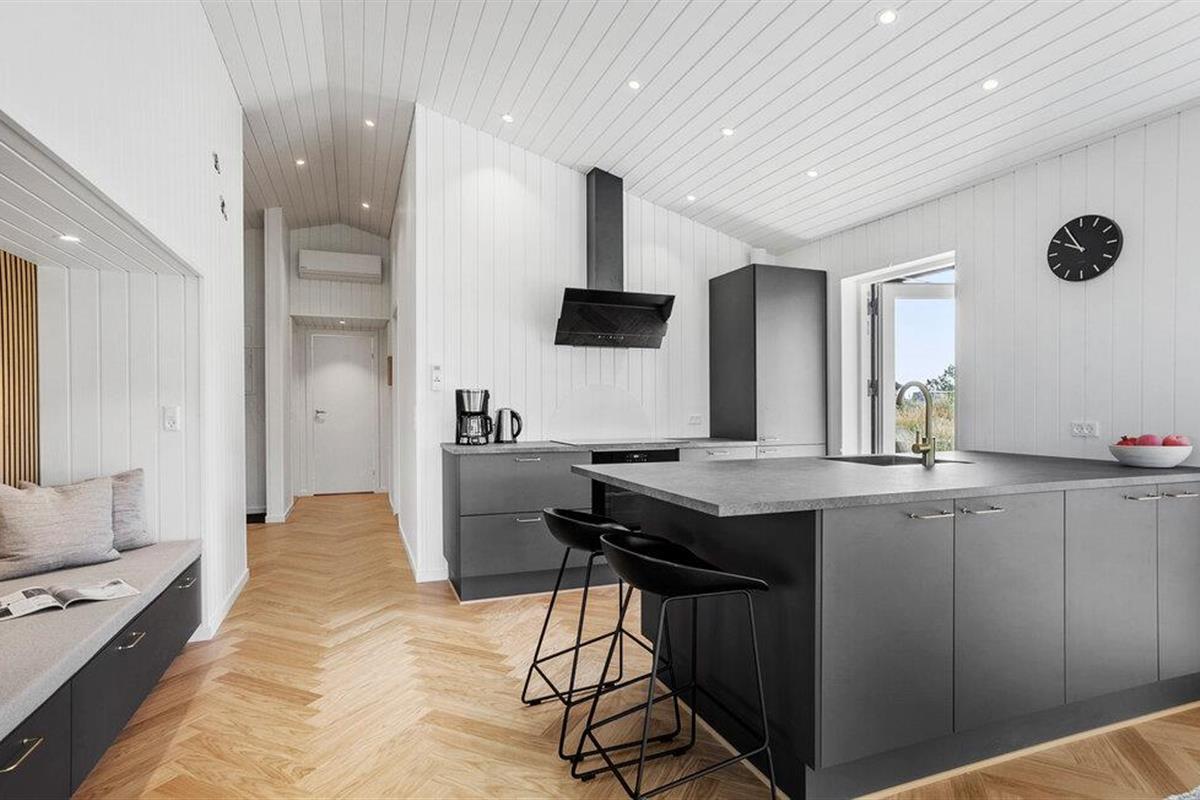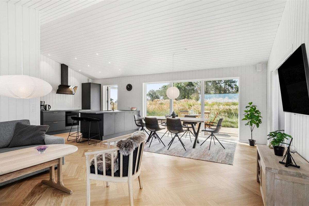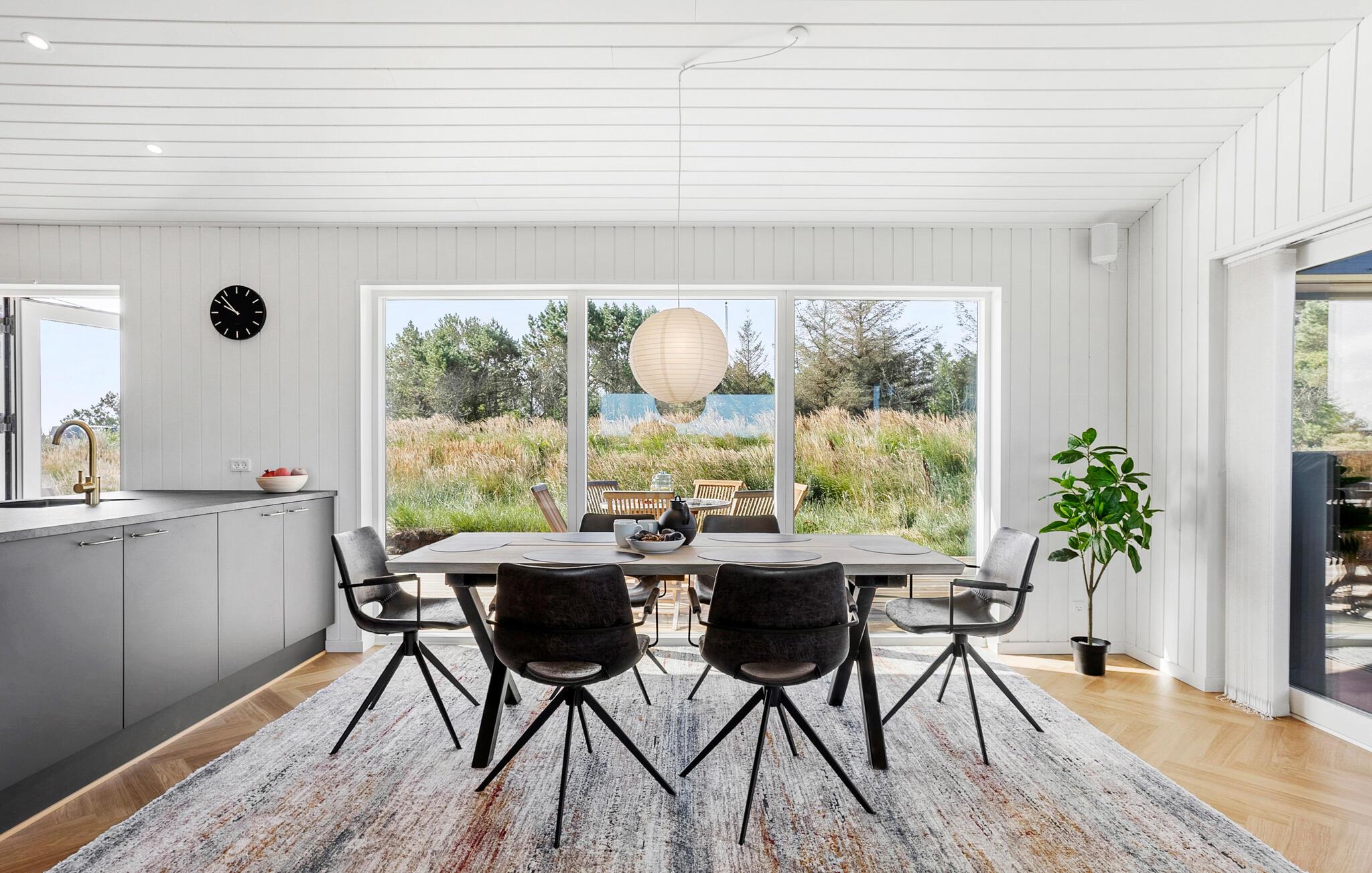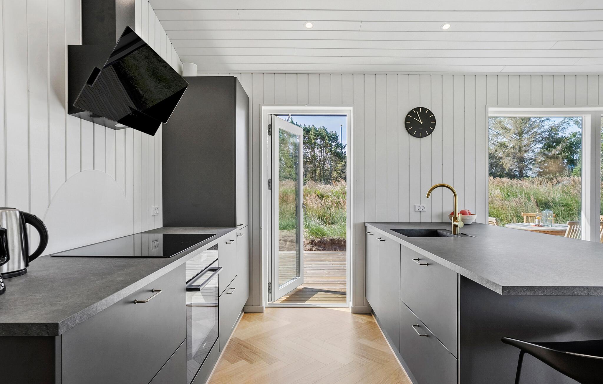 In dit moderne en comfortabele vakantiehuis vind je een licht en stijlvol interieur met veel ruimte voor vrienden of familie. Grote ramen zorgen voor veel natuurlijk licht in de smaakvol ingerichte kamers en bieden een idyllisch uitzicht op het schilderachtige duinlandschap. Geniet van gezellige kookavonden in de open keuken, plan je avonturen aan de uitnodigende eettafel en luister naar het fluiten van de wind terwijl je 's avonds ontspant op de bank en de houtkachel de kamer baadt in een warm licht.