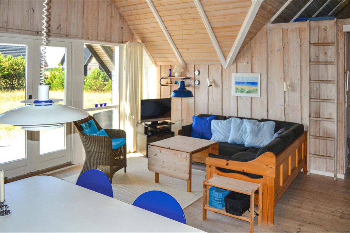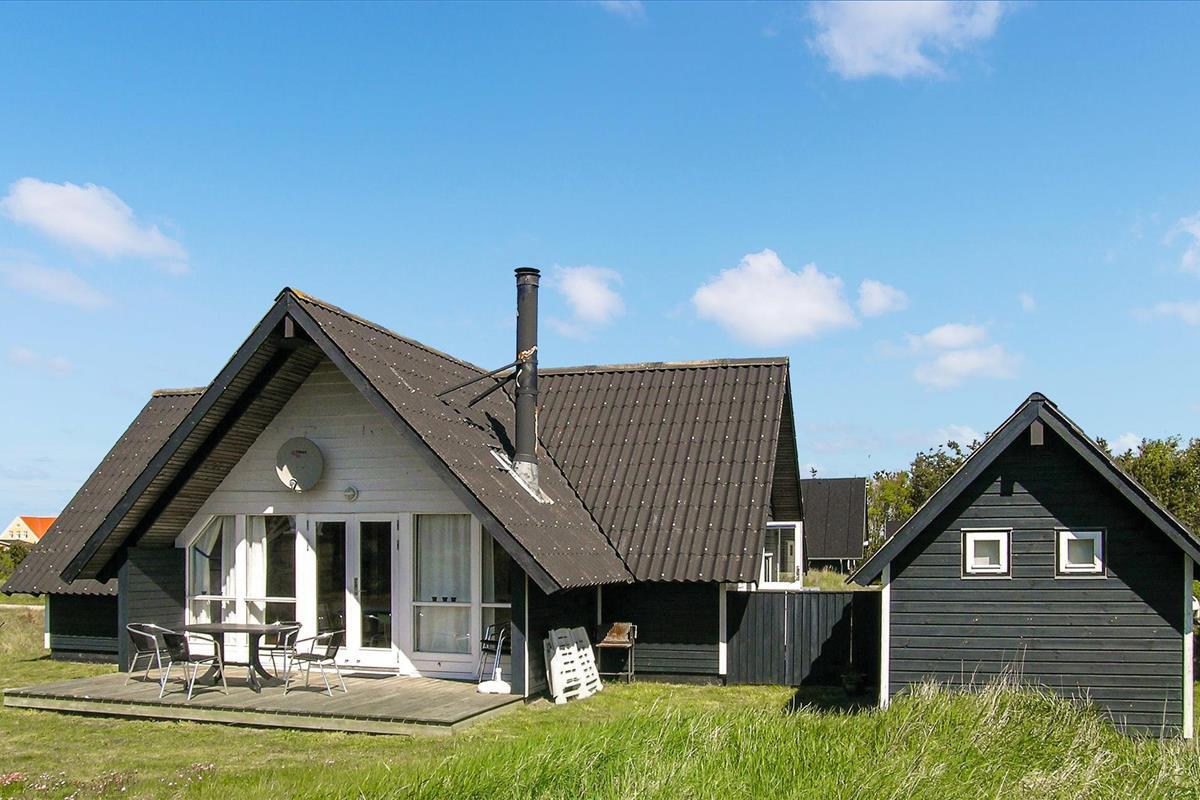 Ontdek dit stijlvolle vakantiehuis in Kandestederne, omgeven door de natuur en met een prachtig uitzicht op Råbjerg Mile.