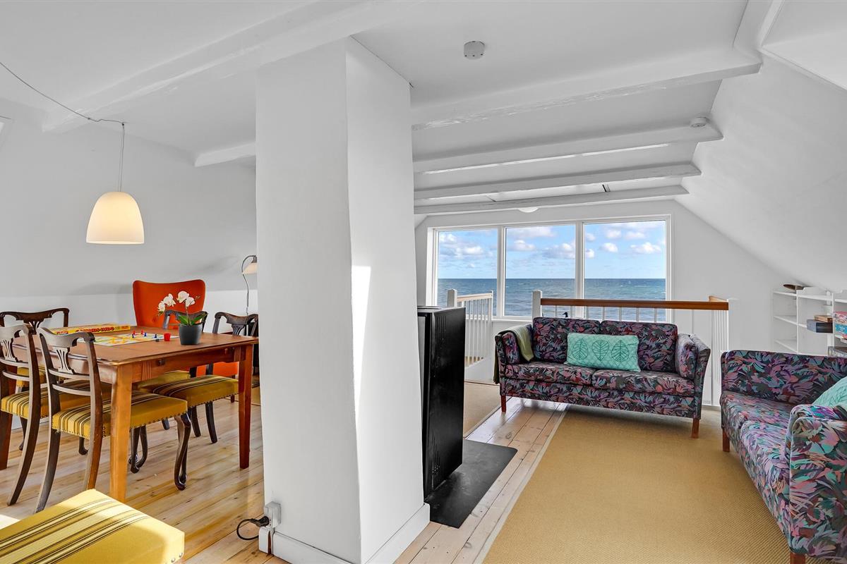 Schakel uit, laat je verwennen door de zee en geniet van onvergetelijke dagen op een toplocatie op een steenworp afstand van de zee. Het geluid van de zee, grote open ruimtes en comfortabel wonen wachten hier op je. Ontspan in het uitnodigende interieur, dat op twee niveaus veel ruimte biedt voor gezelligheid en ontspanning. Maak het jezelf gemakkelijk in de bovenste woonkamer voor het grote raam met panoramisch uitzicht. Lees een boek op de bank of laat je blik over de zee dwalen. De lange eettafel nodigt uit om samen te eten, terwijl de houtkachel voor gezellige warmte zorgt. In de mooie keuken kun je gemakkelijk je kooklepels tevoorschijn halen en je vakantiemaaltijden bereiden.
