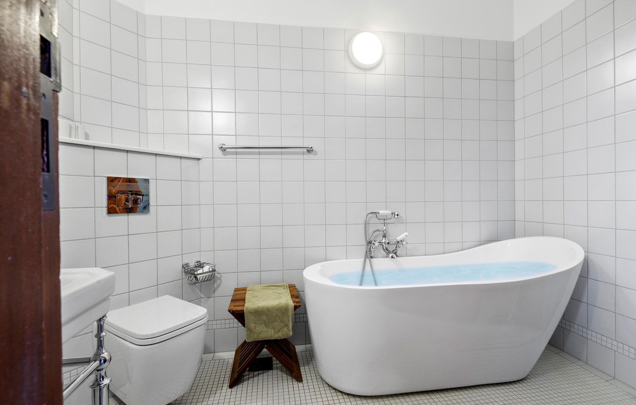 Badkamer (nr. 2) - Toilet: warm en koud water. Douche en ligbad