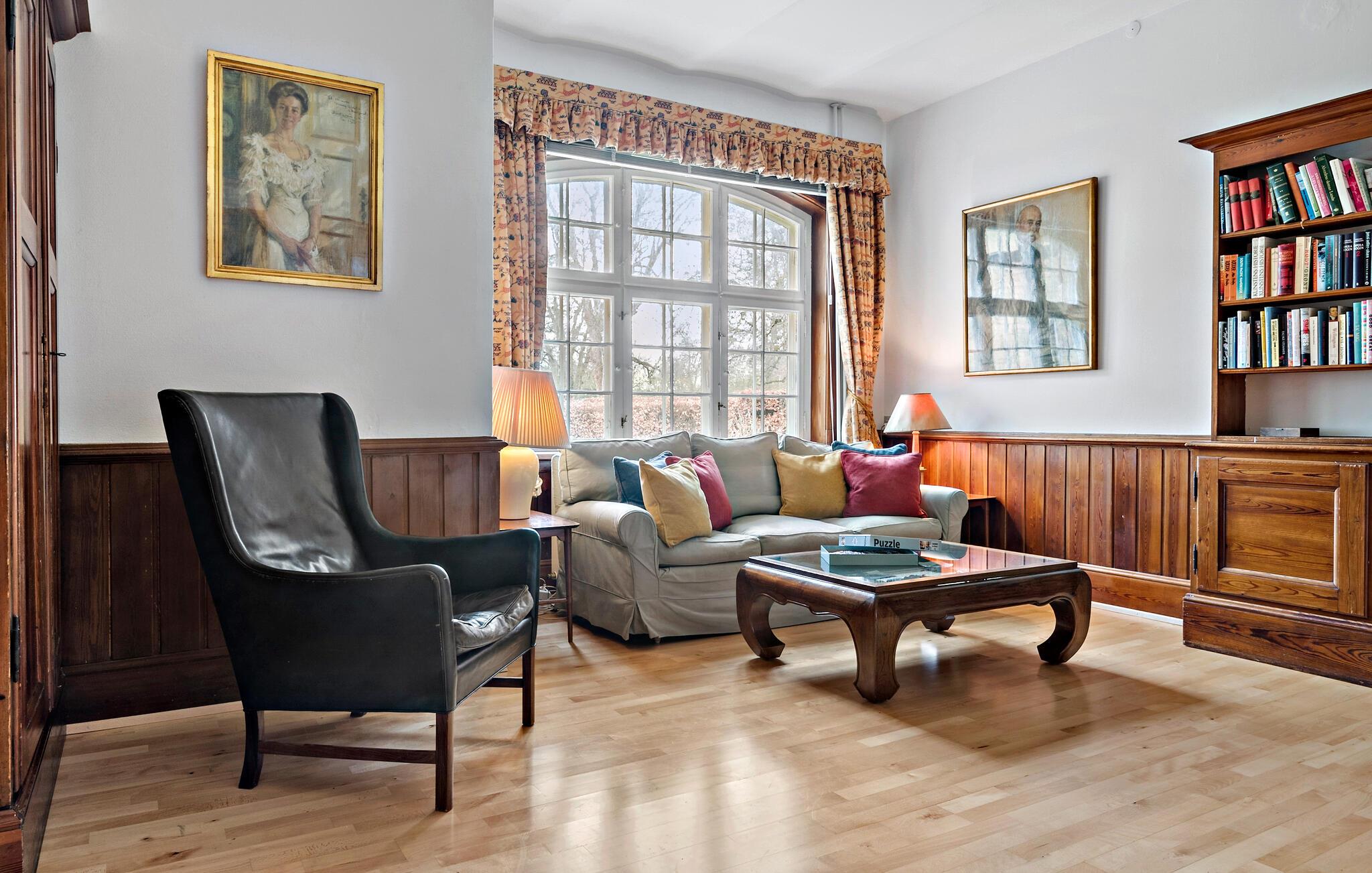 Ontdek dit statige vakantiehuis naast kasteel Gavnø met prachtig uitzicht en ruime kamers.