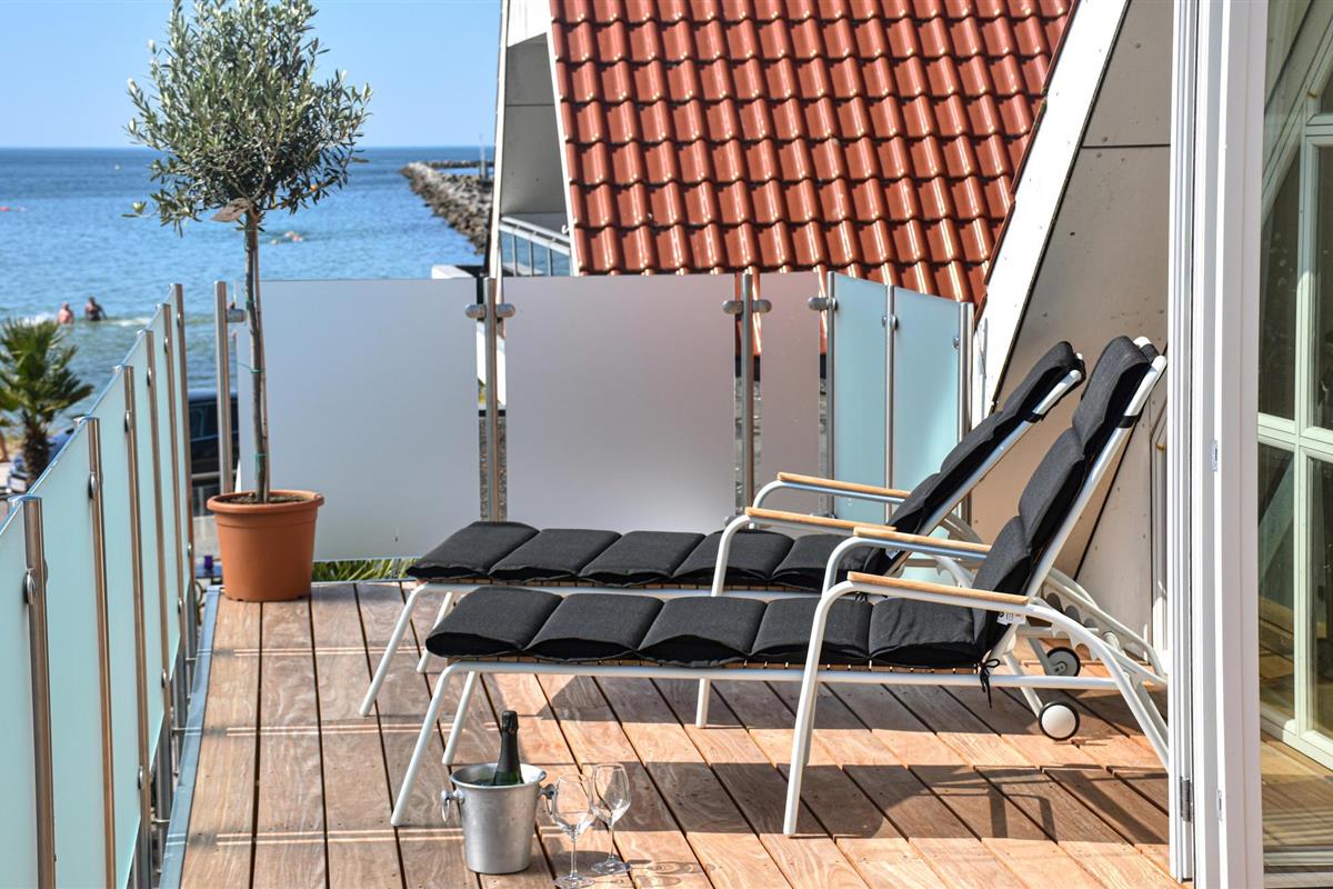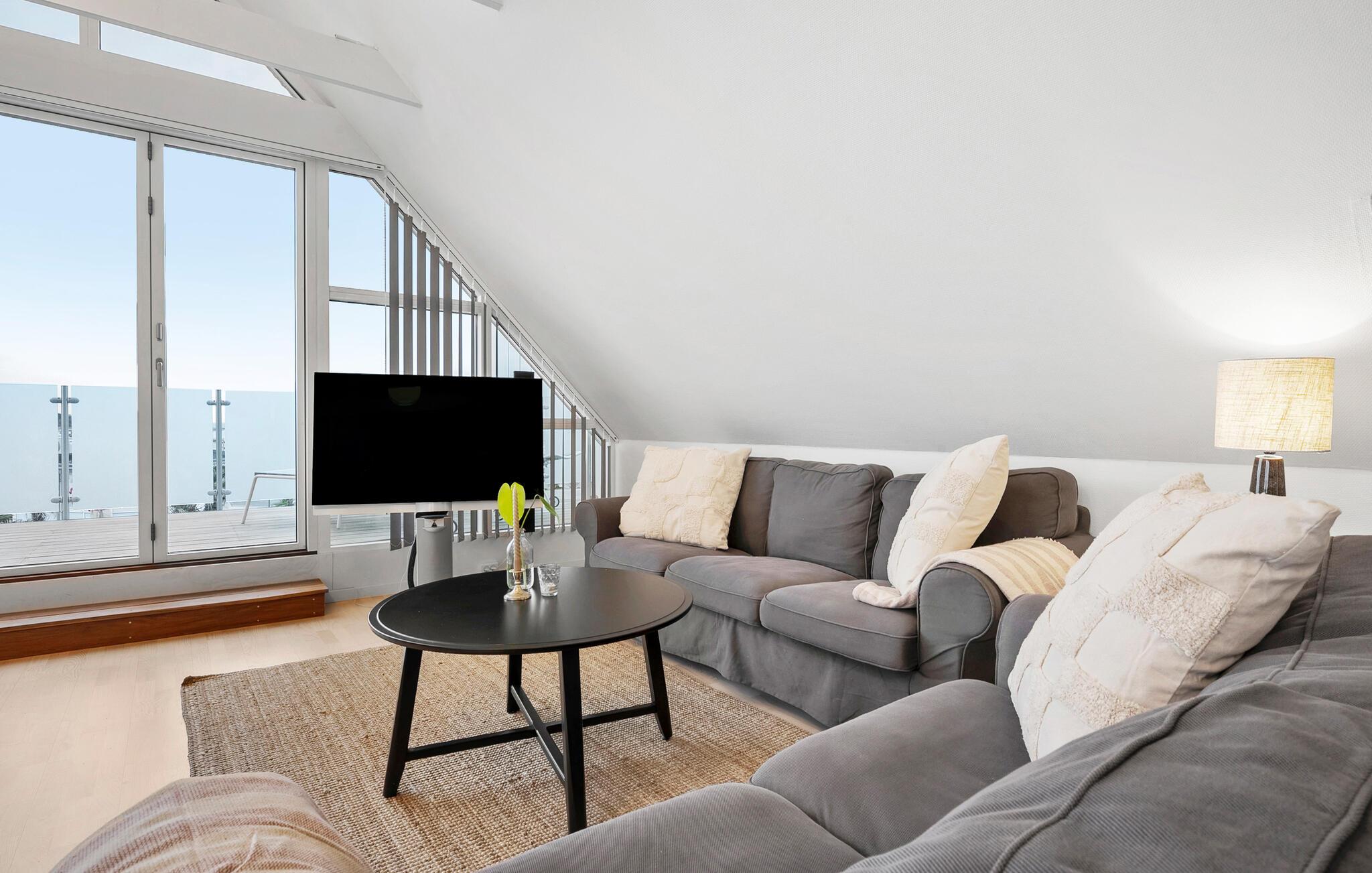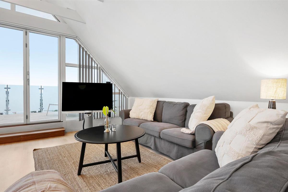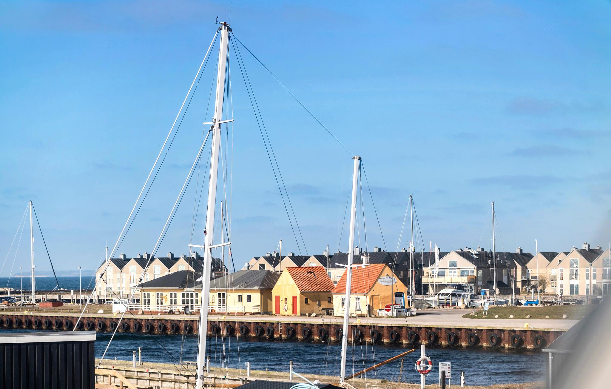 Prachtig appartement in Karrebæksminde met uitzicht op strand en haven, dicht bij winkels en restaurants.