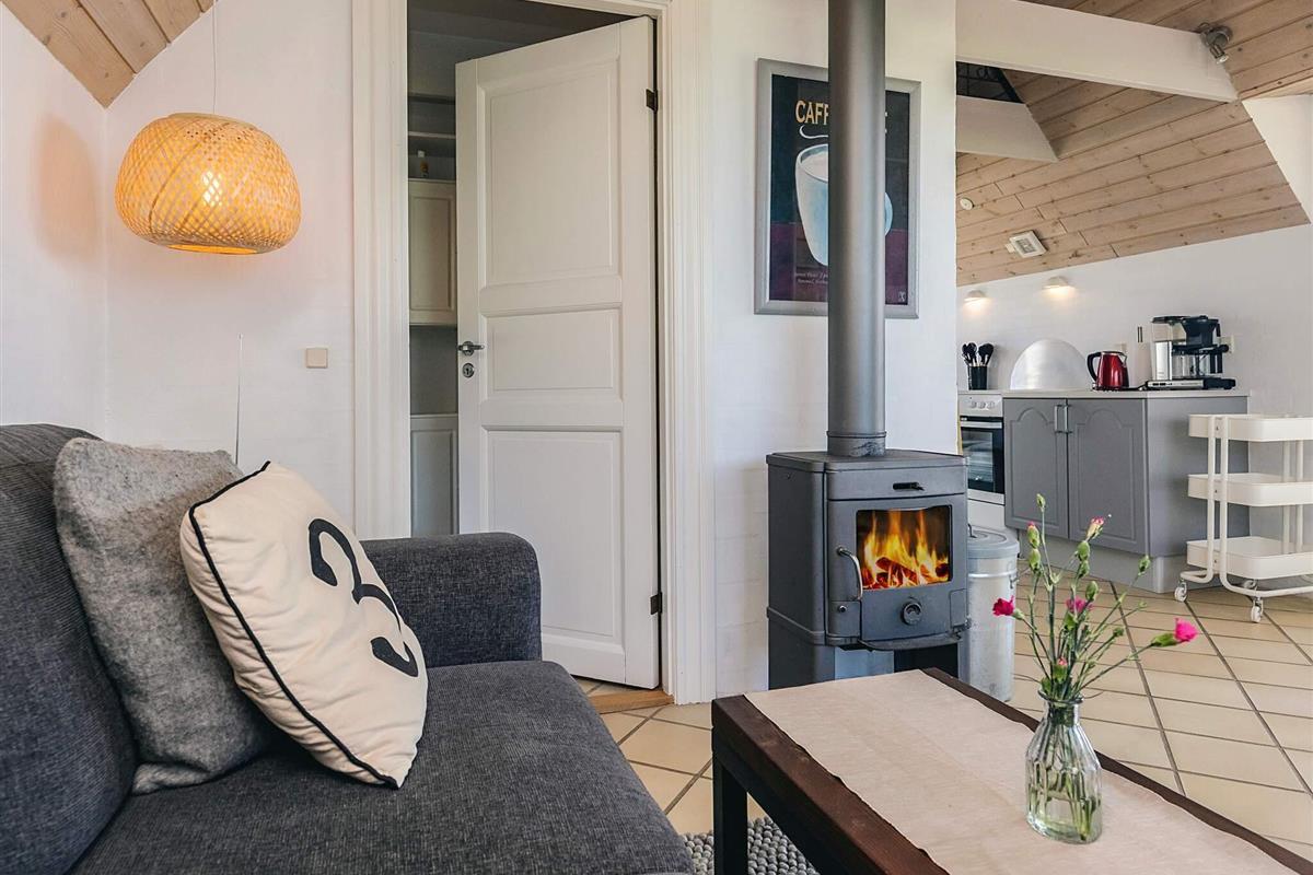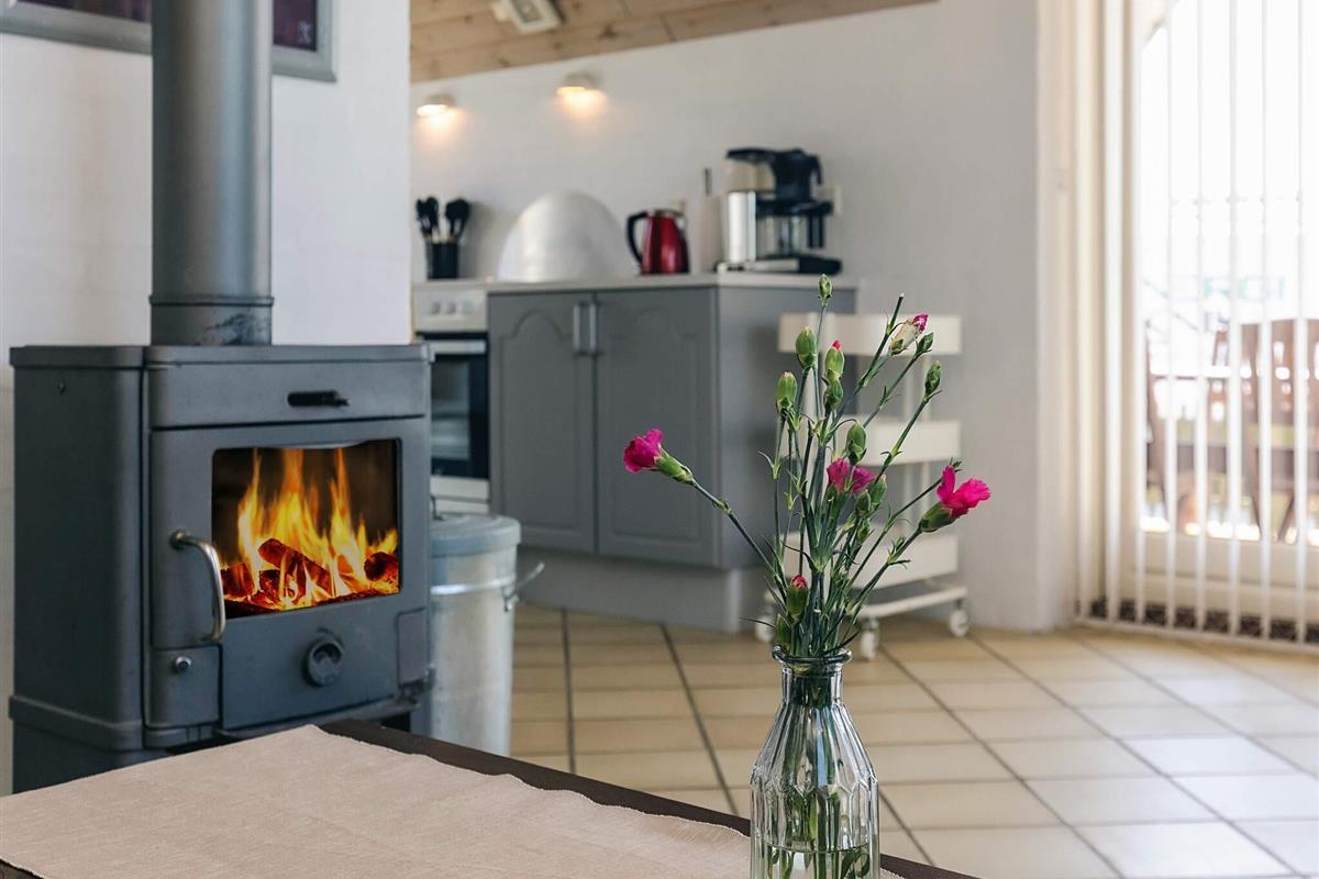 Innen offener Küchen-/Wohnbereich. Hier kann im Wohnbereich die doppelte Schlafcouch genutzt werden. Im Anschluss daran offener Schlafbereich ohne Zimmertür. Max. 4 Personen im Haus erlaubt. Badezimmer mit Dusche/WC. Zudem Holzofen und angenehme Fußbodenheizung im Haus. Freies WLAN und Chromecast zum Streamen im TV.