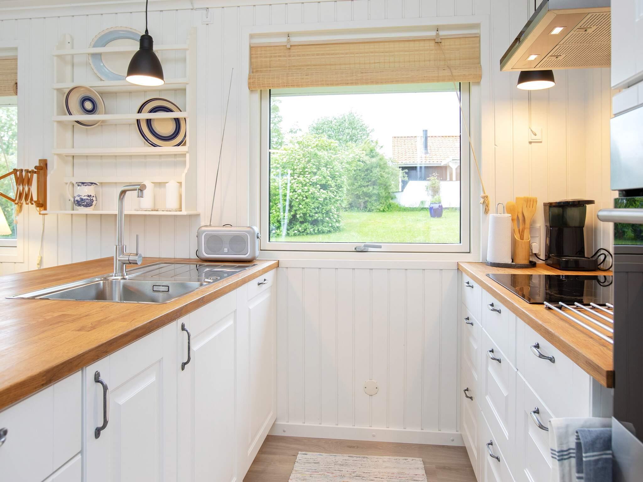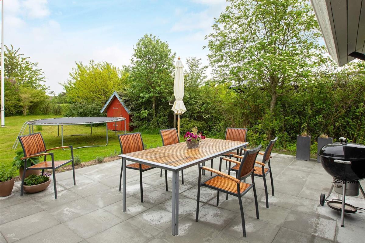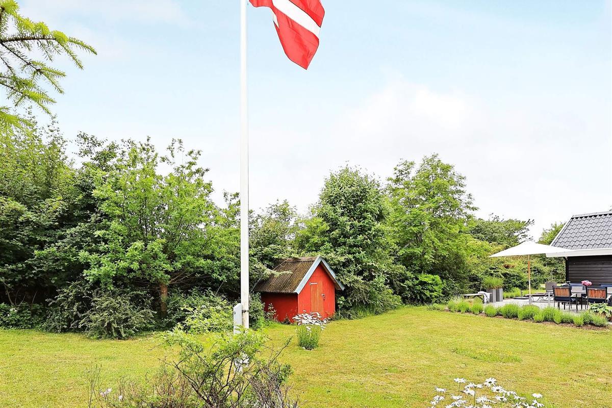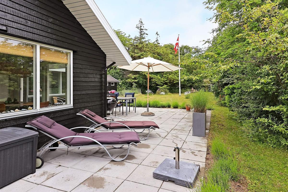 Auf der lauschigen Terrassenfläche gibt es reichlich Gelegenheit zum Grillen und Entspannen. Auf der Rasenfläche davor steht für die Kinder ein Gartentrampolin bereit (Nutzung nur auf eigenes Risiko). Das Ferienhaus liegt attraktiv, nur etwa 150 m von der Küste mit Badesteg und ca. 2 km von Einkauf und Restaurant.