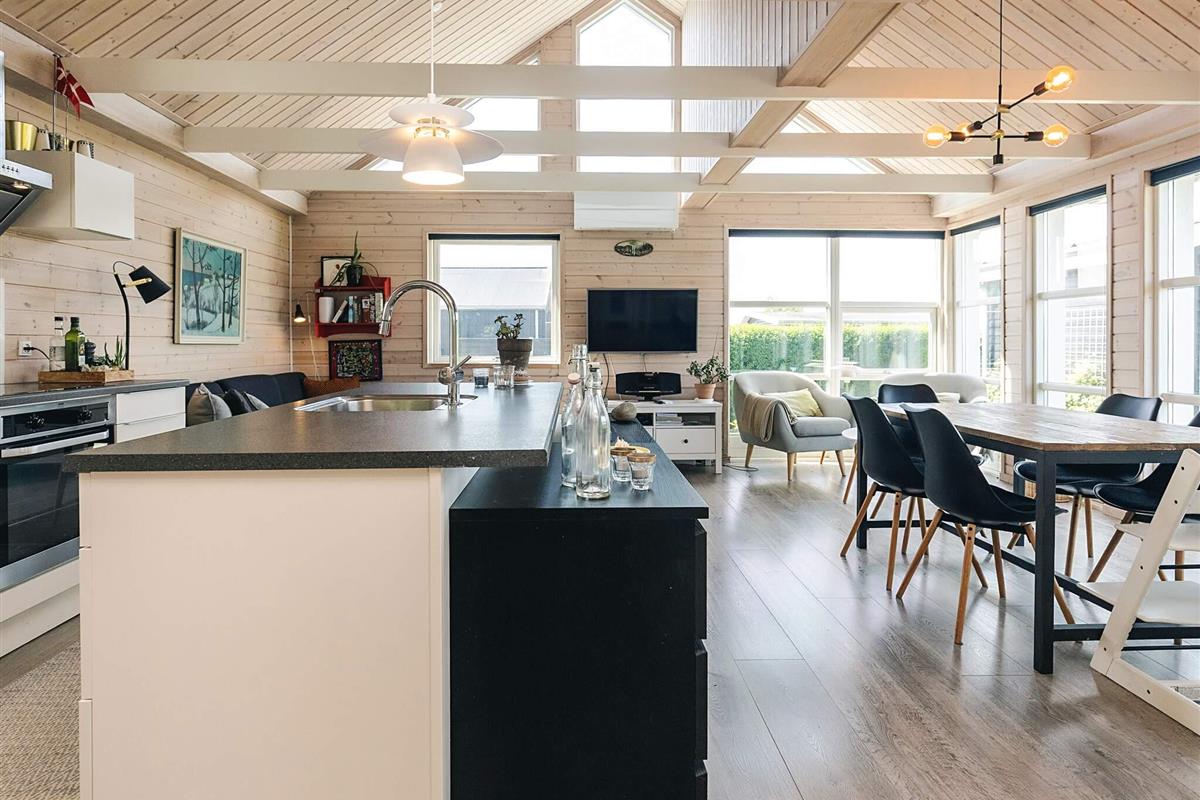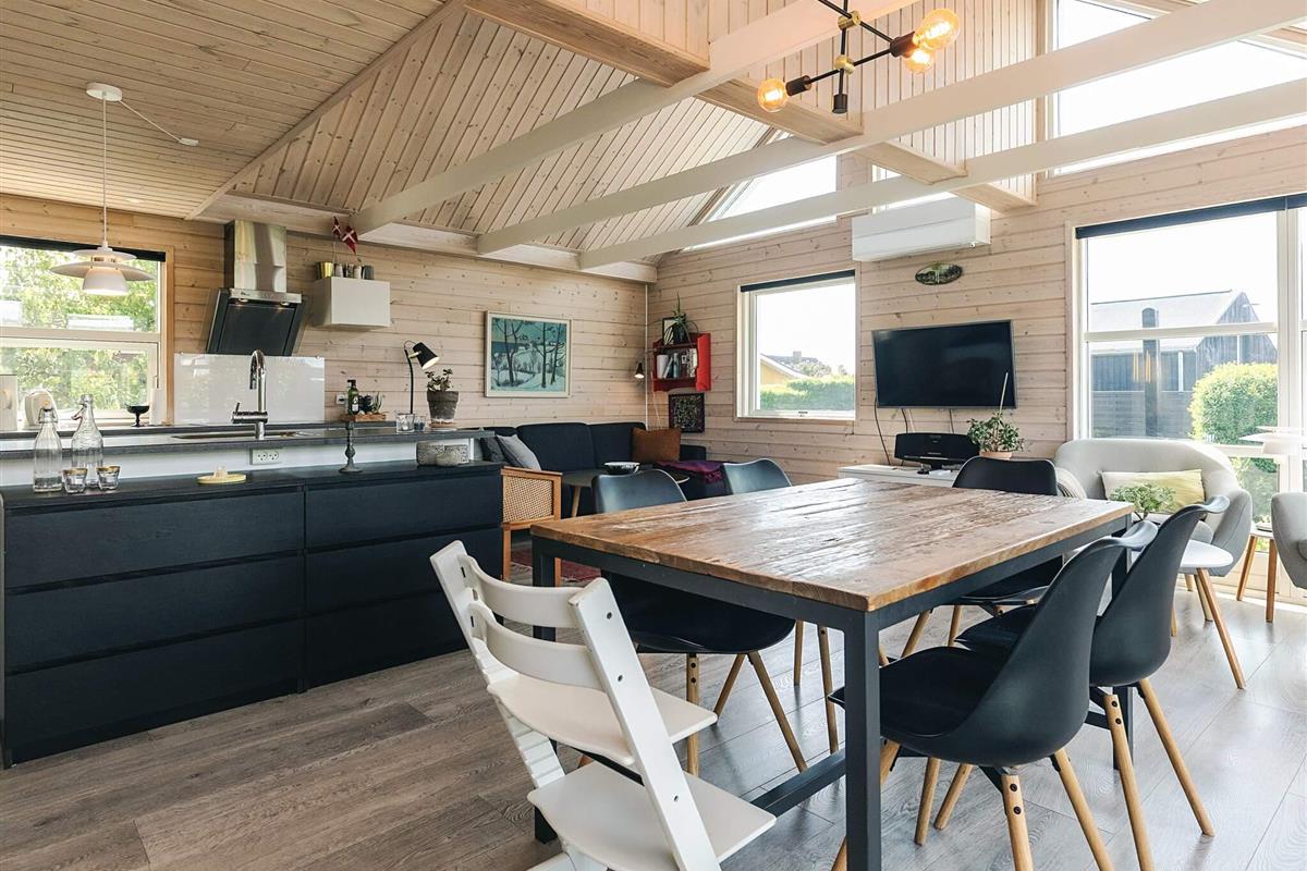 Dieses charmante Ferienhaus in Vesterhave, Karrebæksminde, wurde in den letzten Jahren innen und außen komplett renoviert und bietet eine moderne und gemütliche Atmosphäre für einen Familienurlaub. Das Herzstück des Hauses ist der helle, offene Küchen- und Wohnbereich, in dem die ganze Familie zum Essen, Spielen oder Entspannen zusammenkommt. Große Fenster und der direkte Zugang zur schönen Terrasse laden dazu ein, die Natur zu genießen – ob zum Morgenkaffee, Essen im Freien oder einfach zum Sonnenbaden.