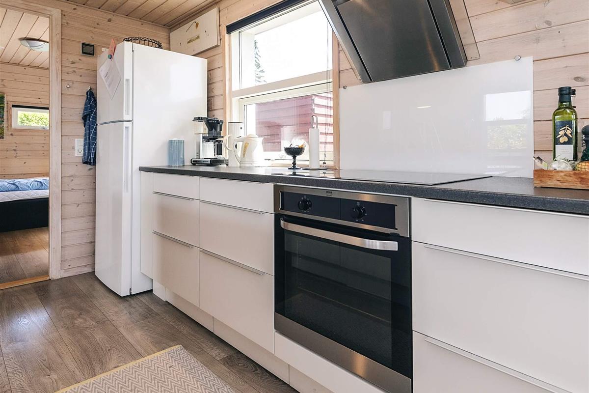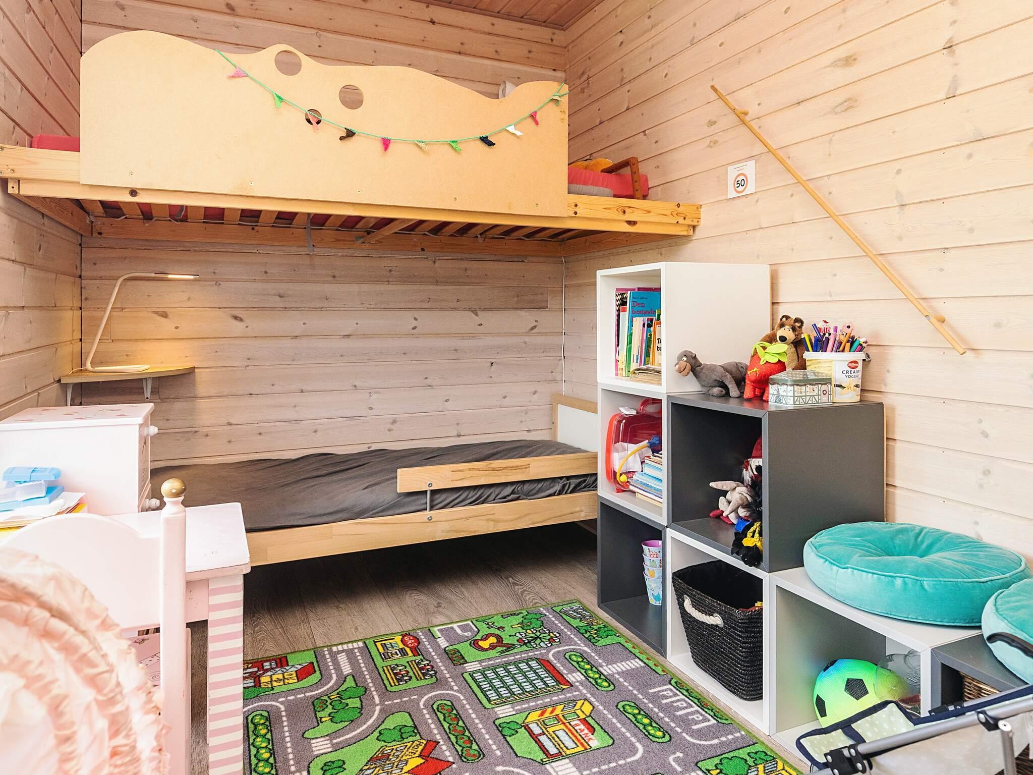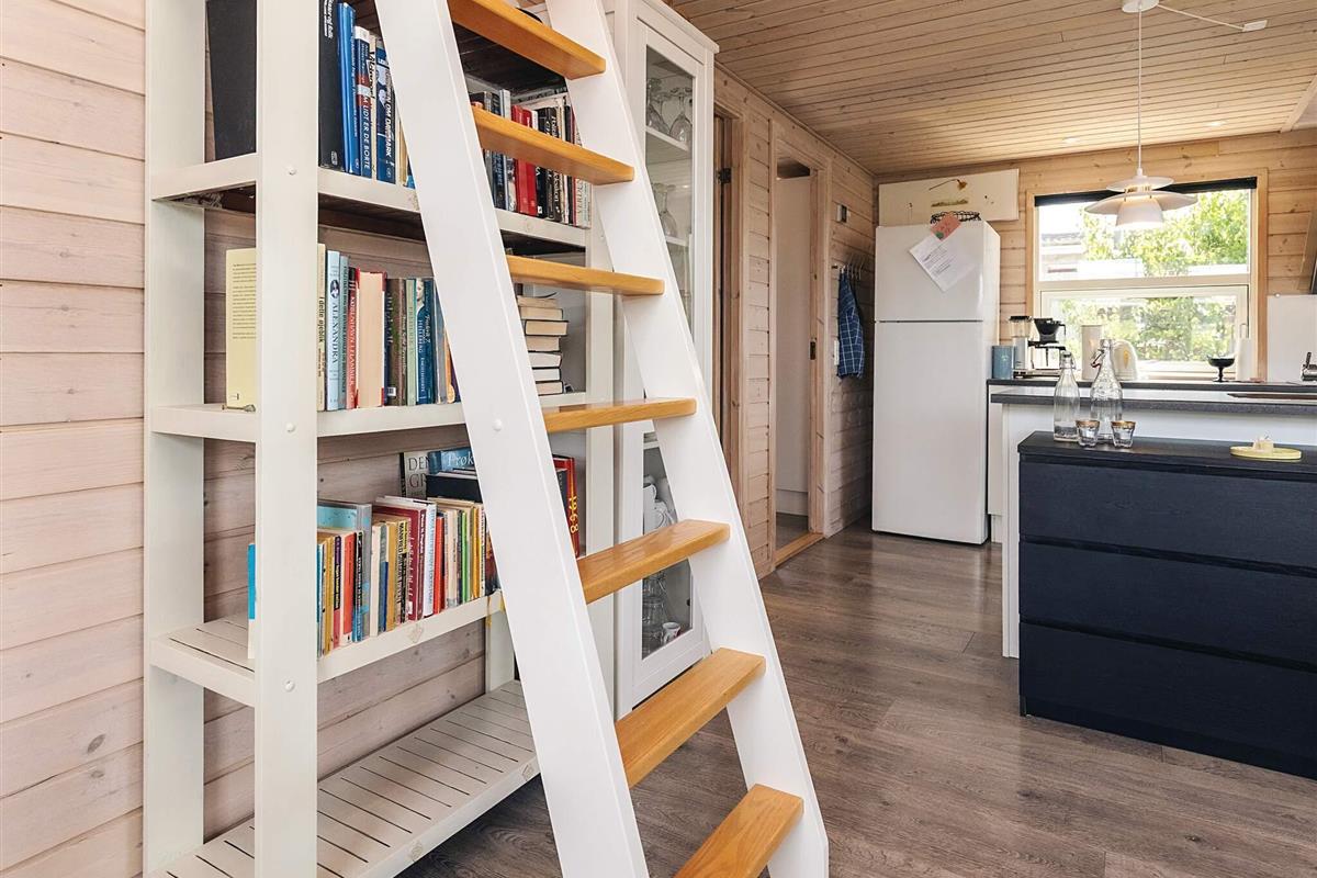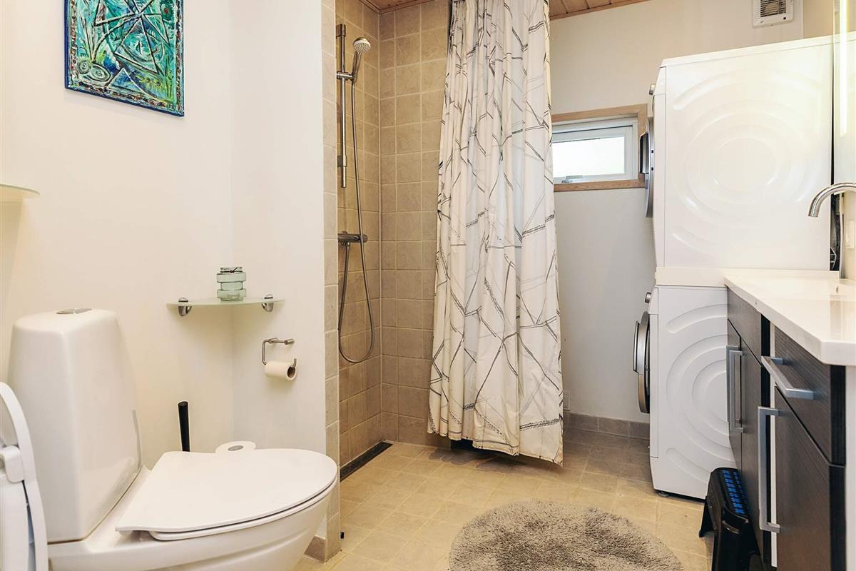 Der Eingangsbereich dient als Schlafzimmer mit einem bequemen Doppelbett (140 x 200 cm). Im Obergeschoss bietet ein geräumiger Dachboden mit voller Stehhöhe zwei Doppelschlafplätze mit 140 x 200 cm großen Matratzen – ideal für Kinder oder zusätzliche Gäste. Ein weiteres Schlafzimmer verfügt über Etagenbetten (70 x 160 cm und 90 x 180 cm), ideal für kleinere Kinder. Das Haus verfügt über ein helles, modernes Badezimmer mit Dusche, WC, Waschmaschine und Trockner für einen angenehmen Aufenthalt.