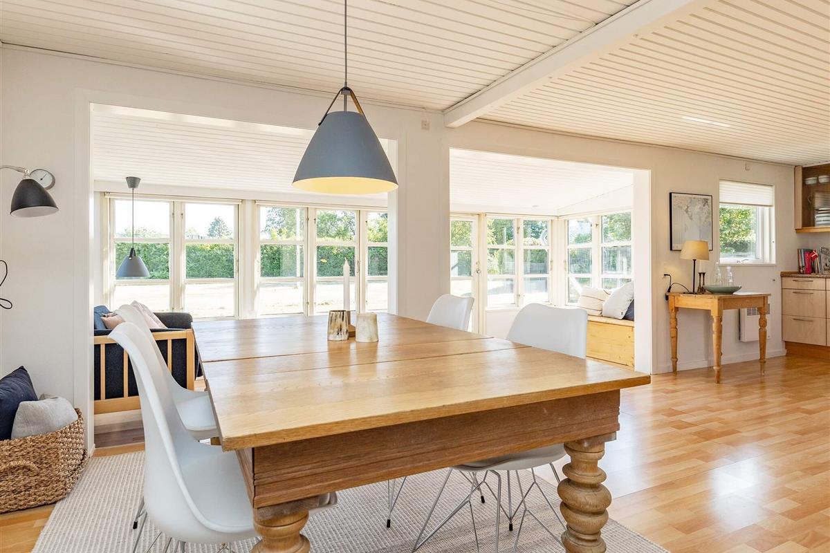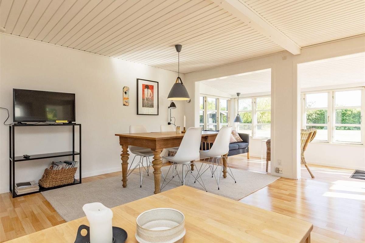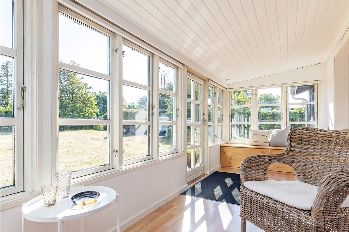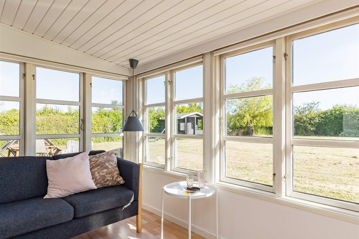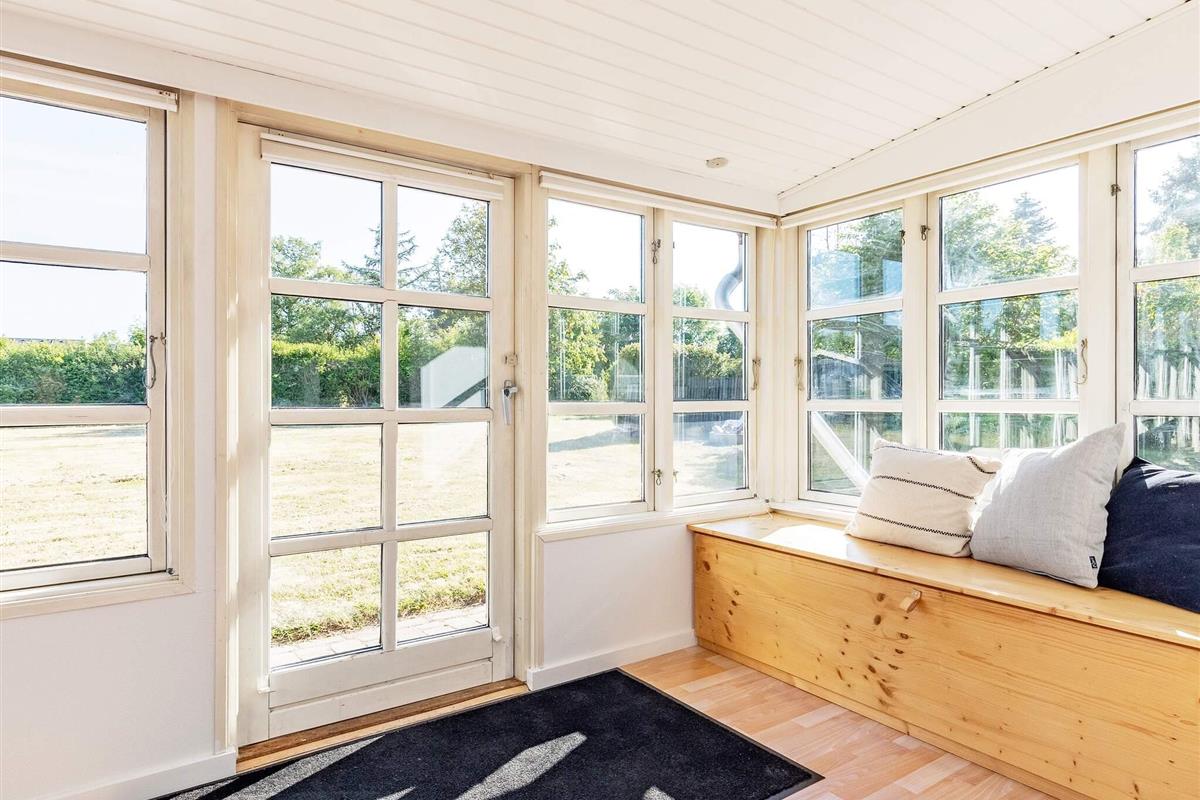 Ferienhaus auf der kleinen Insel Enø in der Nähe von Karrebæksminde und Fjord. Im Haus stehen Küche und Wohnzimmer sowie der integrierte Wintergarten in einer offenen Verbindung. Es gibt ein Schlafzimmer mit Doppelbett und zwei Zimmer mit je zwei Einzelbetten. Badezimmer mit Toilette und Dusche. Im Hauswirtschaftsraum stehen Waschmaschine und Wäschetrockner bereit.