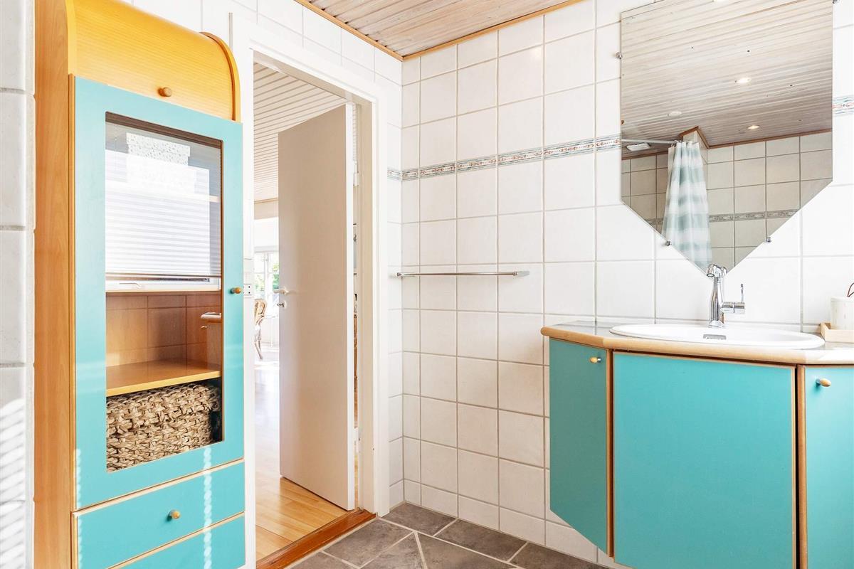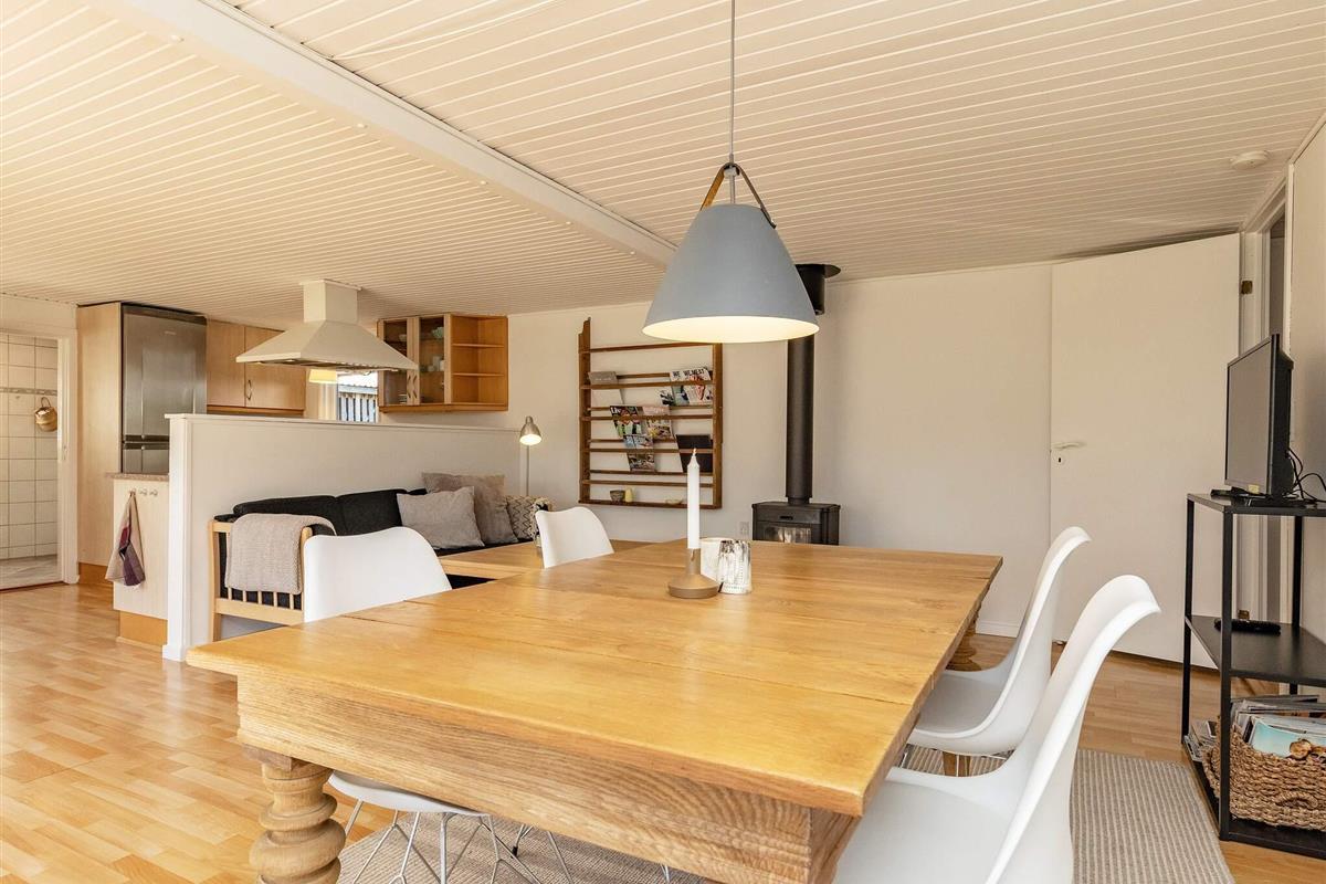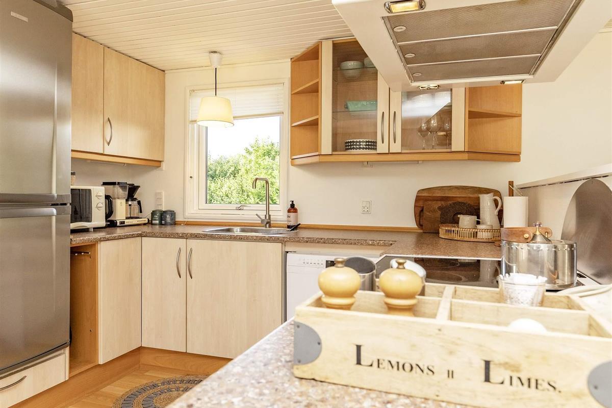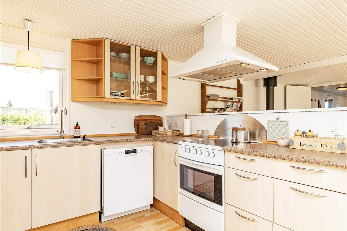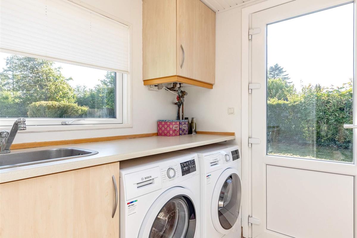 Ferienhaus auf der kleinen Insel Enø in der Nähe von Karrebæksminde und Fjord. Im Haus stehen Küche und Wohnzimmer sowie der integrierte Wintergarten in einer offenen Verbindung. Es gibt ein Schlafzimmer mit Doppelbett und zwei Zimmer mit je zwei Einzelbetten. Badezimmer mit Toilette und Dusche. Im Hauswirtschaftsraum stehen Waschmaschine und Wäschetrockner bereit.