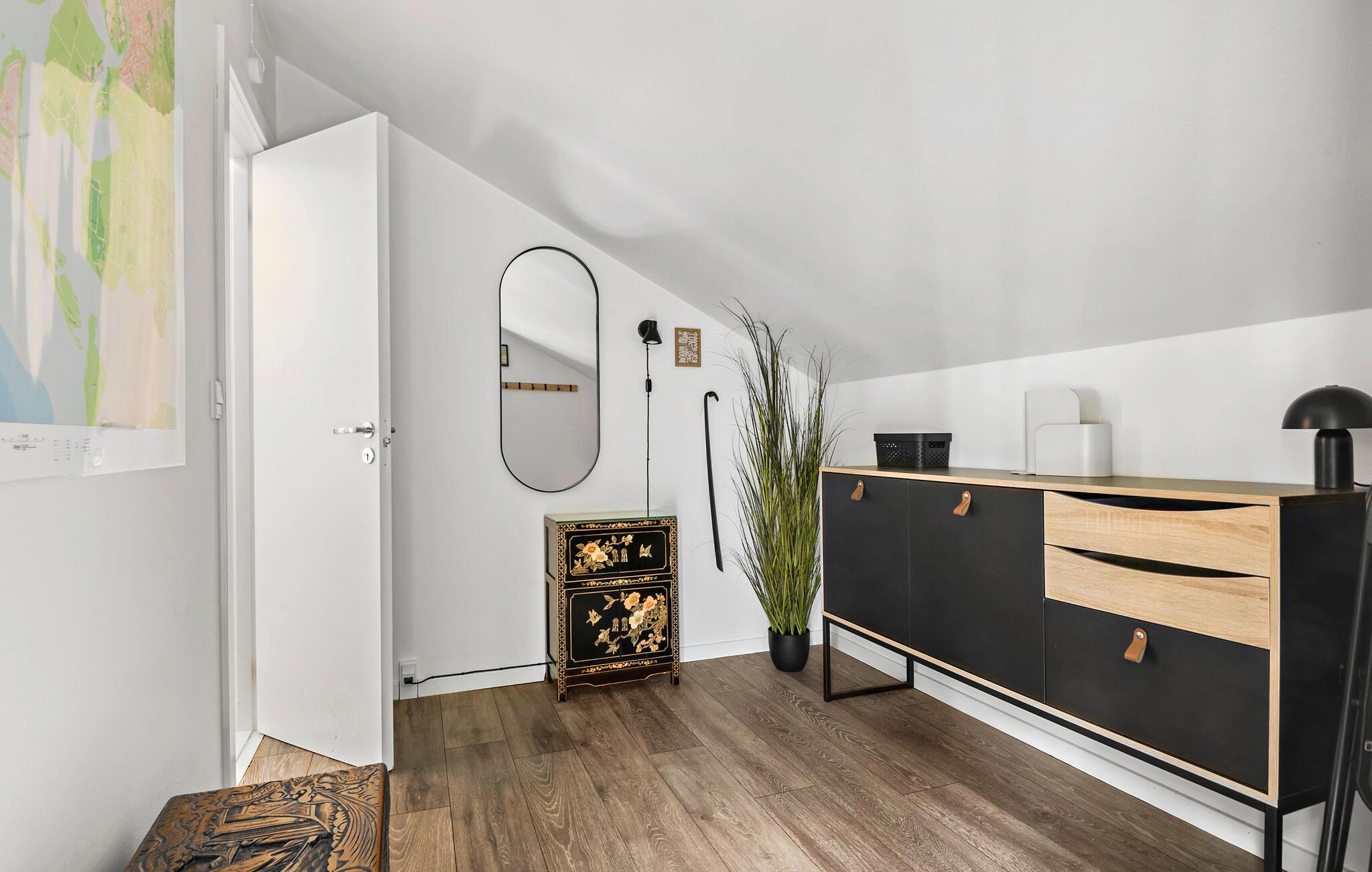 Het fjord ligt dicht bij dit vakantiehuis en is ideaal voor zomerse zwemtochten. Het eiland Enö biedt fantastische natuur en je vindt er goede mogelijkheden voor wandelingen en magische zonsondergangen aan bijvoorbeeld de zuidkant. Deze hoek van Seeland met zijn gevarieerde kust- en fjordenlandschappen is ideaal voor vele dagtochten. Dompel je onder in het zomerleven in Karrebäksminde, probeer een visgerecht en geniet op zonnige middagen van een ijshoorntje aan het water.